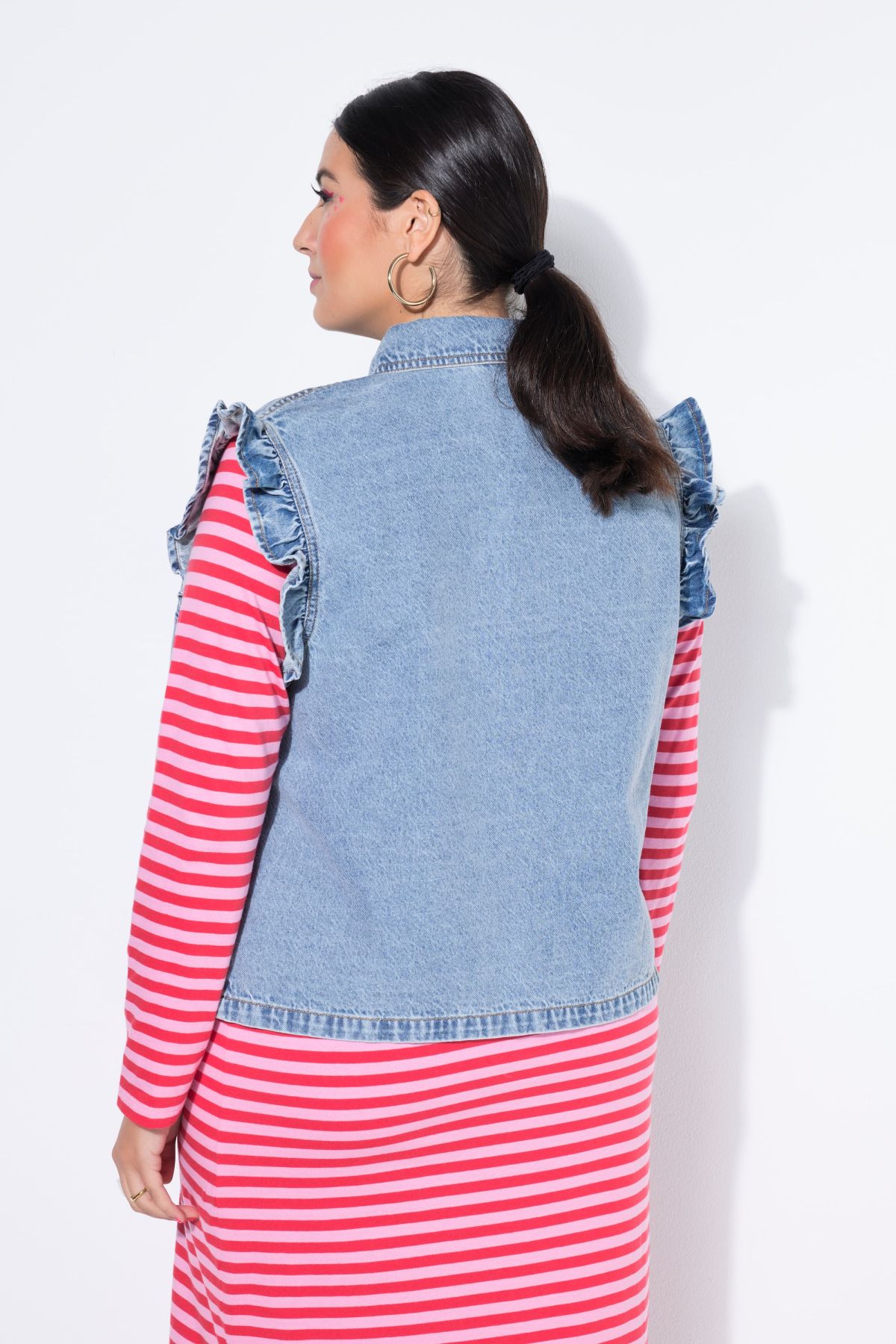 Denim waistcoat, boxy shape, light-washed, arm ruffle