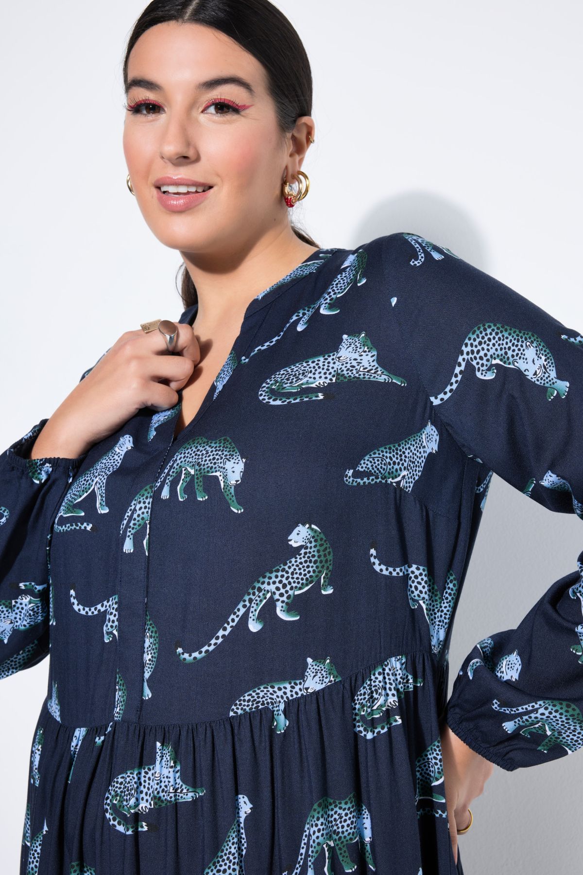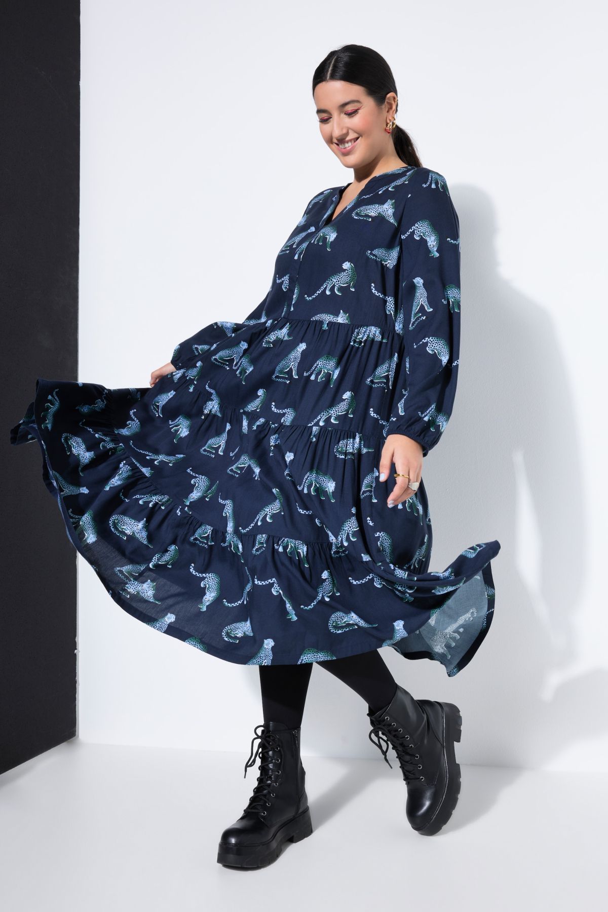 Maxi dress, leopard print, V-neckline, flounces