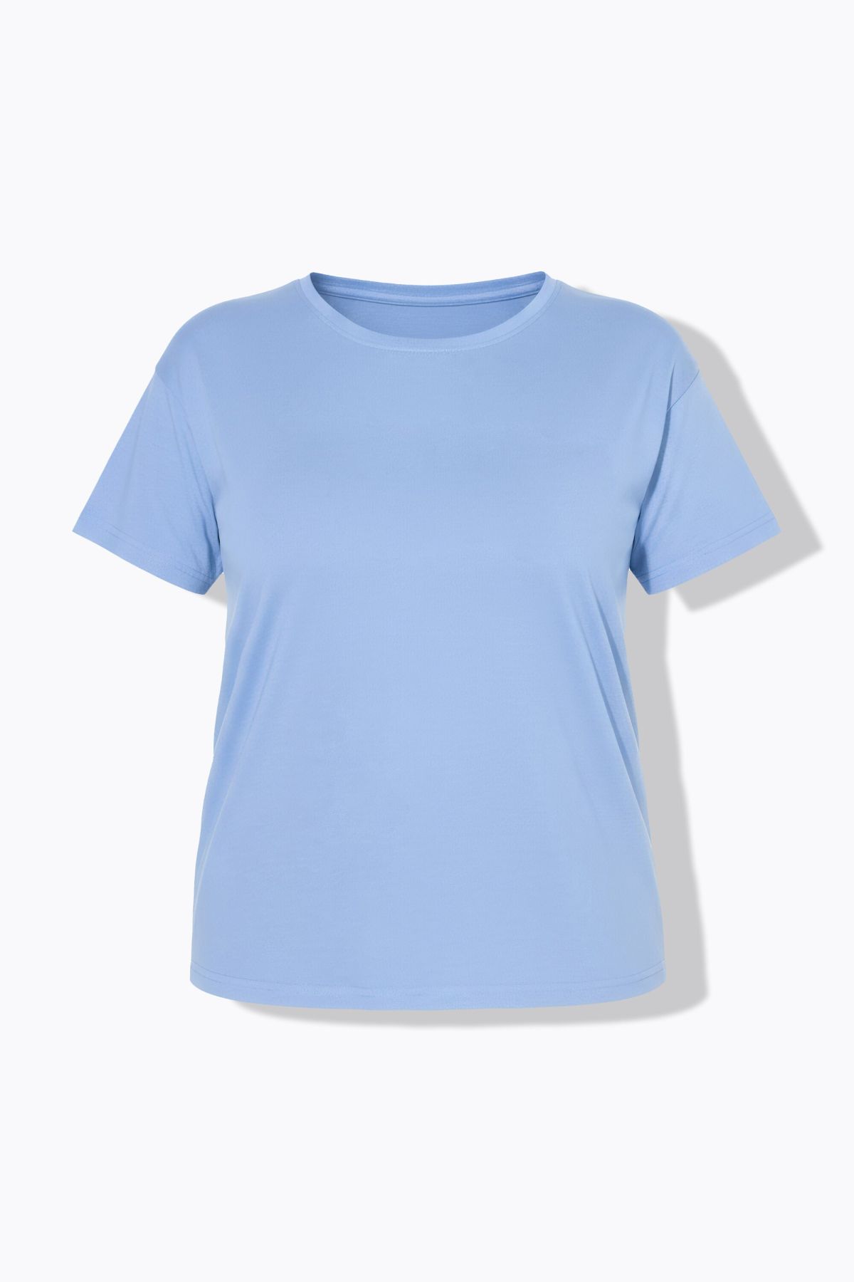 Едноцветна тениска с кръгло деколте и къси ръкави. Изключително подходяща за всеки силует.