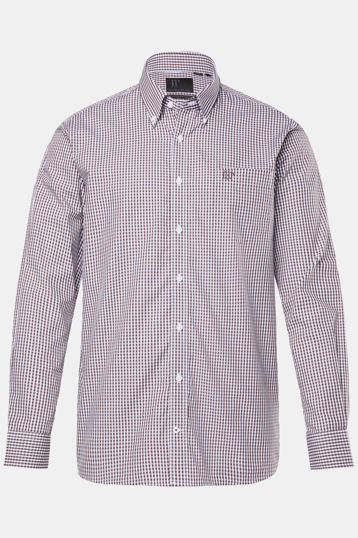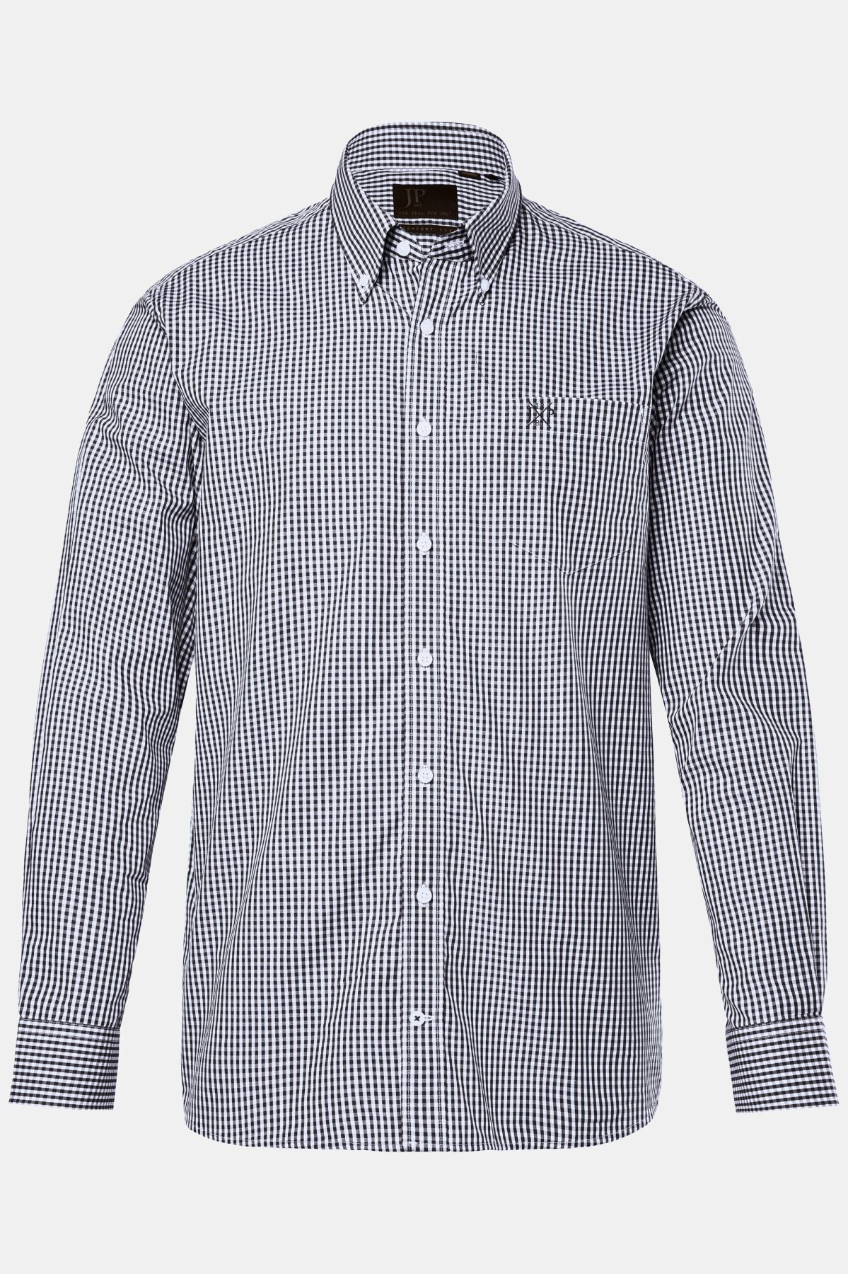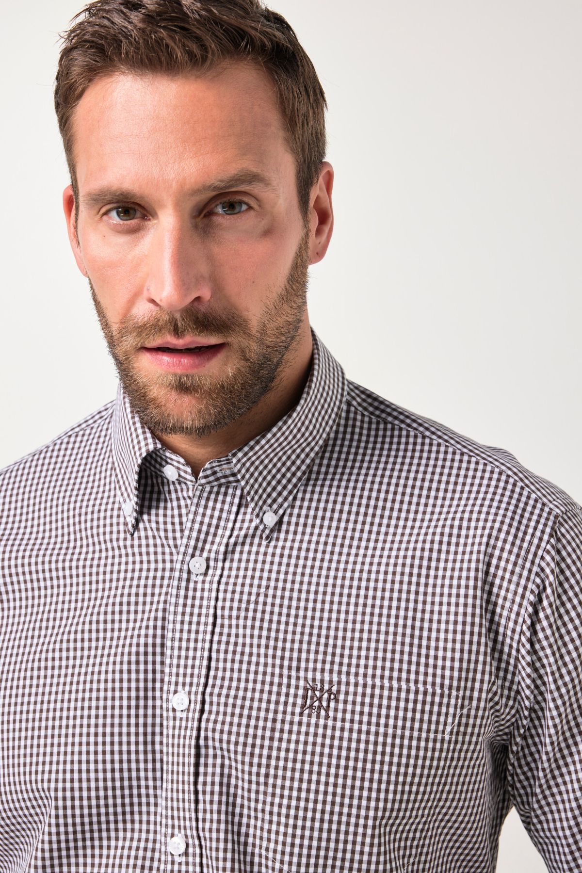 Карирана риза с копче на яката, копчета отпред, джоб на гърдите и дълги ръкави с маншет с копче. С комфортна кройка с прав подгъв.