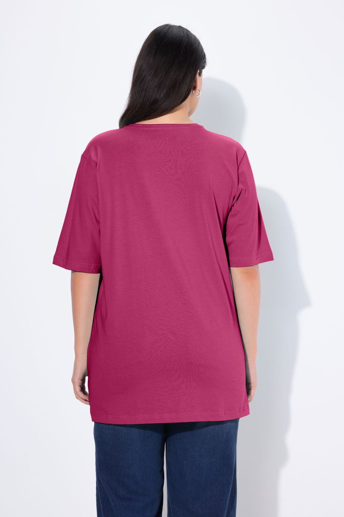 Тениска с V - образно деколте и къси ръкави. С класическа кройка от мека, памучна материя. Със странични цепки.