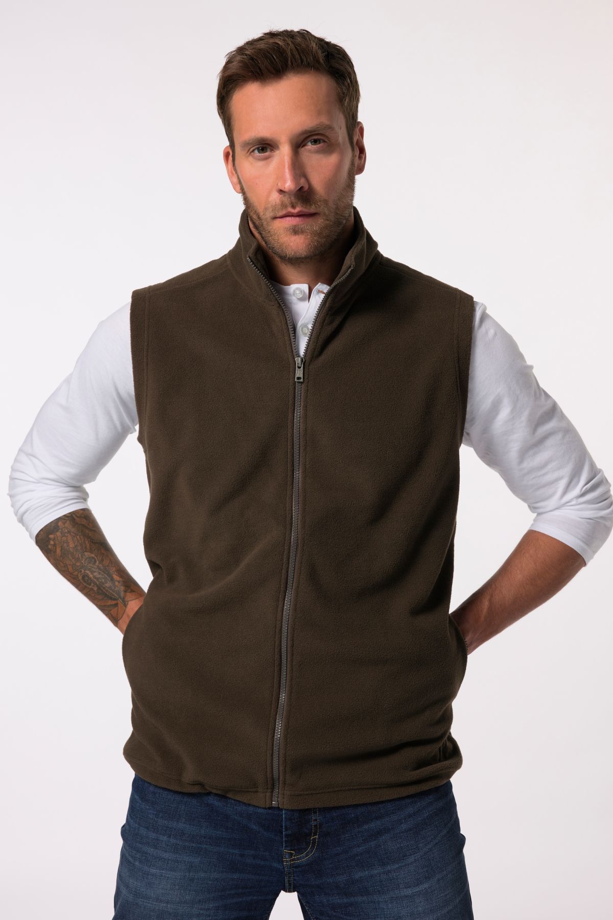 Мек и топъл поларен елек. С изправена яка, цип и 2 джоба с ципове. С регулиралиращ се подгъв.