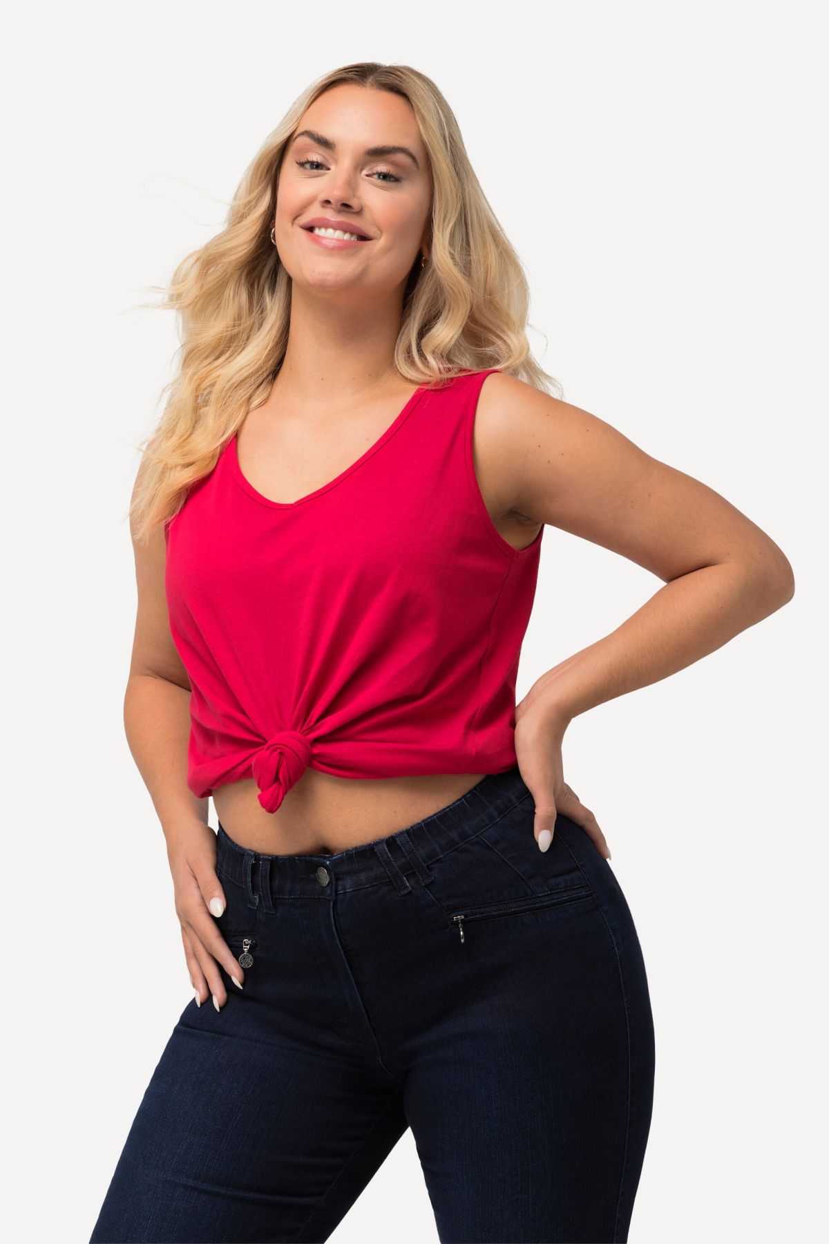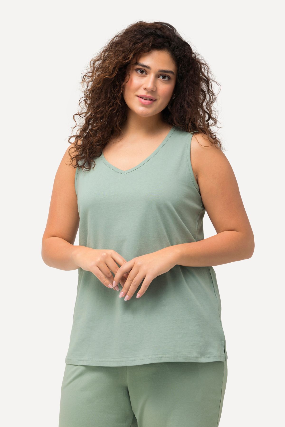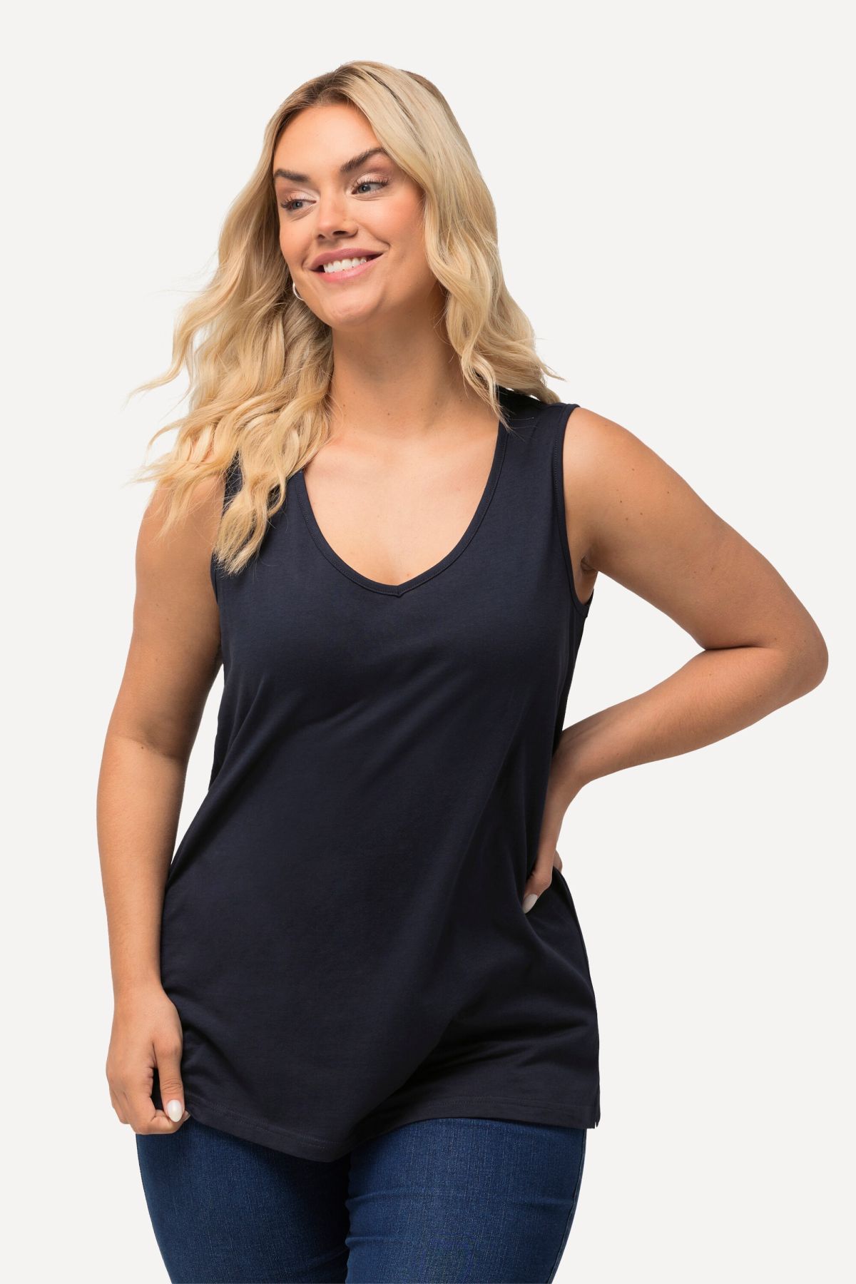 Потник с V - образно деколте от мек памук. С комфортно изрязани широки презрамки, без ръкави. Със странични цепки.
