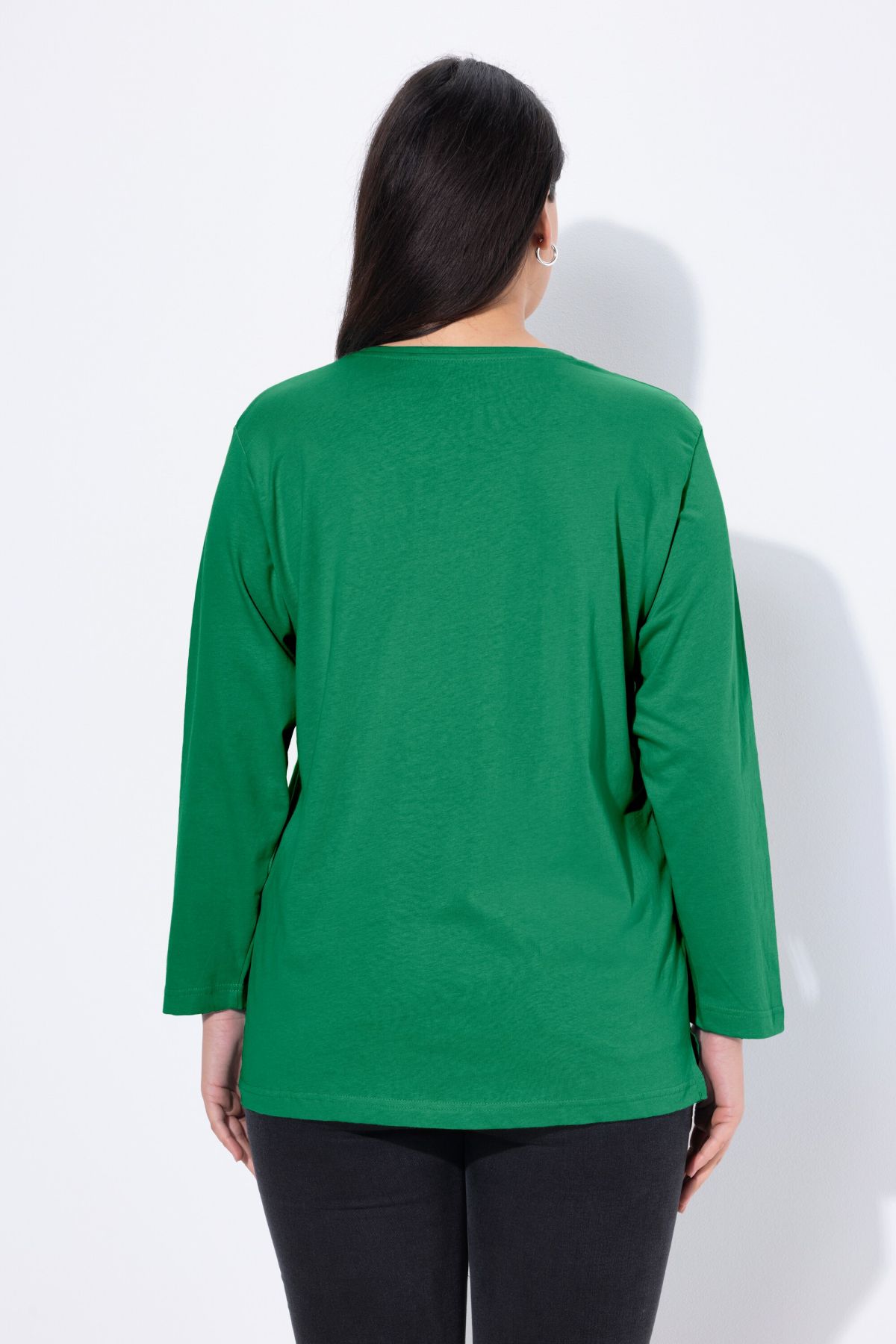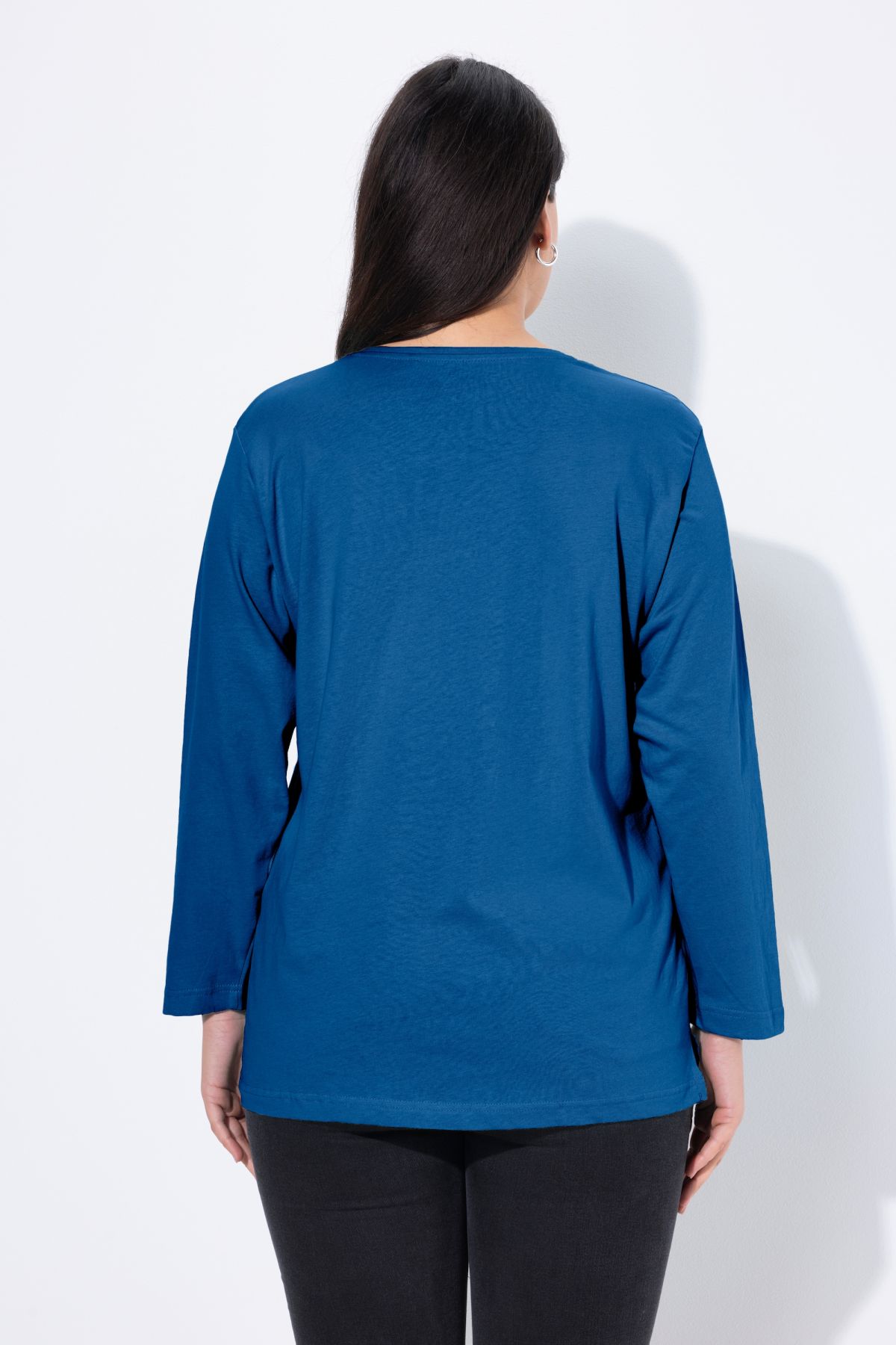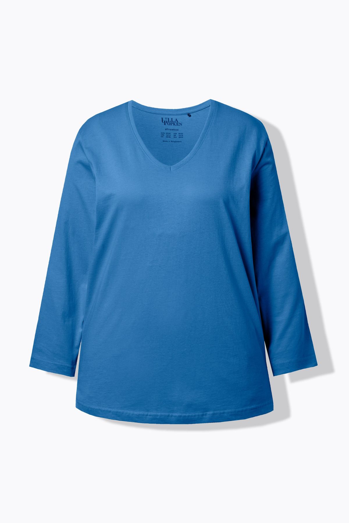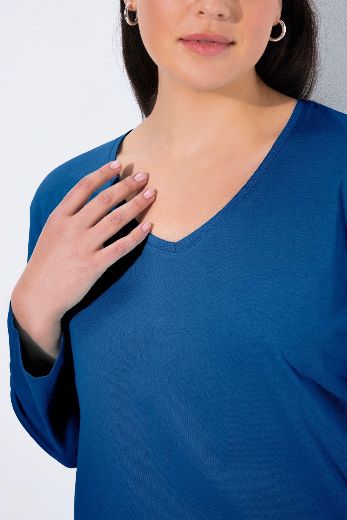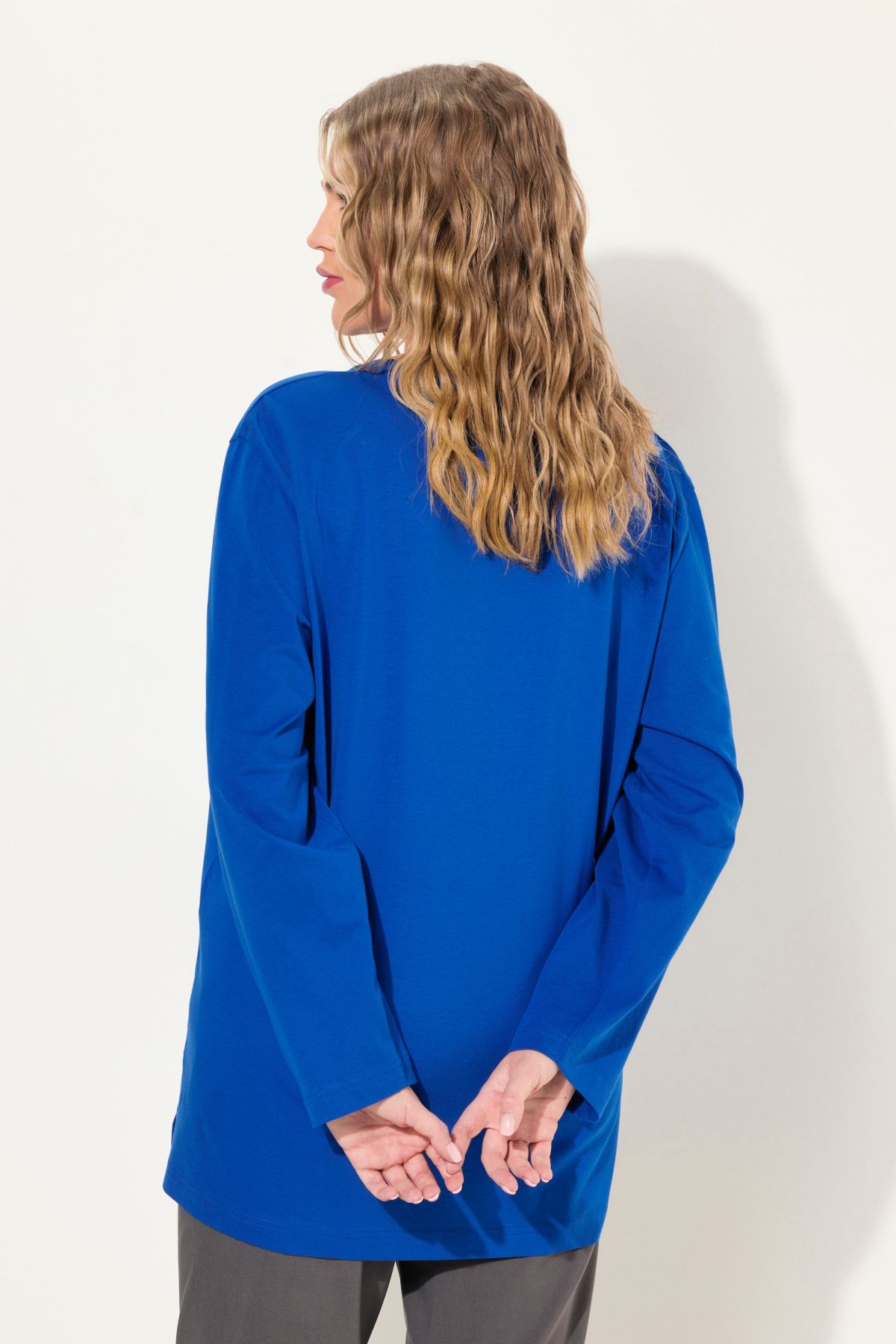 Блуза от памук със свободна кройка. С заоблено V - образно деколте, дълги ръкави и странични цепки.
