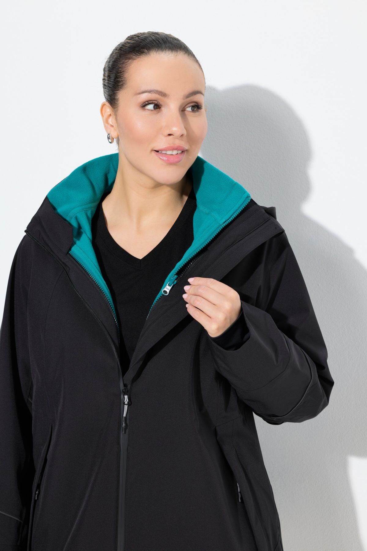 Поларено яке с изправена яка, цип отпред, 2 джоба, отпред и отзад шевови акценти и дълги ръкави с възможност да се използва за подплата.
