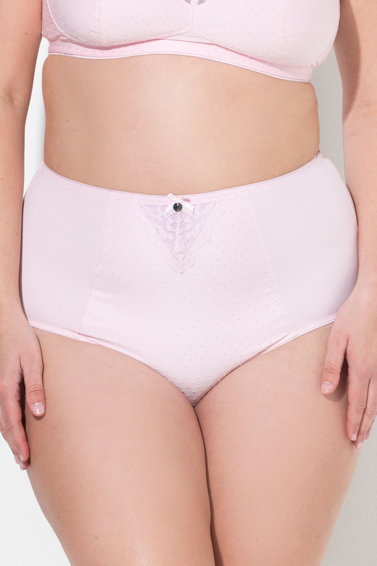Бикини с дантелени акценти и оформящ ефект. С висока талия със сатенена панделка посредата. С памучна подплата.