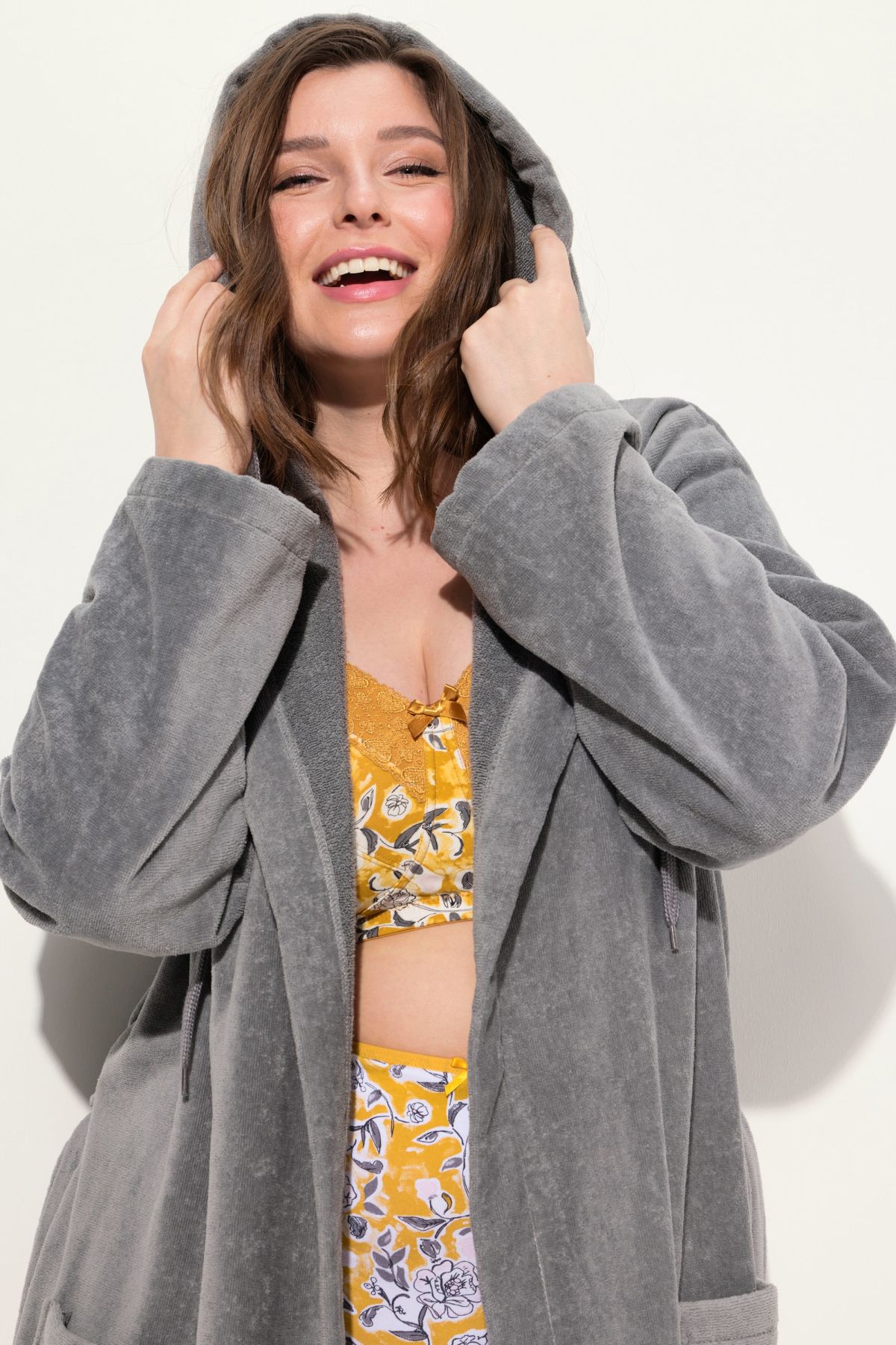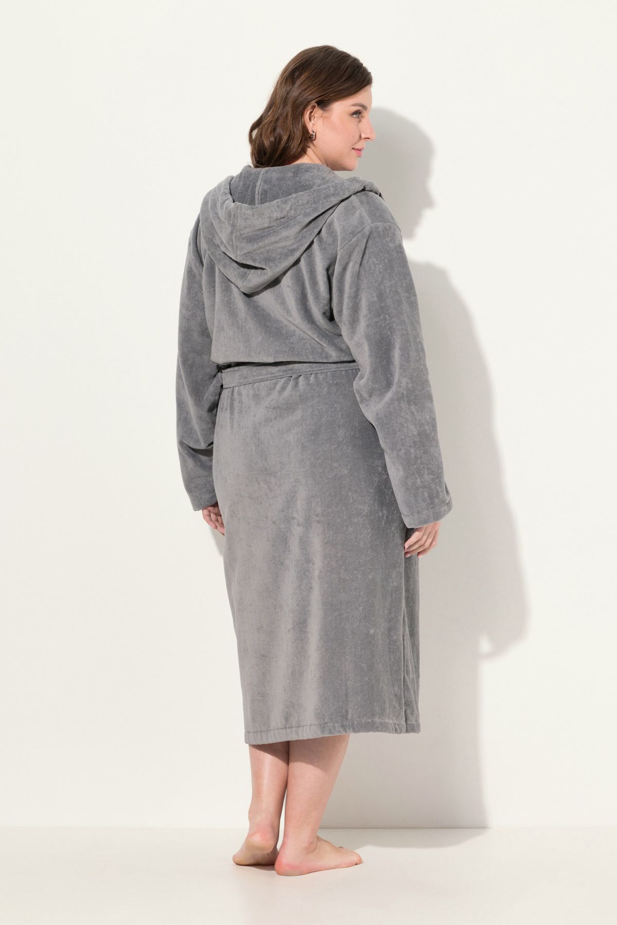 Халат за баня от мека, комфортна материя. Перфектна за ежедневен релакс. С дълги ръкави, ревери на яката, външни джобове и колан на талията.