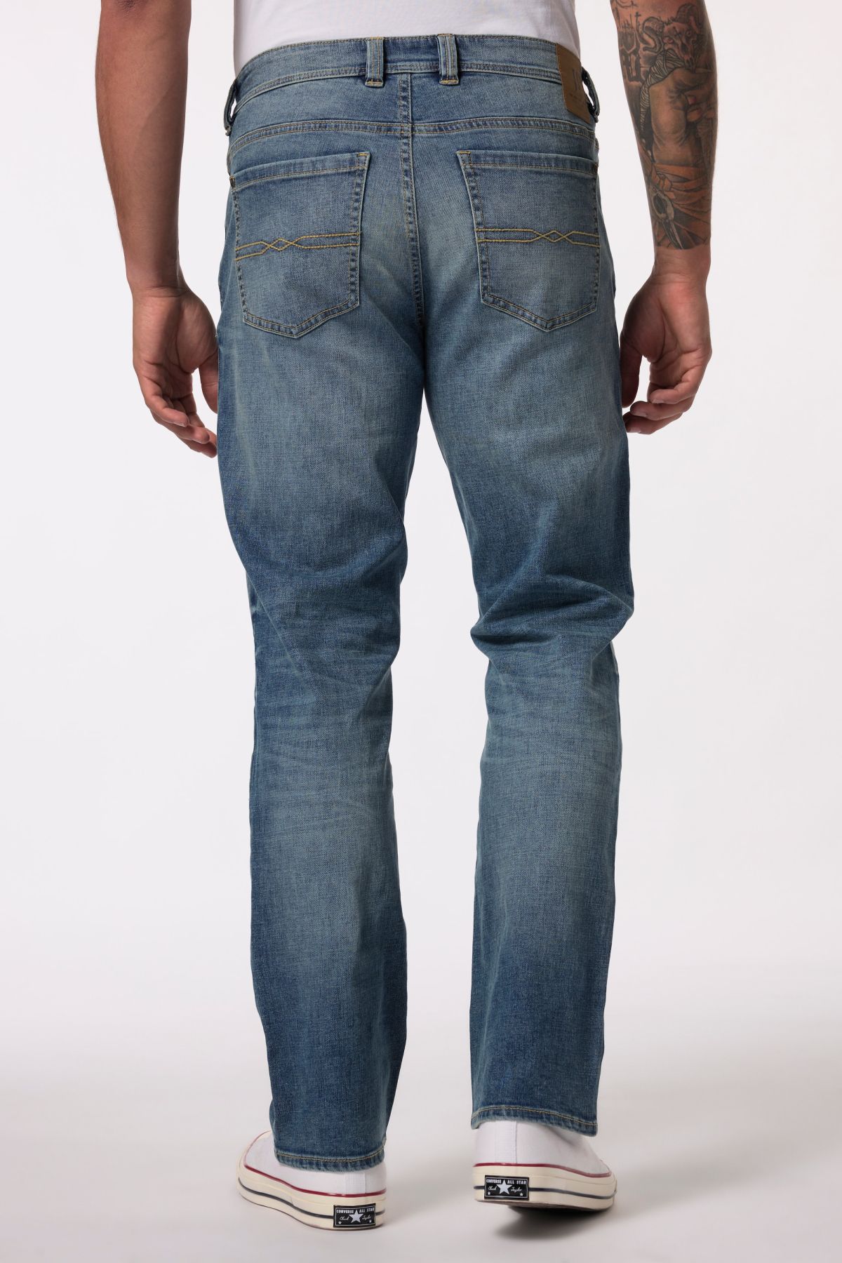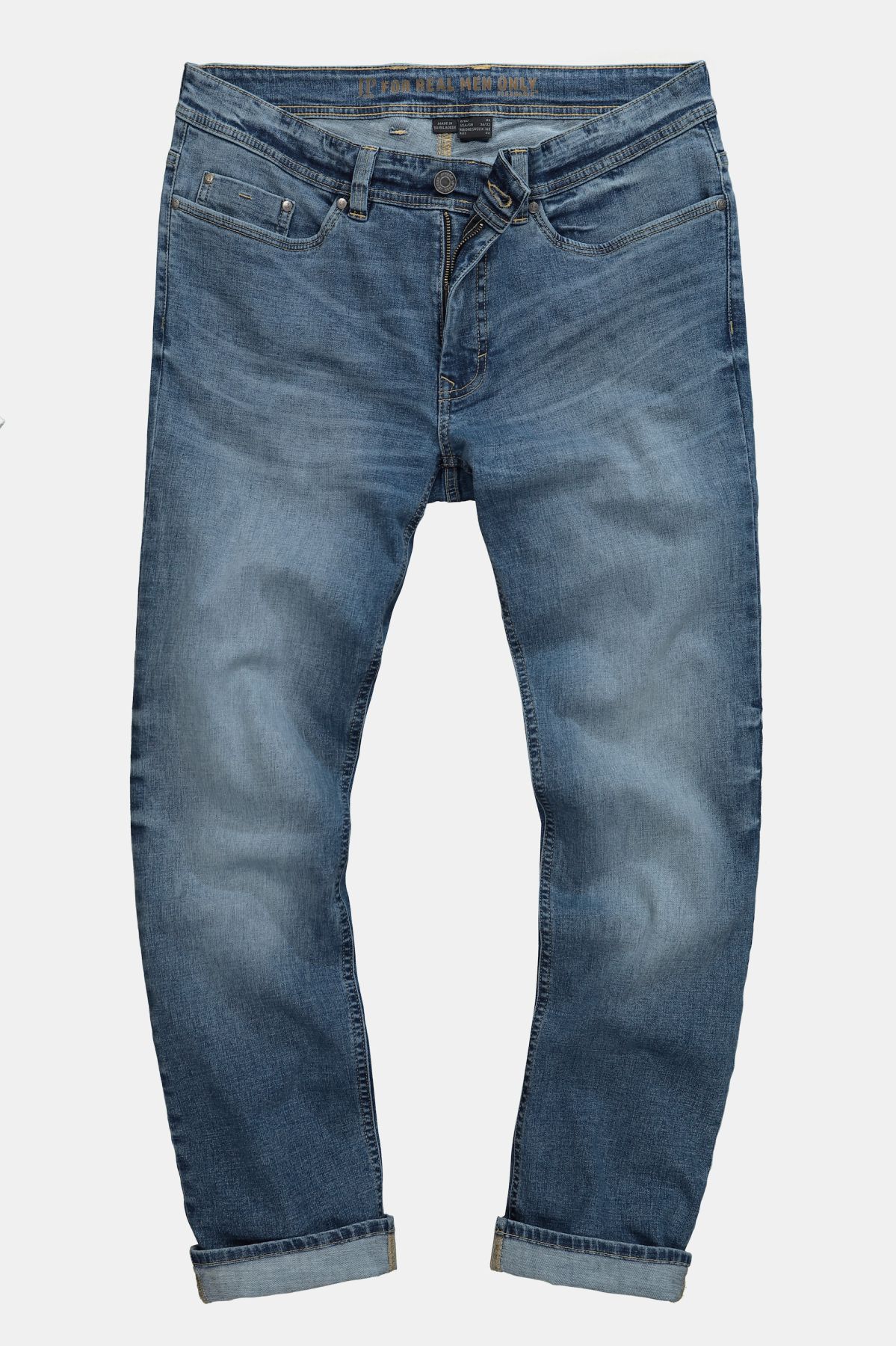 Дънки от супер еластична материя. С нормална кройка, дизайн с 5 джоба, фиксирана талия с гайки за колан, копче и цип отпред.
