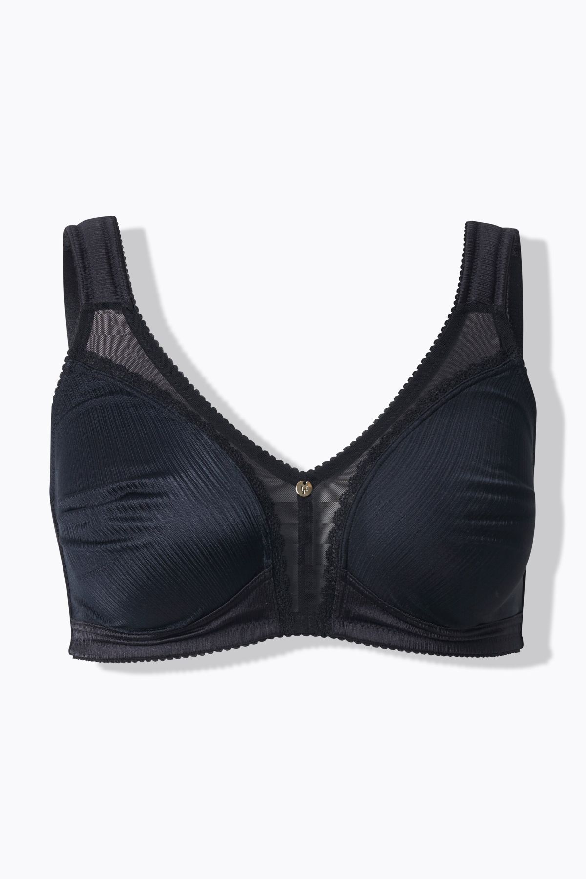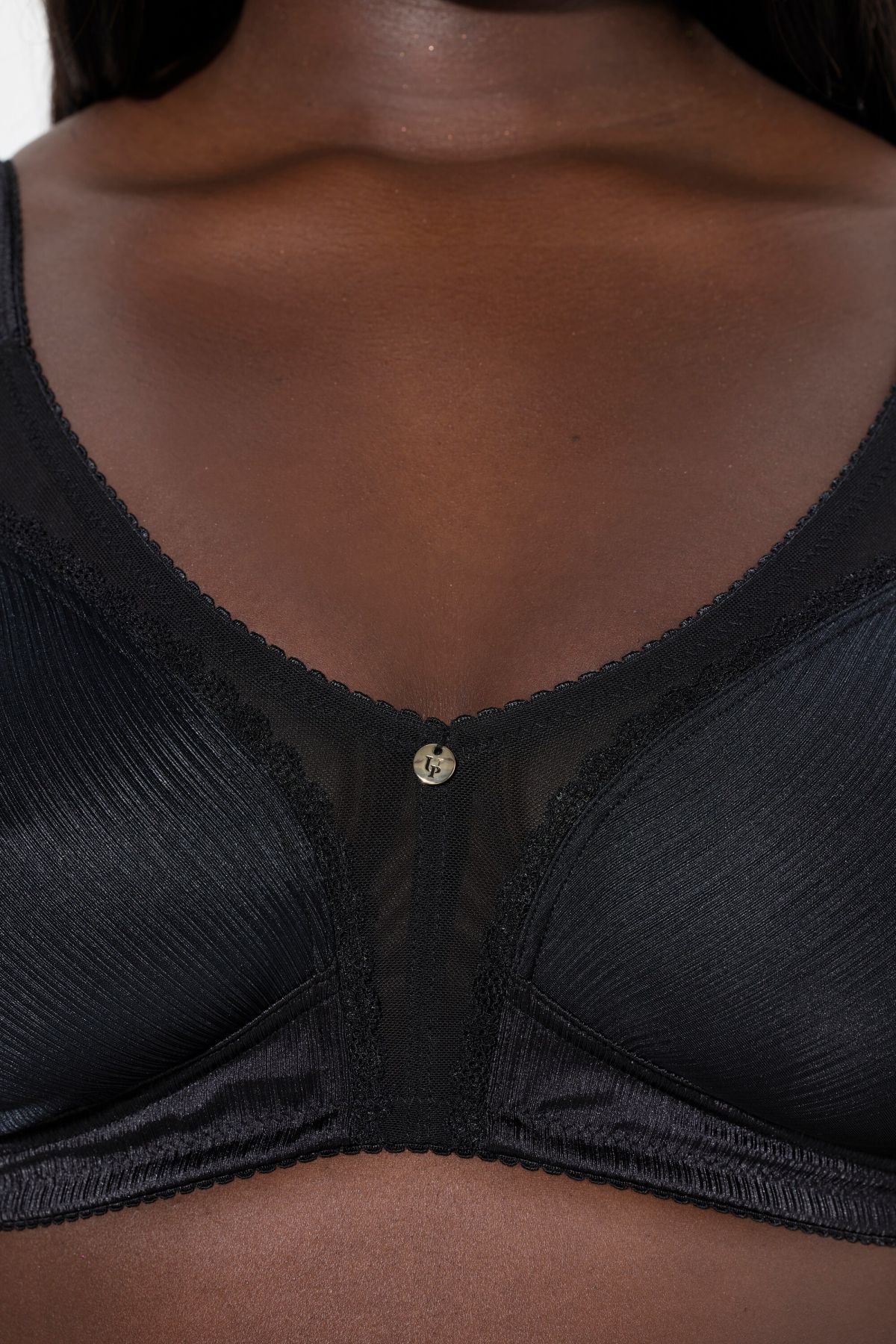 Сутиен тип минимайзър със сатенени акценти и дантела. С широки презрамки и задно закопчаване с метални кукички. С еластична лента под бюста, без банели.