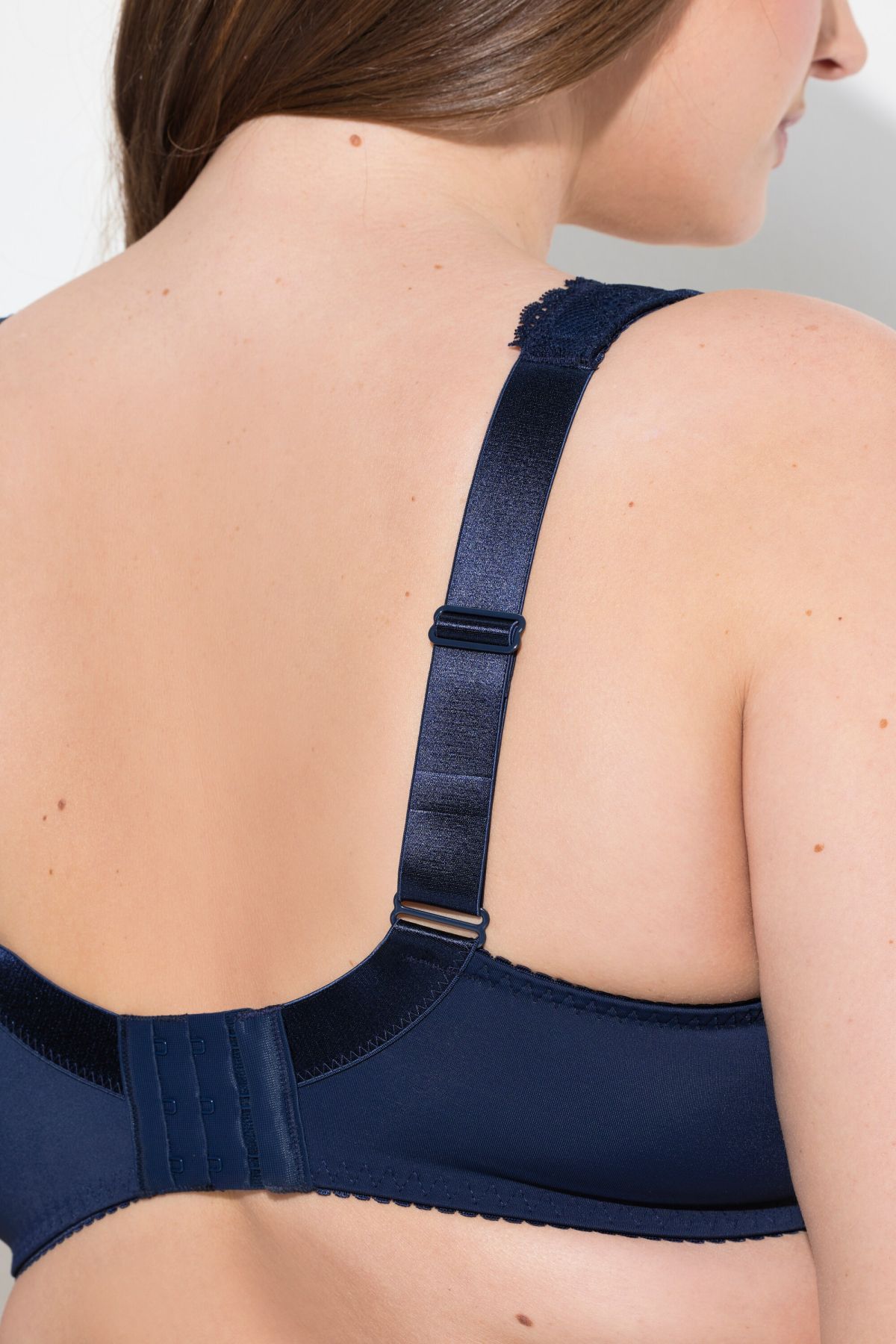 Сутиен с дантела с банели, без оформени чашки. С класически силует, широки, комфортни презрамки и задно закопчаване с метални кукички.