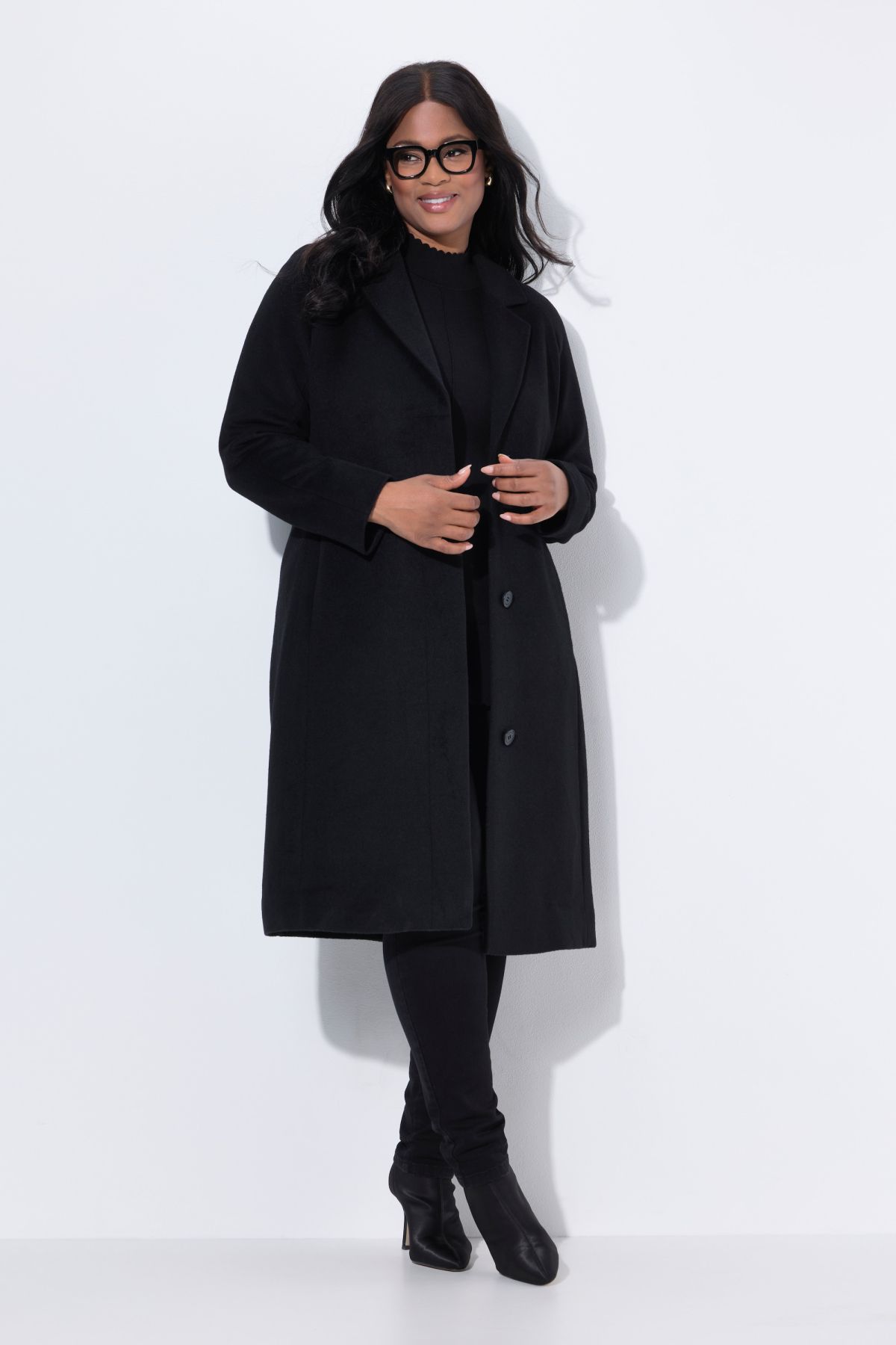 Палто с ревери на яката от мека, вълнена материя с акцент от шевове. С издължен силует - перфектно за студените зимни дни. С дълги ръкави, копче отпред и странични джобове.