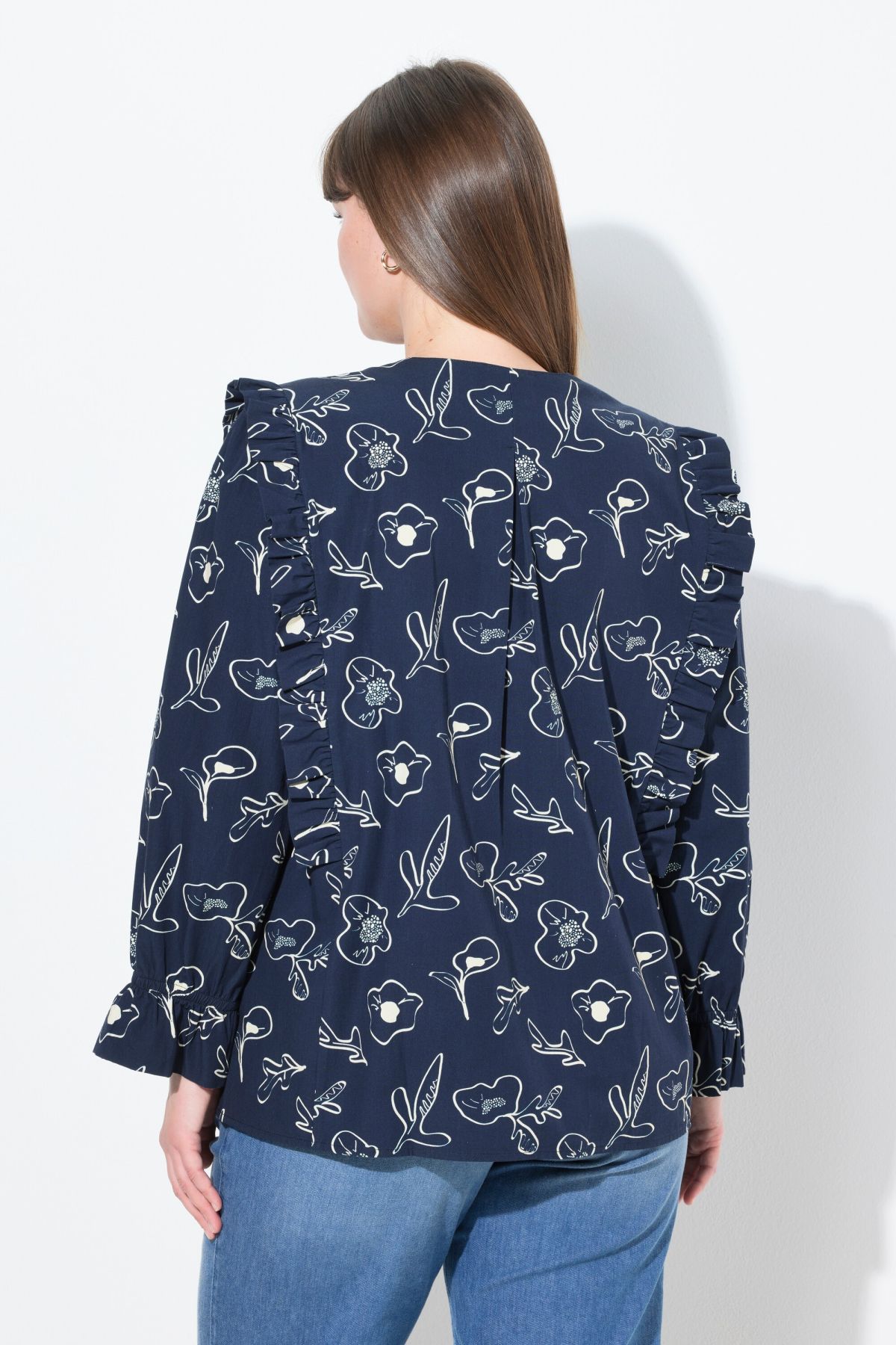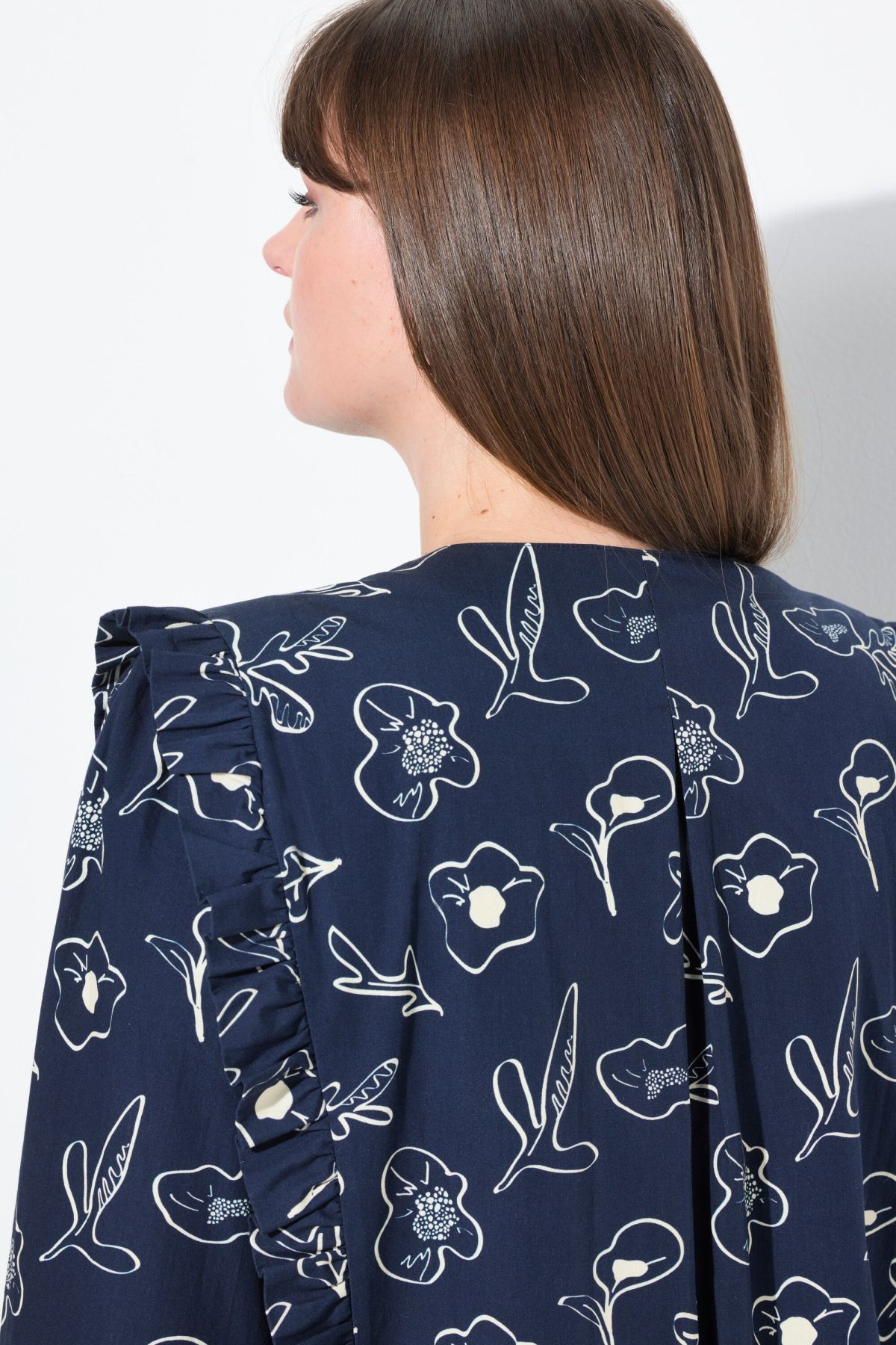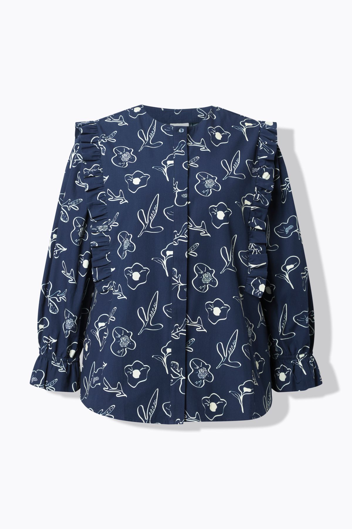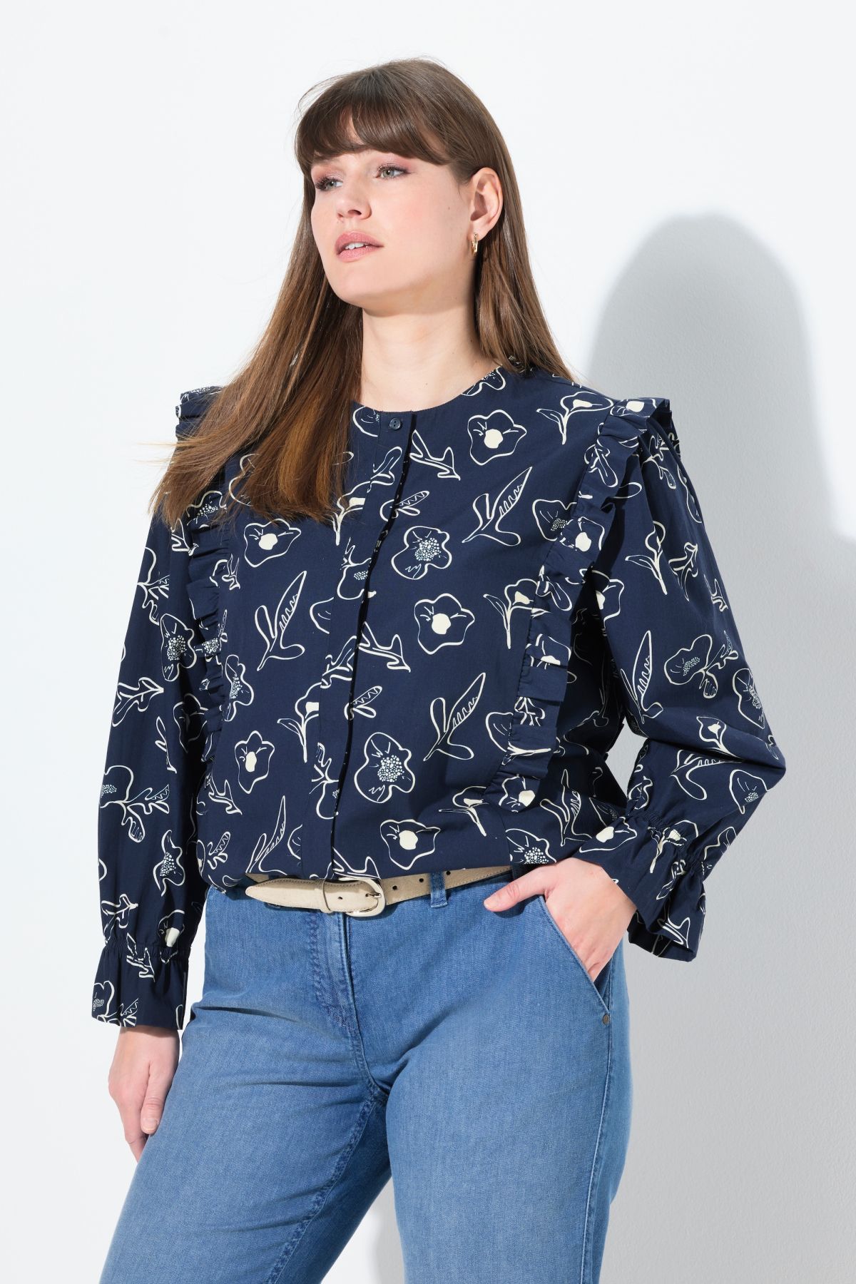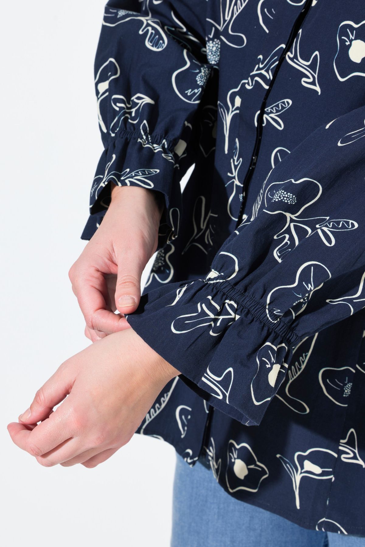 Риза с модерен принт на цветя и къдрави акценти на раменете. С комфортен силует, перфектен за ежедневието. С копчета отпред, кръгло деколте и дълги ръкави с маншет с копче.