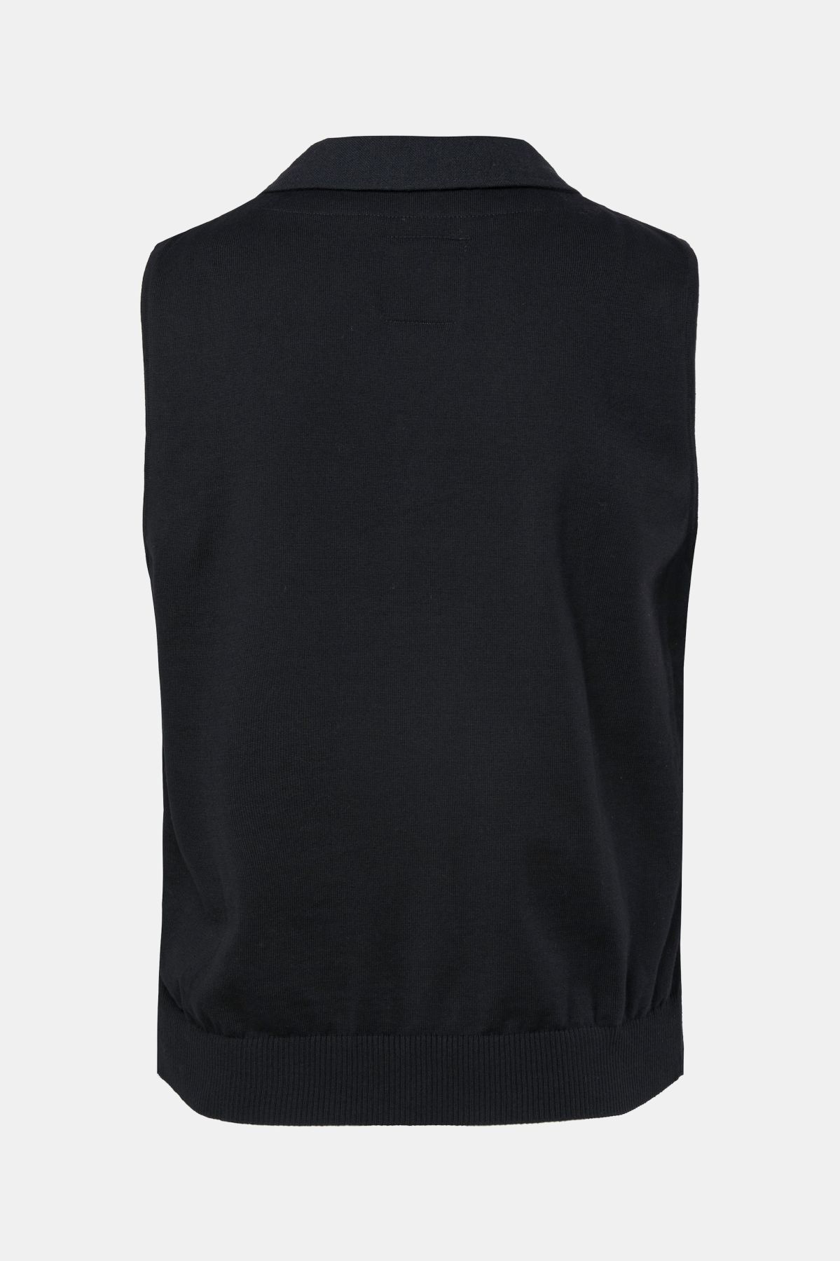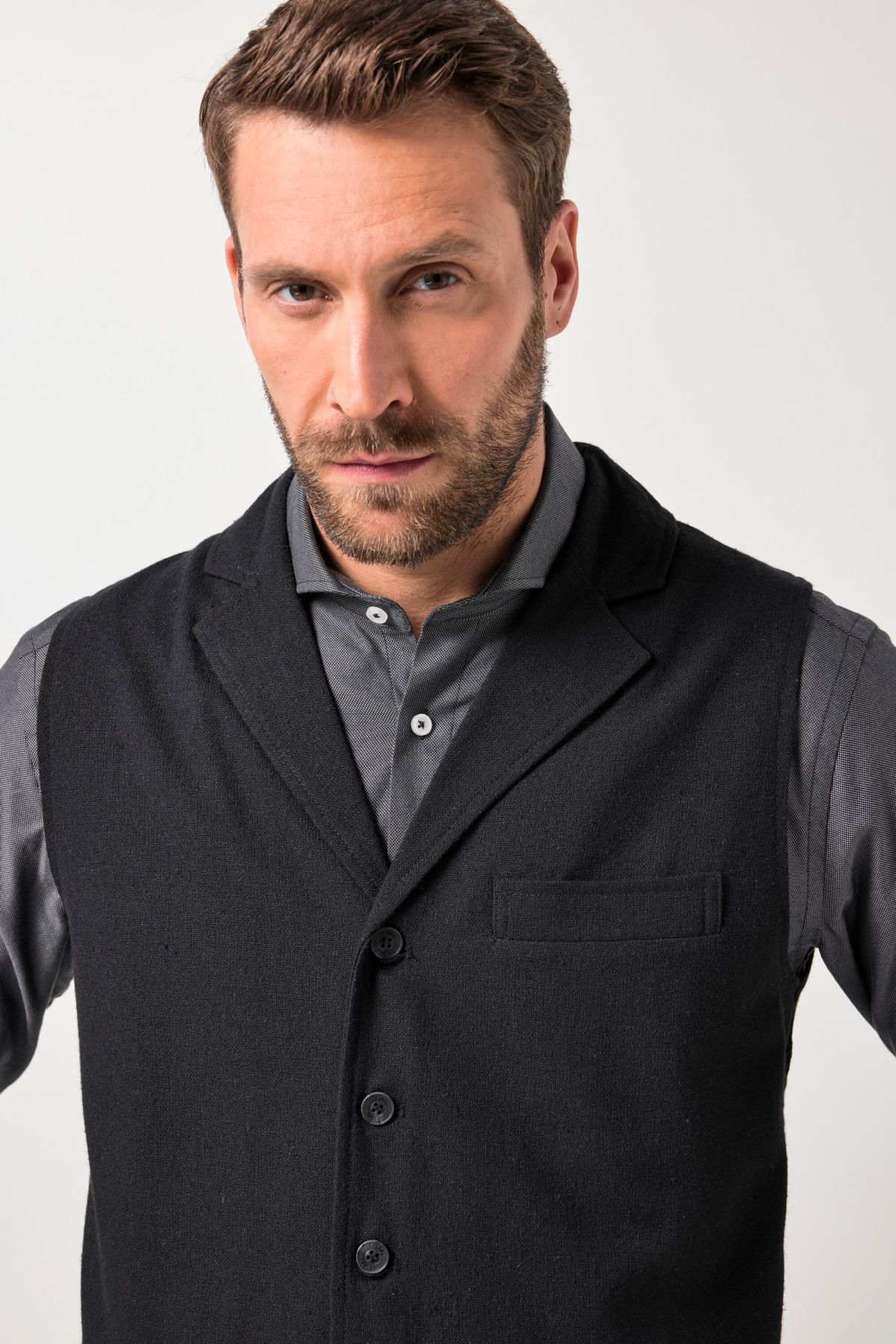 Вълнен елек от мека, плетена материя. С V - образно деколте и копчета отпред. Стилен и елегантен завършек за всеки костюм