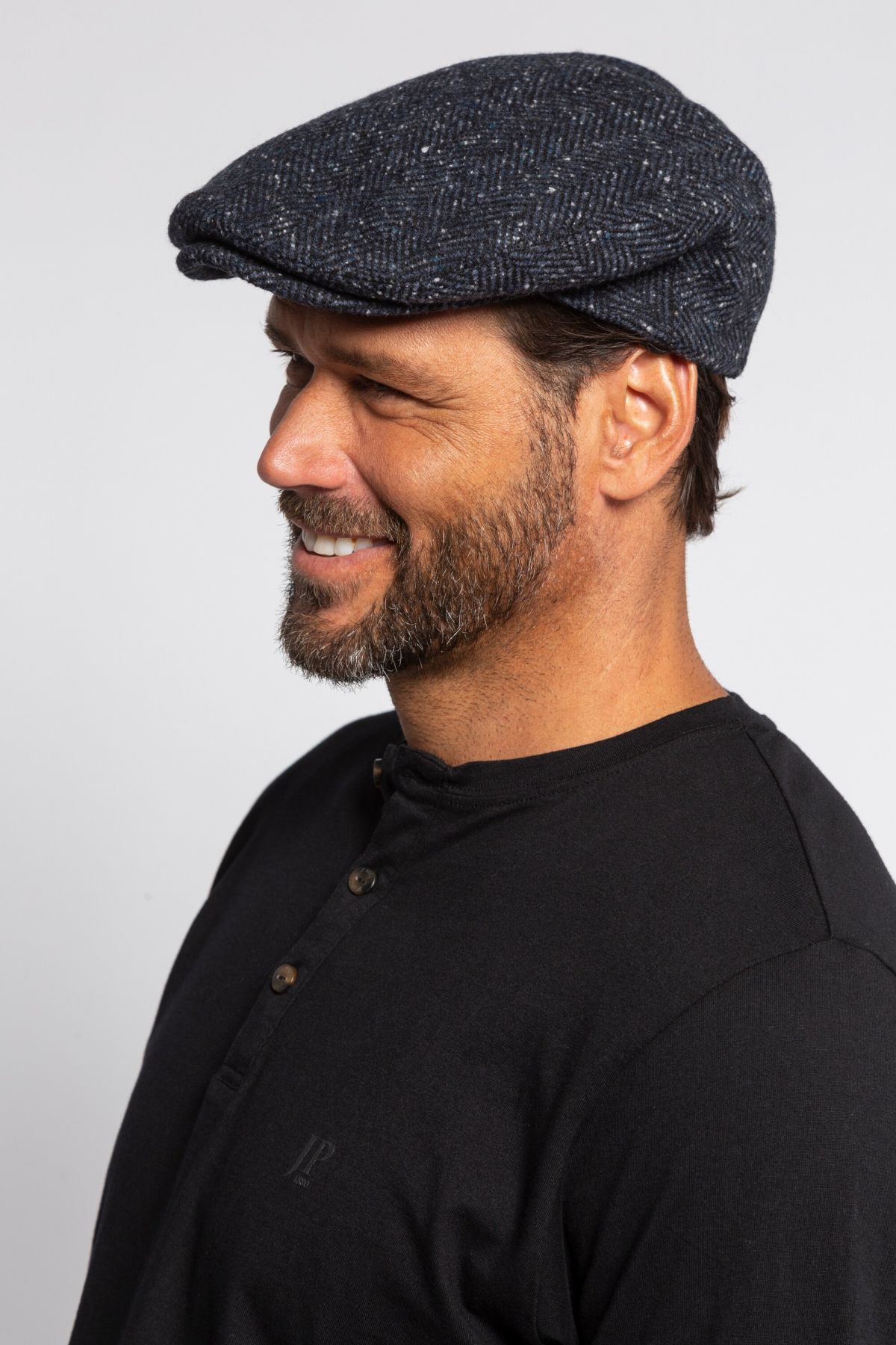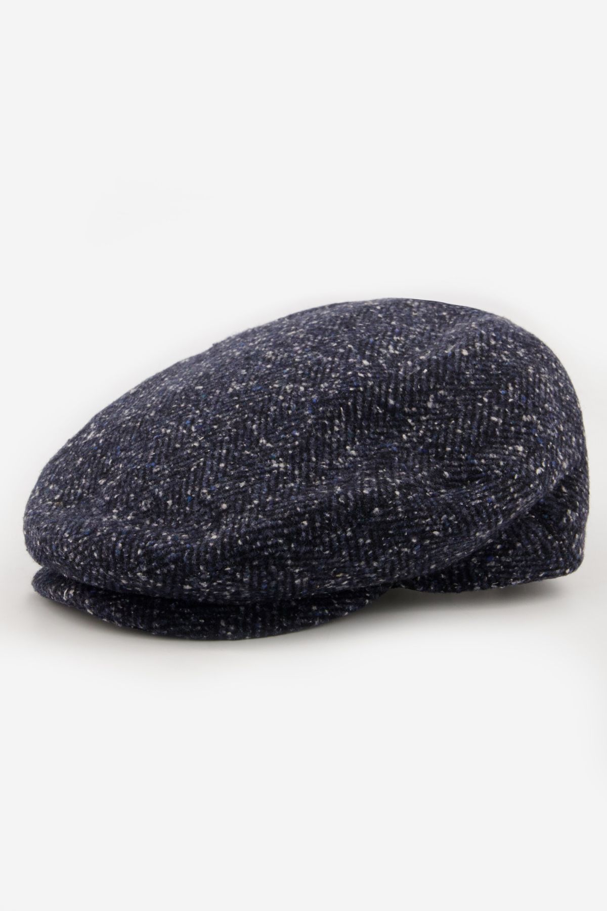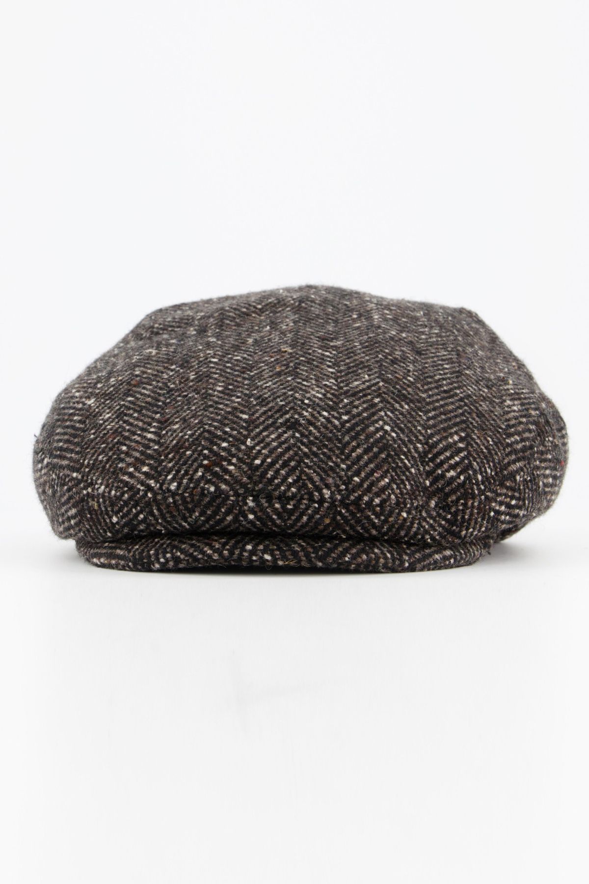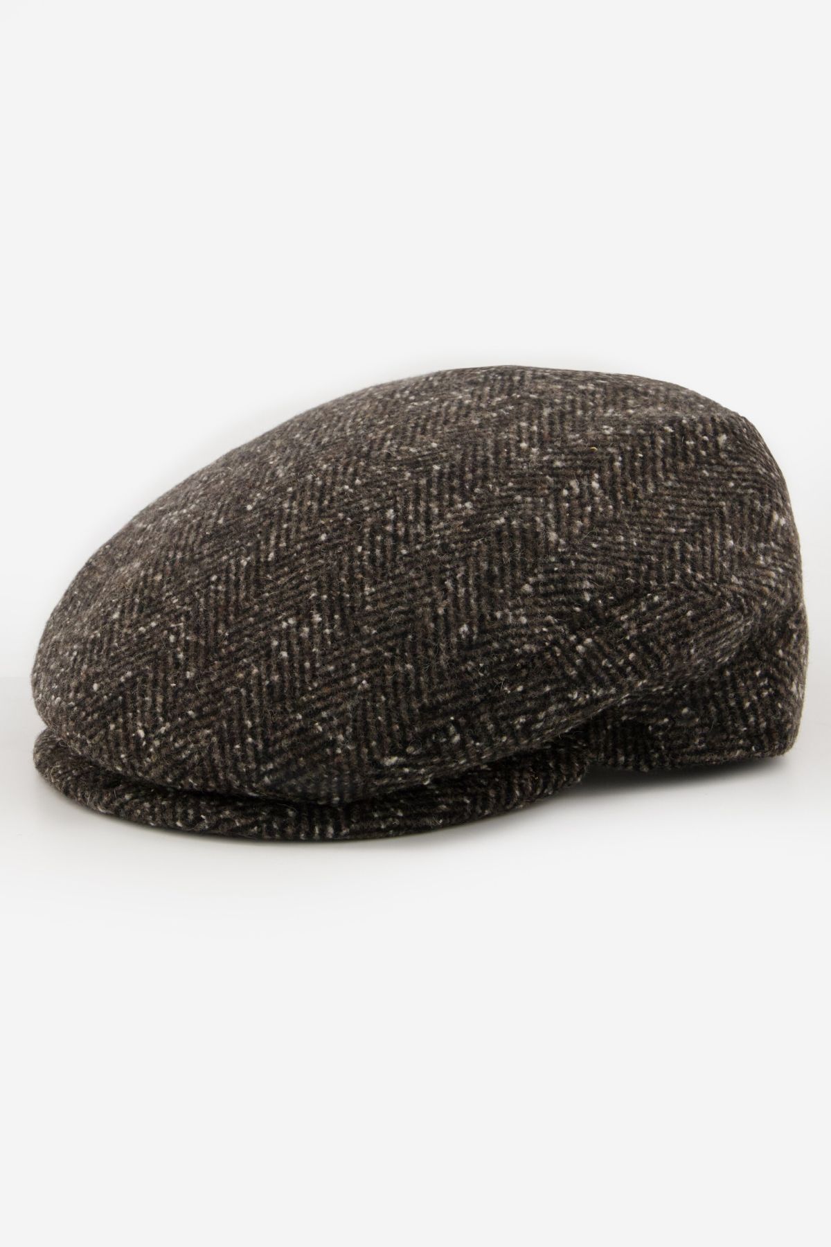 Шапка тип барета от вълнена материя с кариран принт. С подплата.