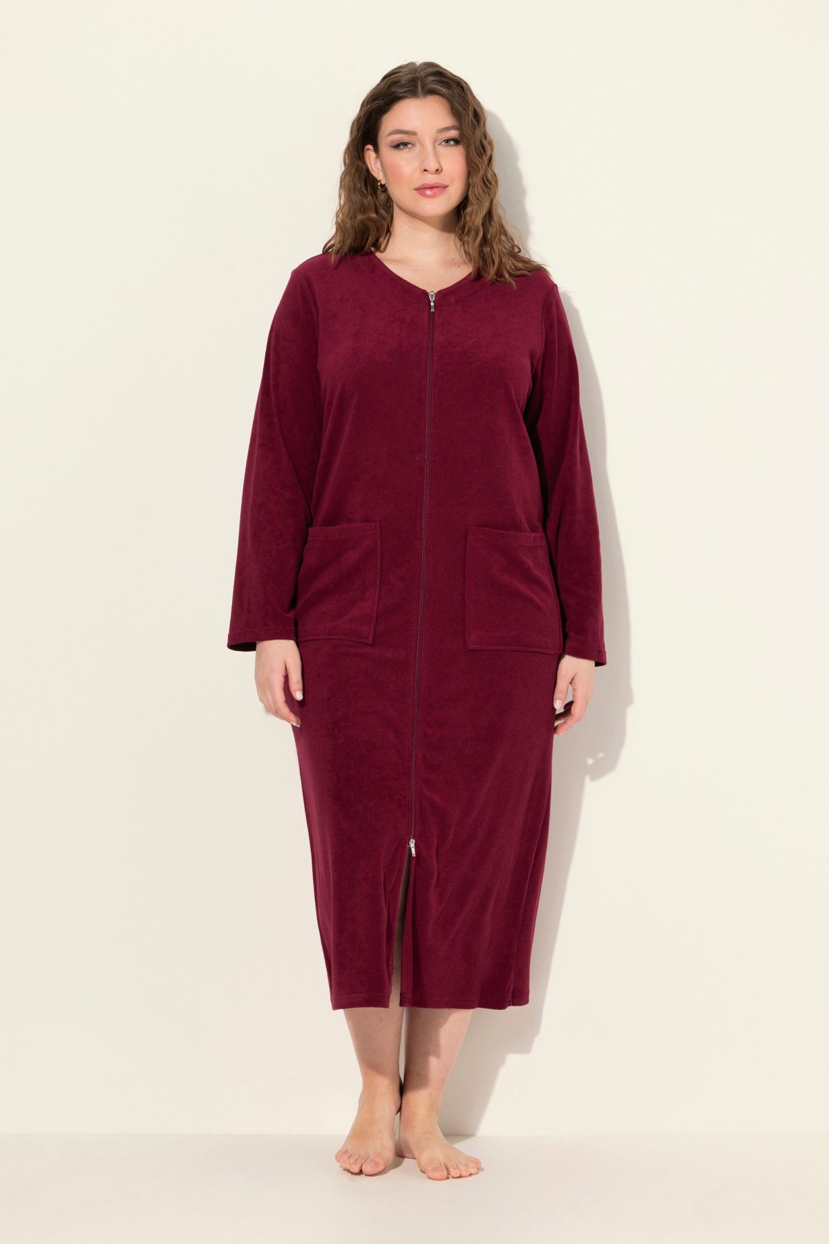 Хавлия дълга с цип от мека, комфортна материя. С V - образно деколте, двупосочен цип, външни джобове и дълги ръкави.
