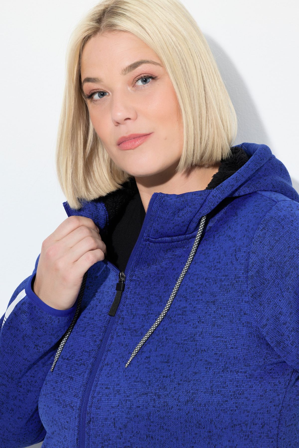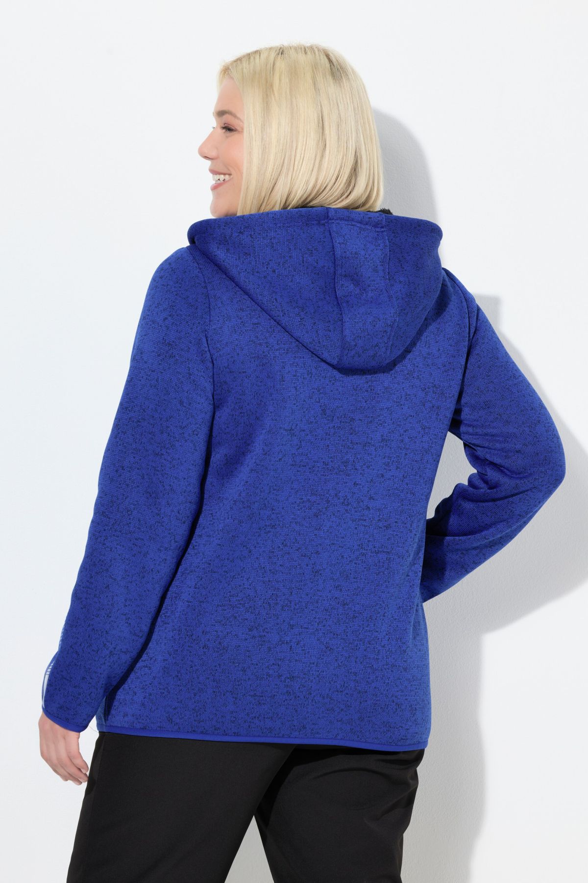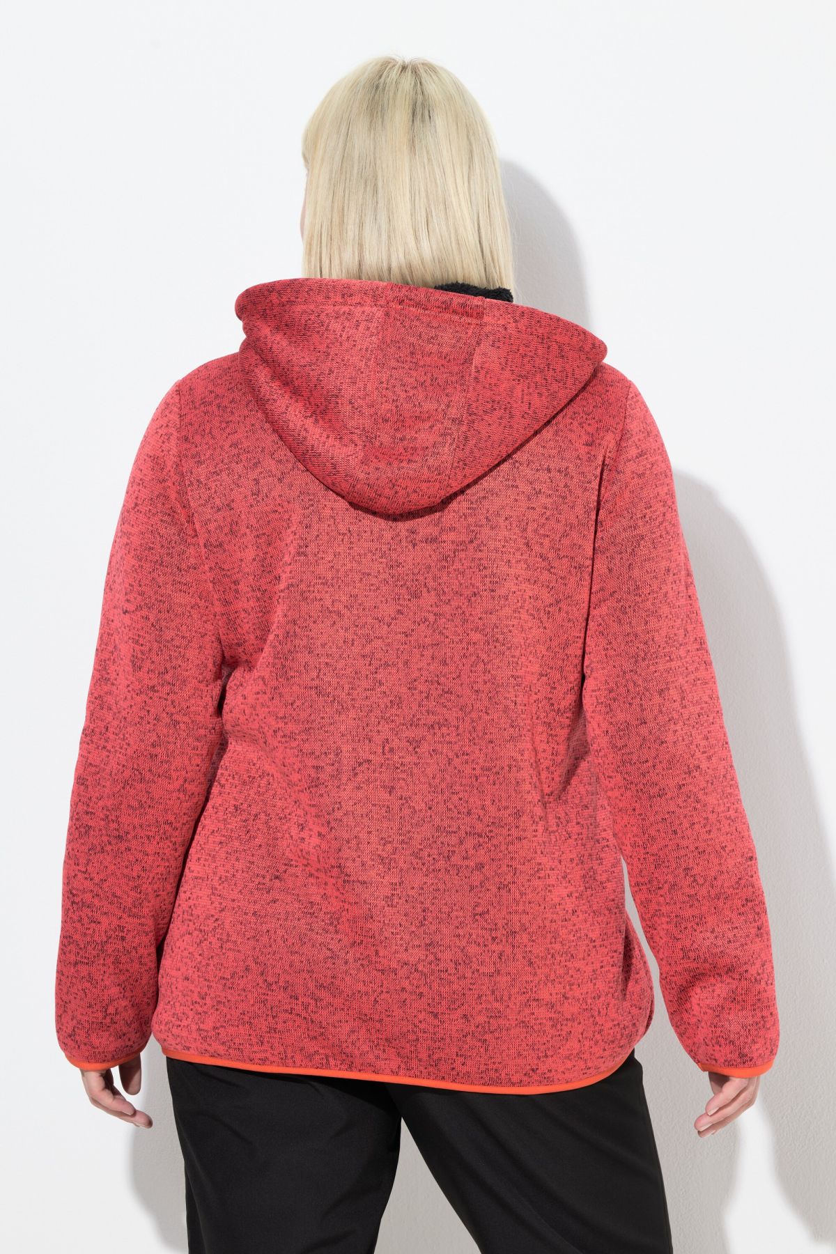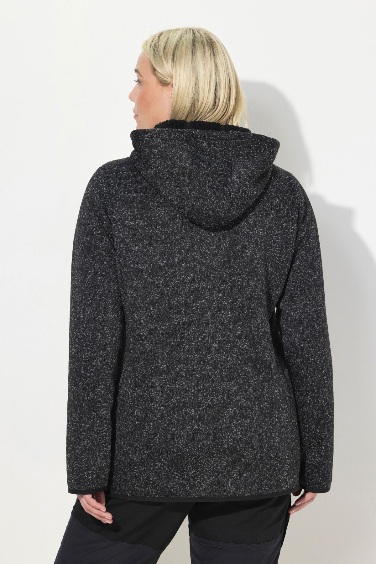 Суитчър с плетена визия. С качулка с връзка за регулиране, предпазител за брадичка, двупосочен цип, странични джобове, дълги ръкави с маншети и светлоотразителни и еластичен подгъв. Плетен отвън и поларен отвътре.