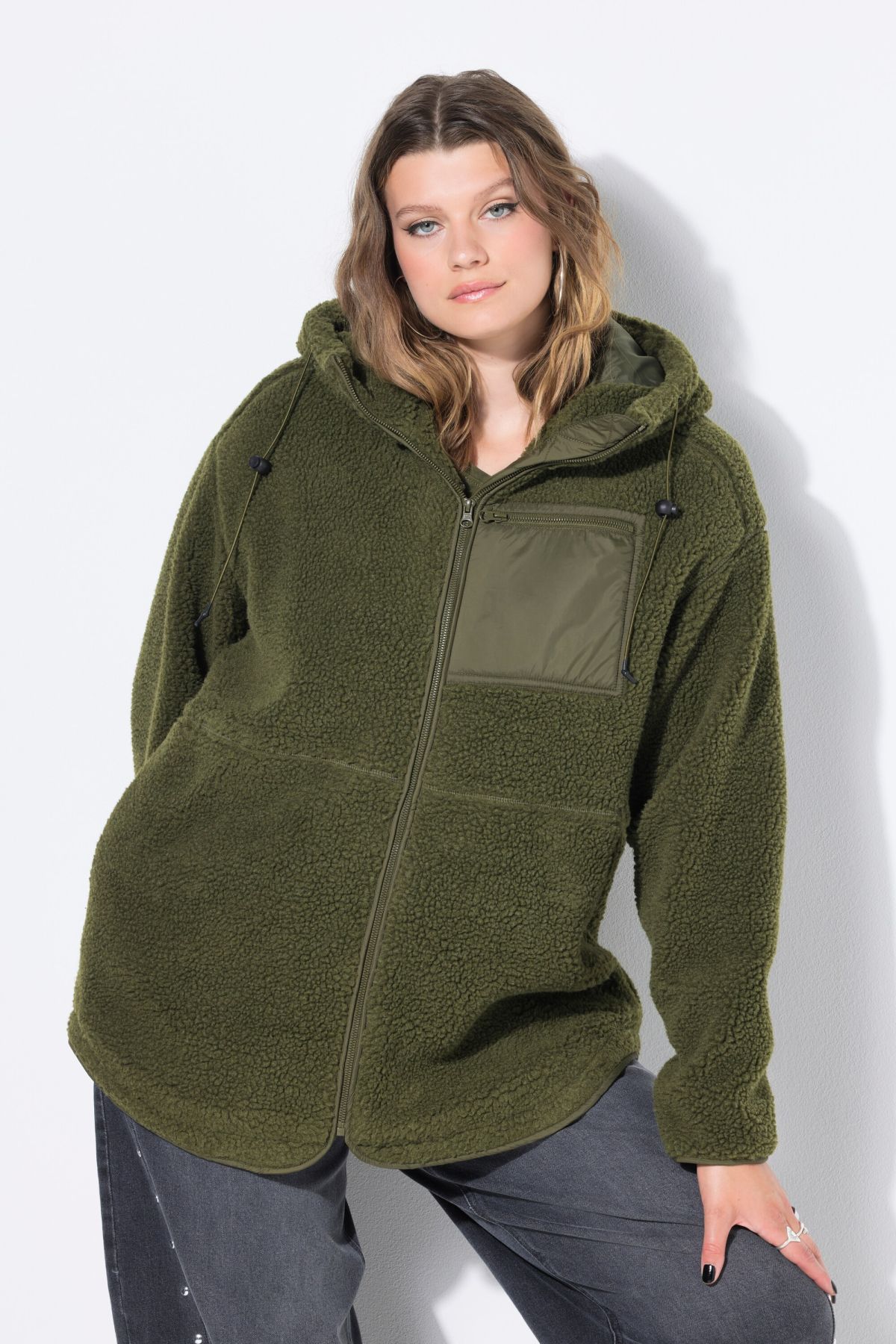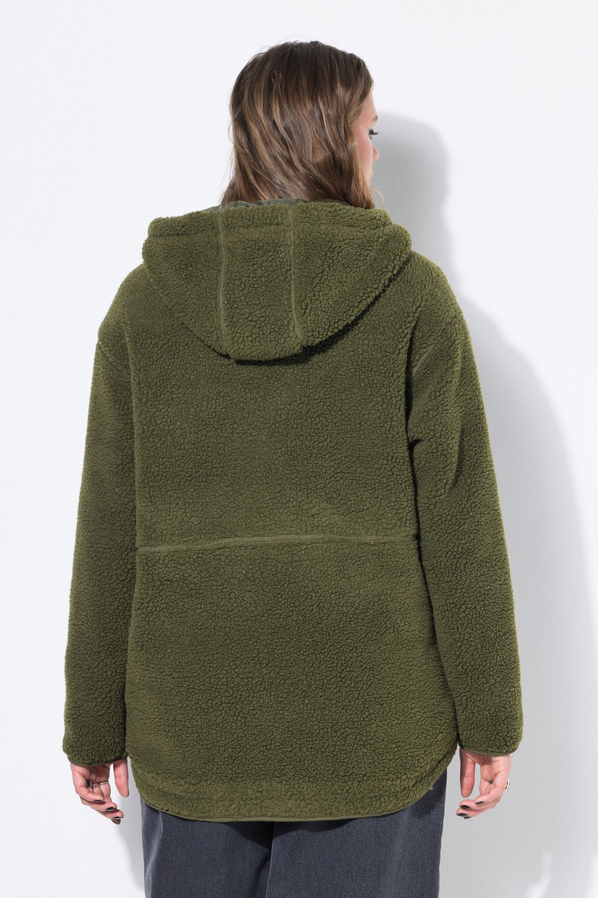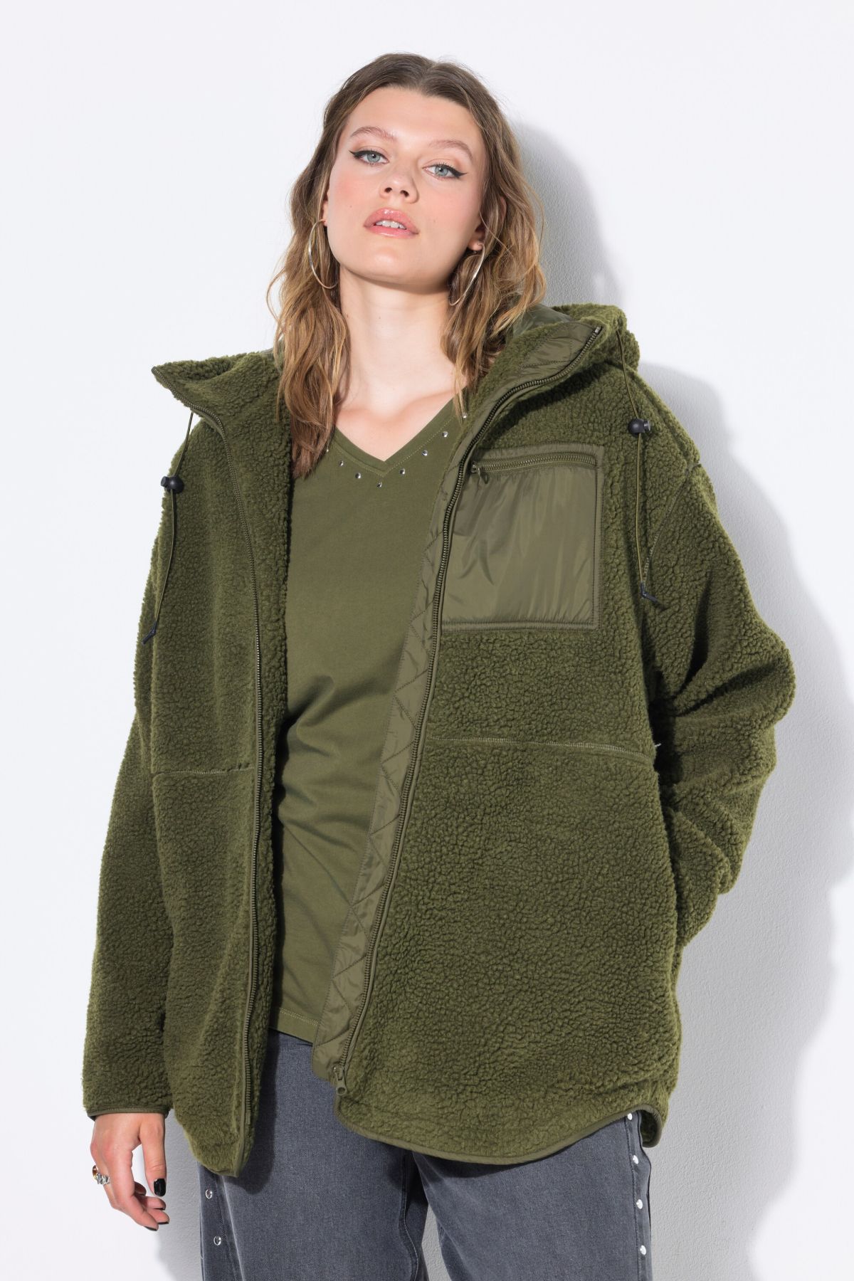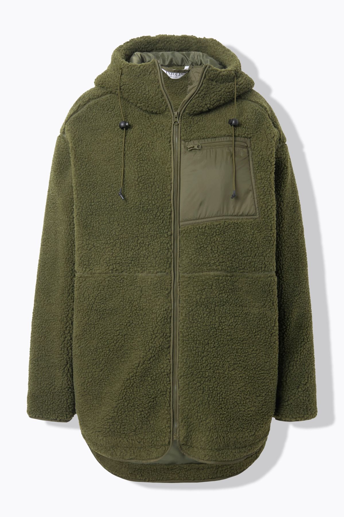 Пухкаво топло палто с ежедневна кройка с изправена яка и качулка с връзка. С цип и кръстосани шевове на талията. С джобове с ципове, 2 странични джоба. Със заоблен подгъв, дълги ръкави и подплата.