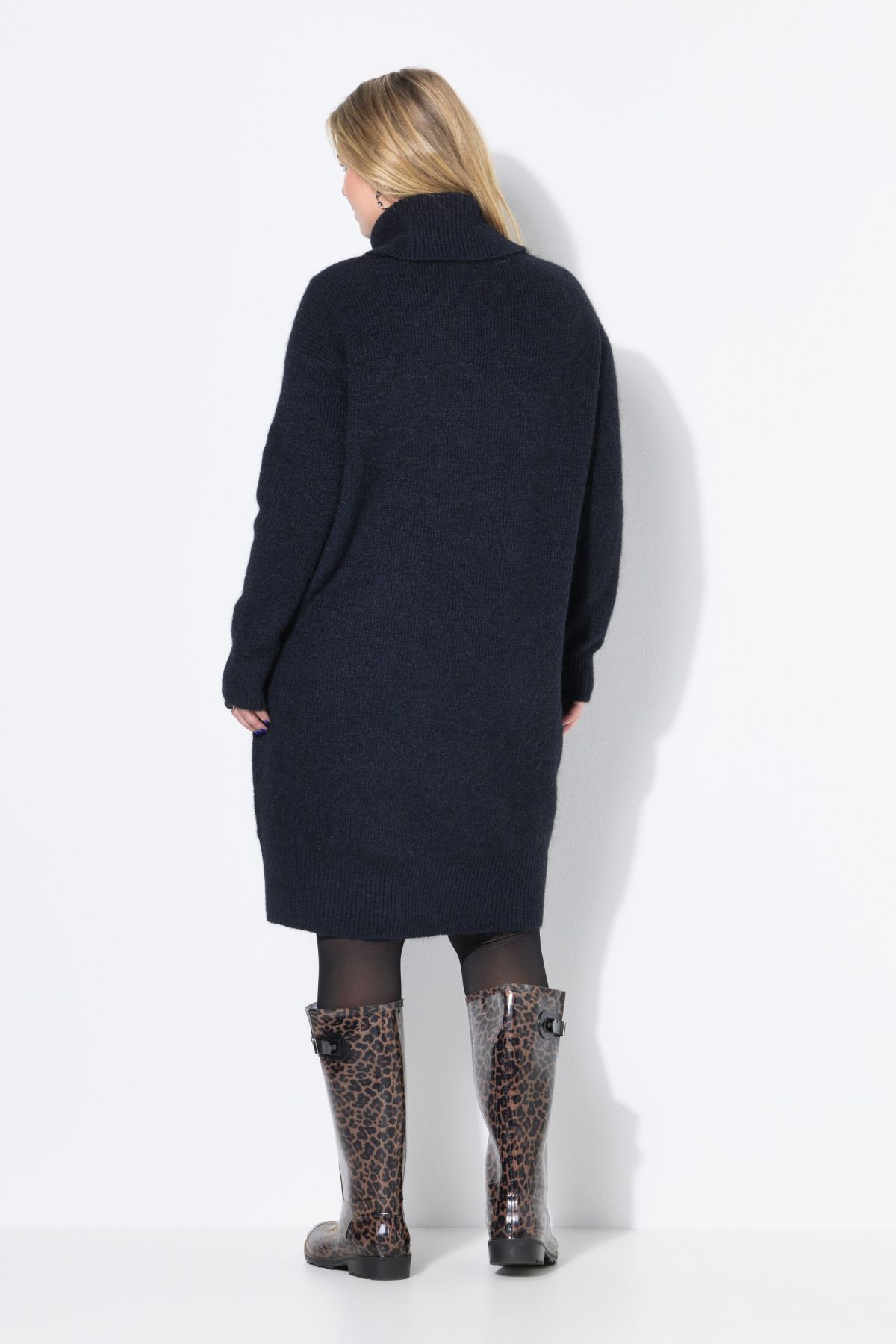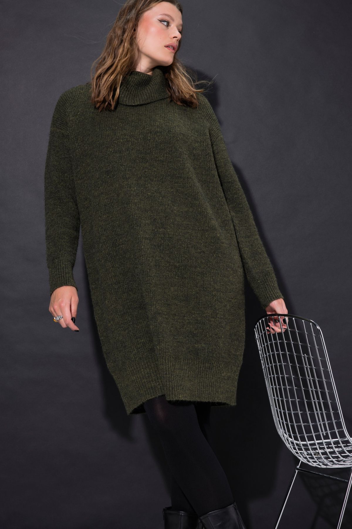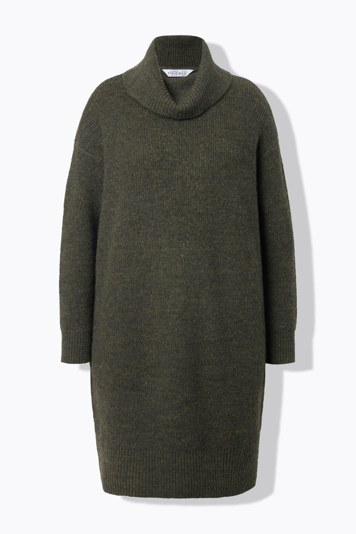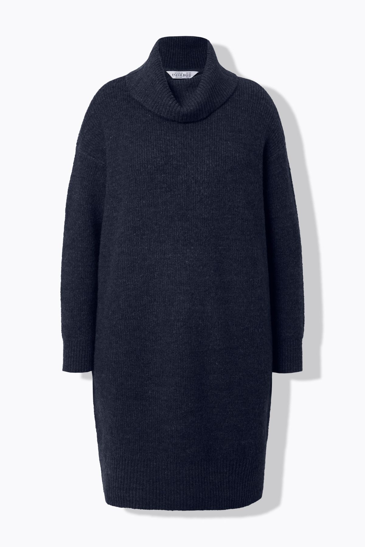 Рокля с разкроен силует от мека материя. С широка поло яка, паднали рамене и дълги ръкави с рипсен маншет.