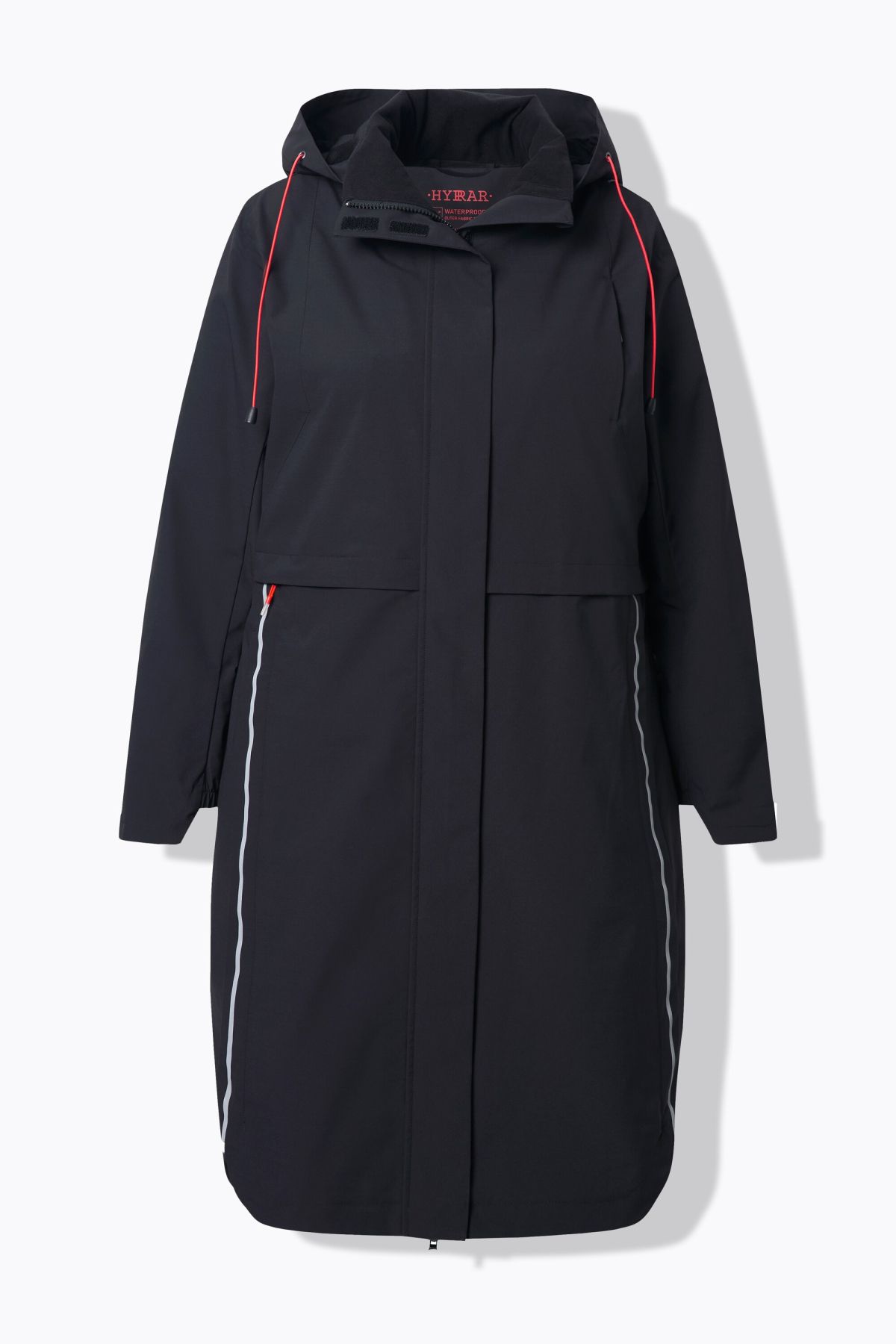Яке дълго и функционално - водонепромокаемо, ветроустойчиво и дишащо. Добавете удобство в ежедневието си. С контрастни акценти, цип с капак отпред, изправена яка, качулка и странични джобове с ципове.