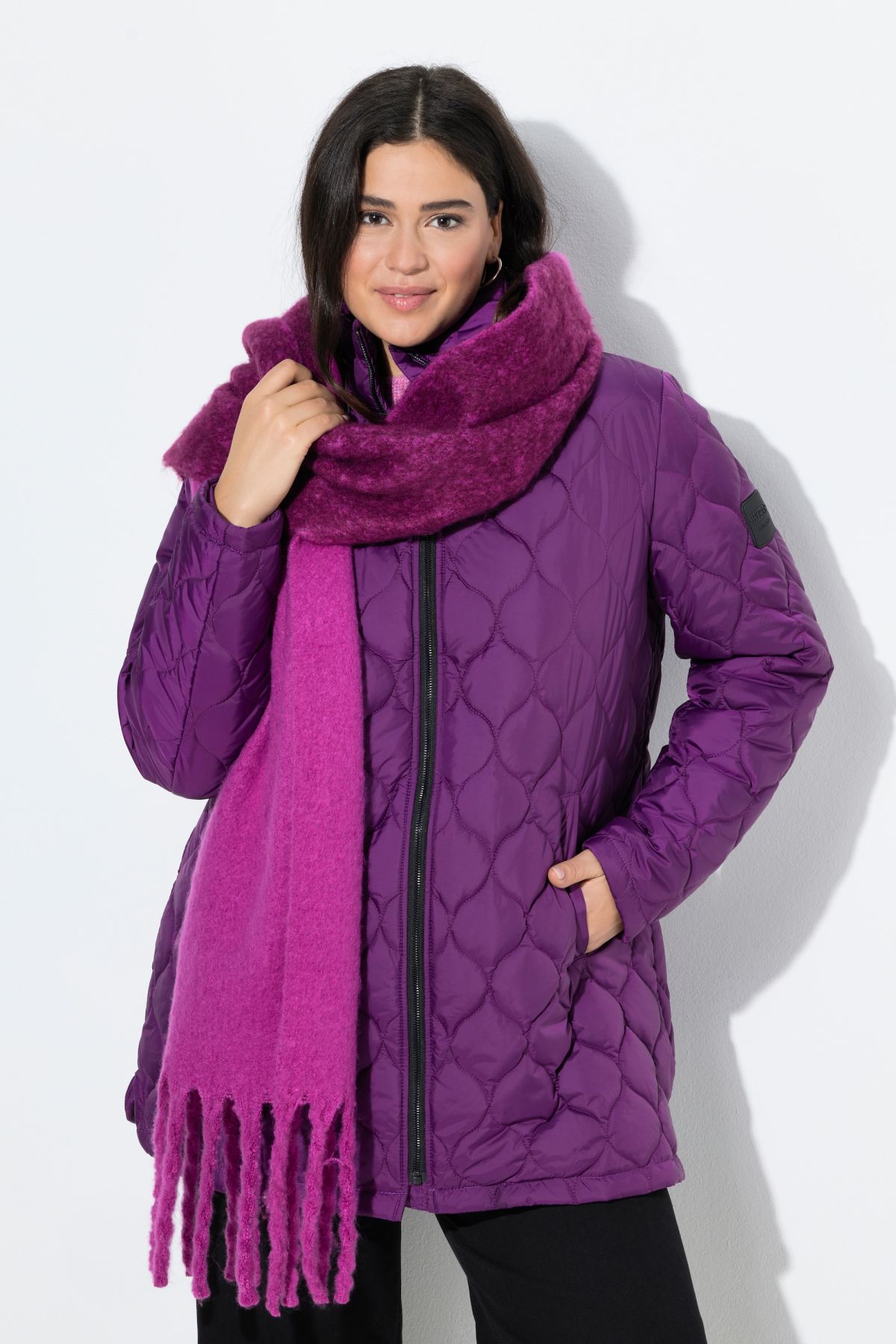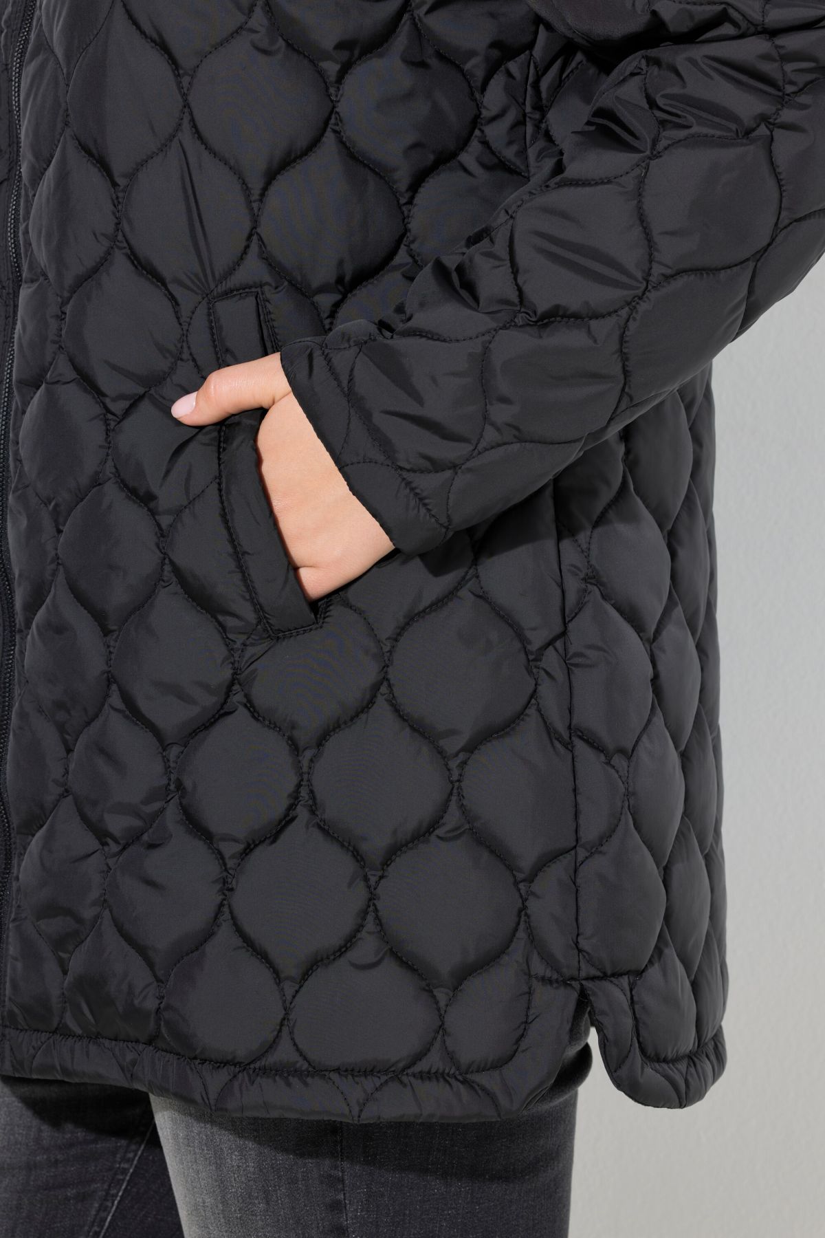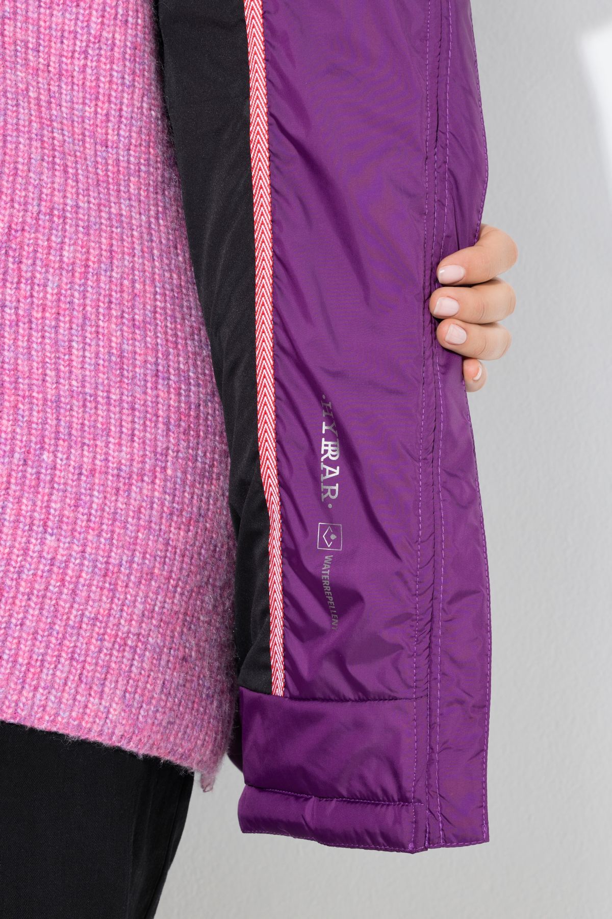 Яке водонепромокаемо с шевови акценти с модерна визия и ретро стил. С изправена яка, странични джобове, цип отпред и дълги ръкави.