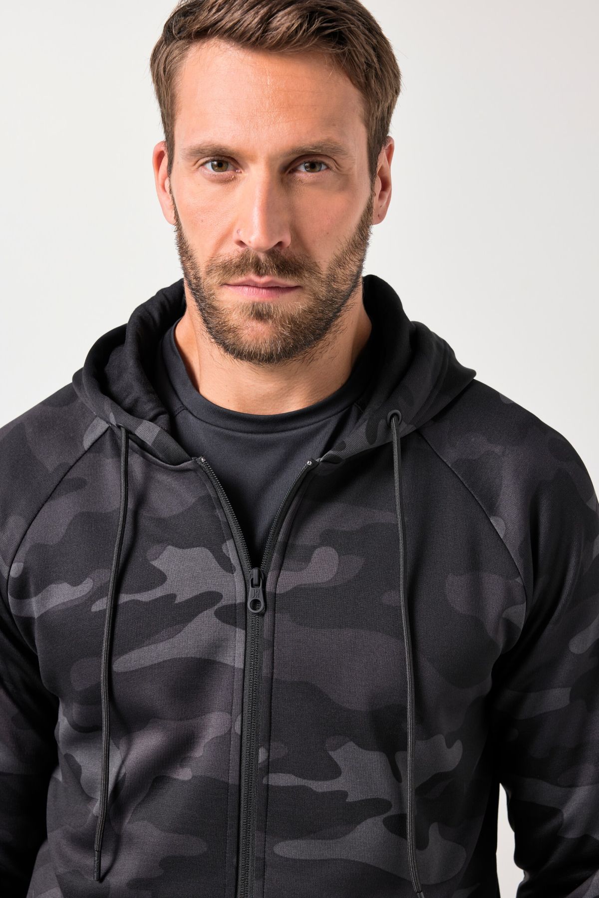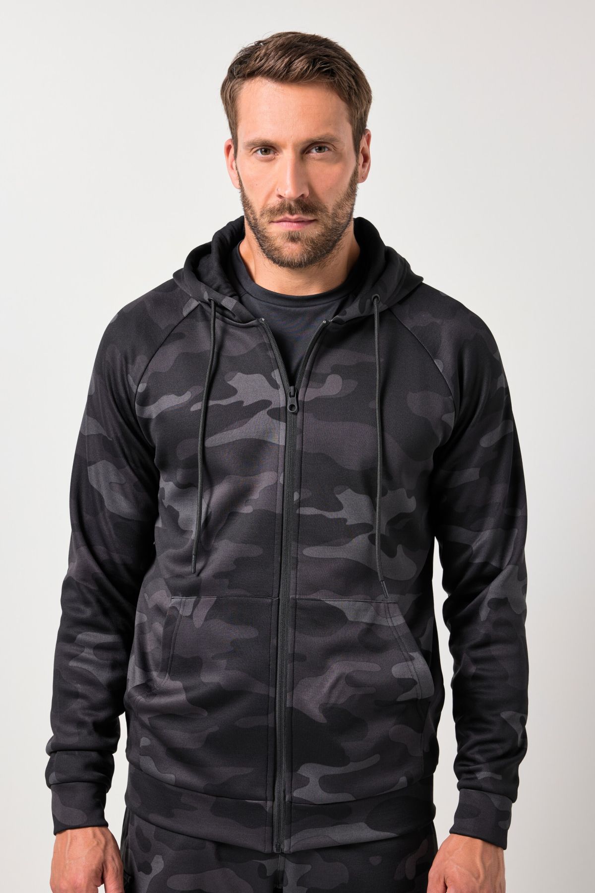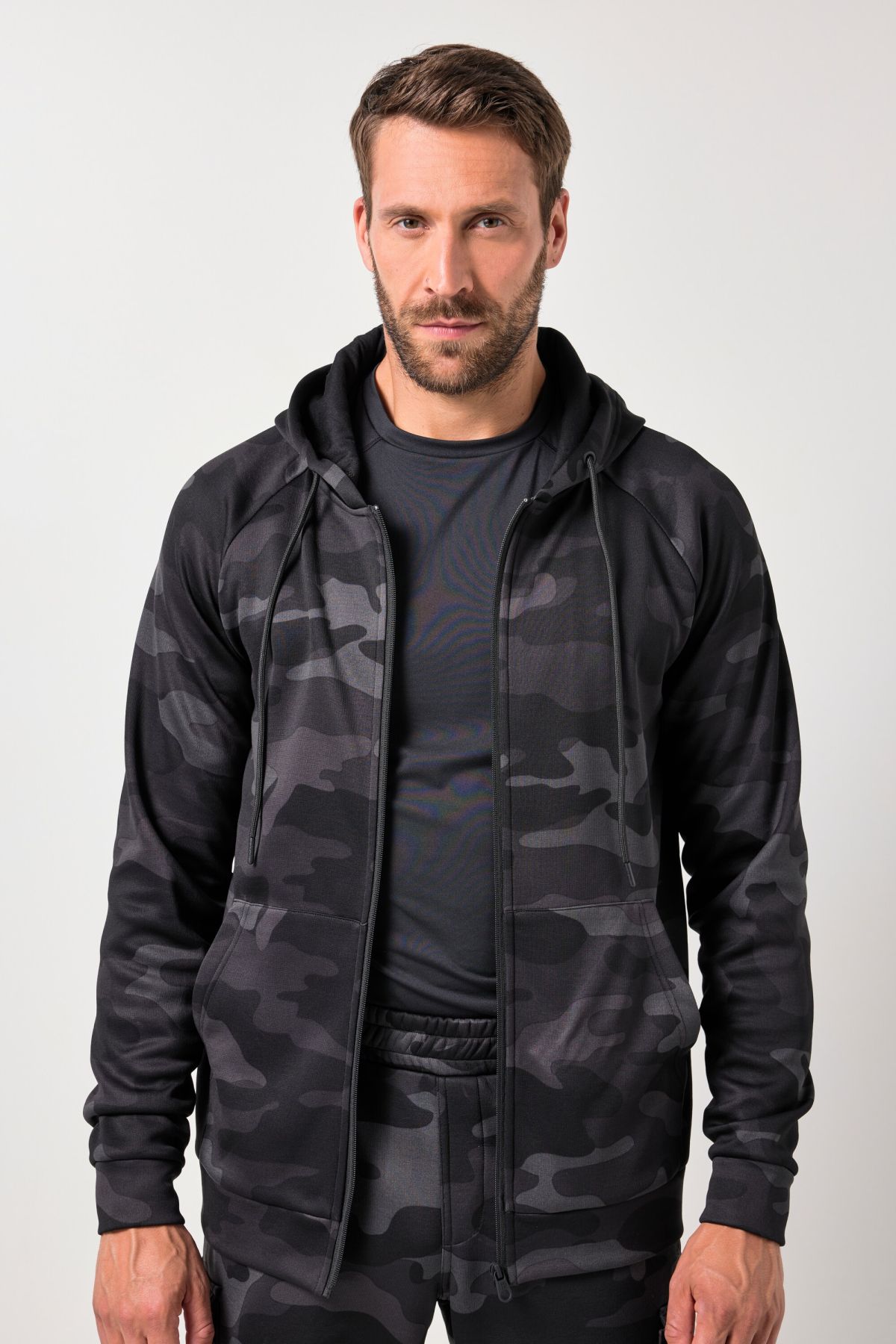Суитчър с камуфлажна визия. Перфектният избор за фитнес и всяка друга спортна активност. Дизайн с качулка с връзка, дълги ръкави и подгъв с рипсени маншети. С цип отпред и странични джобове.