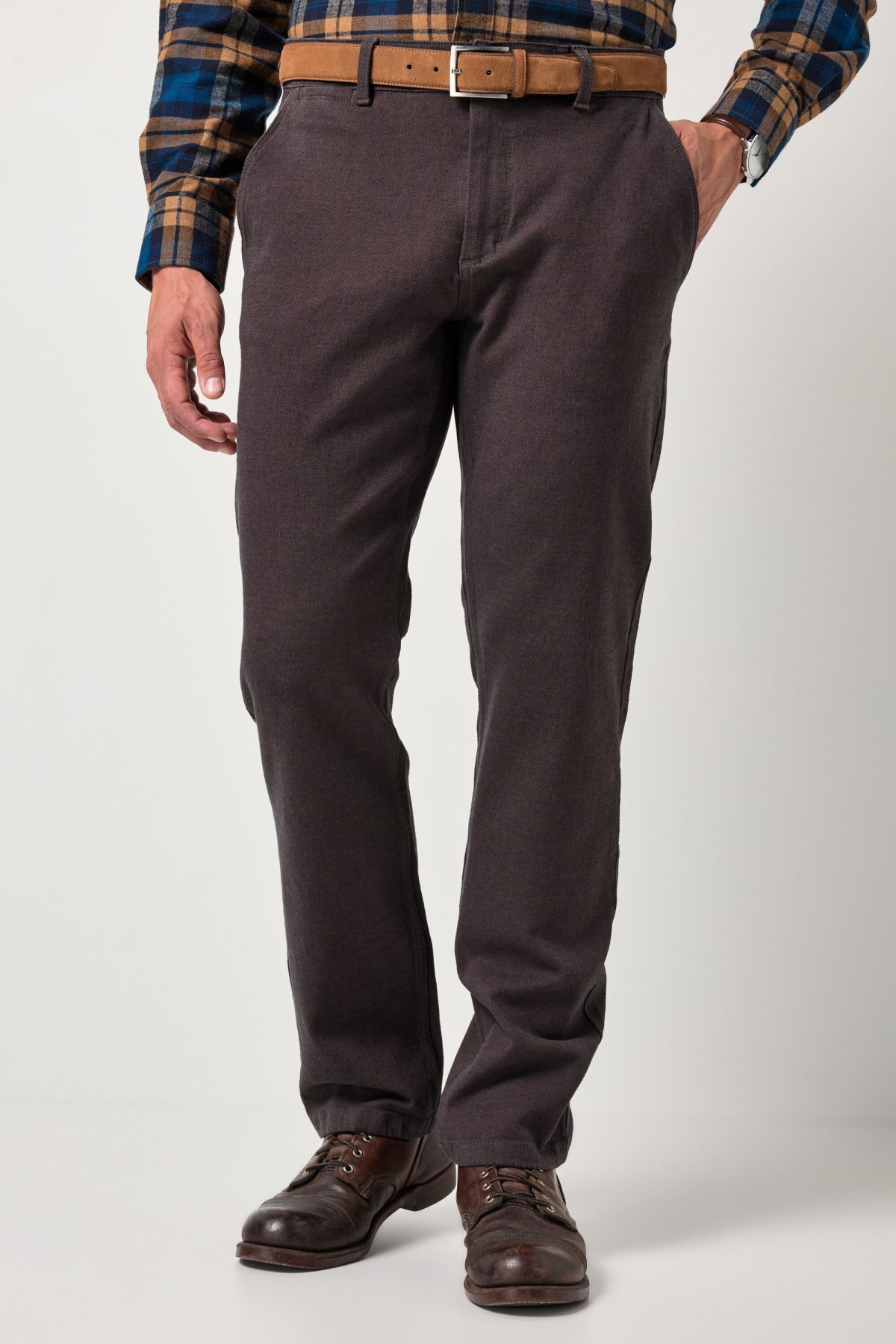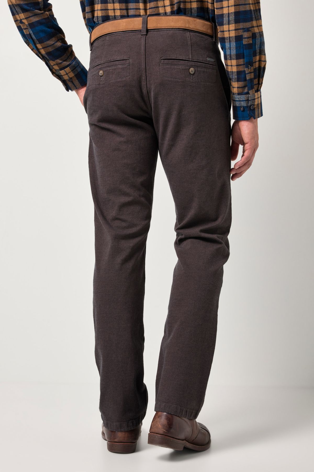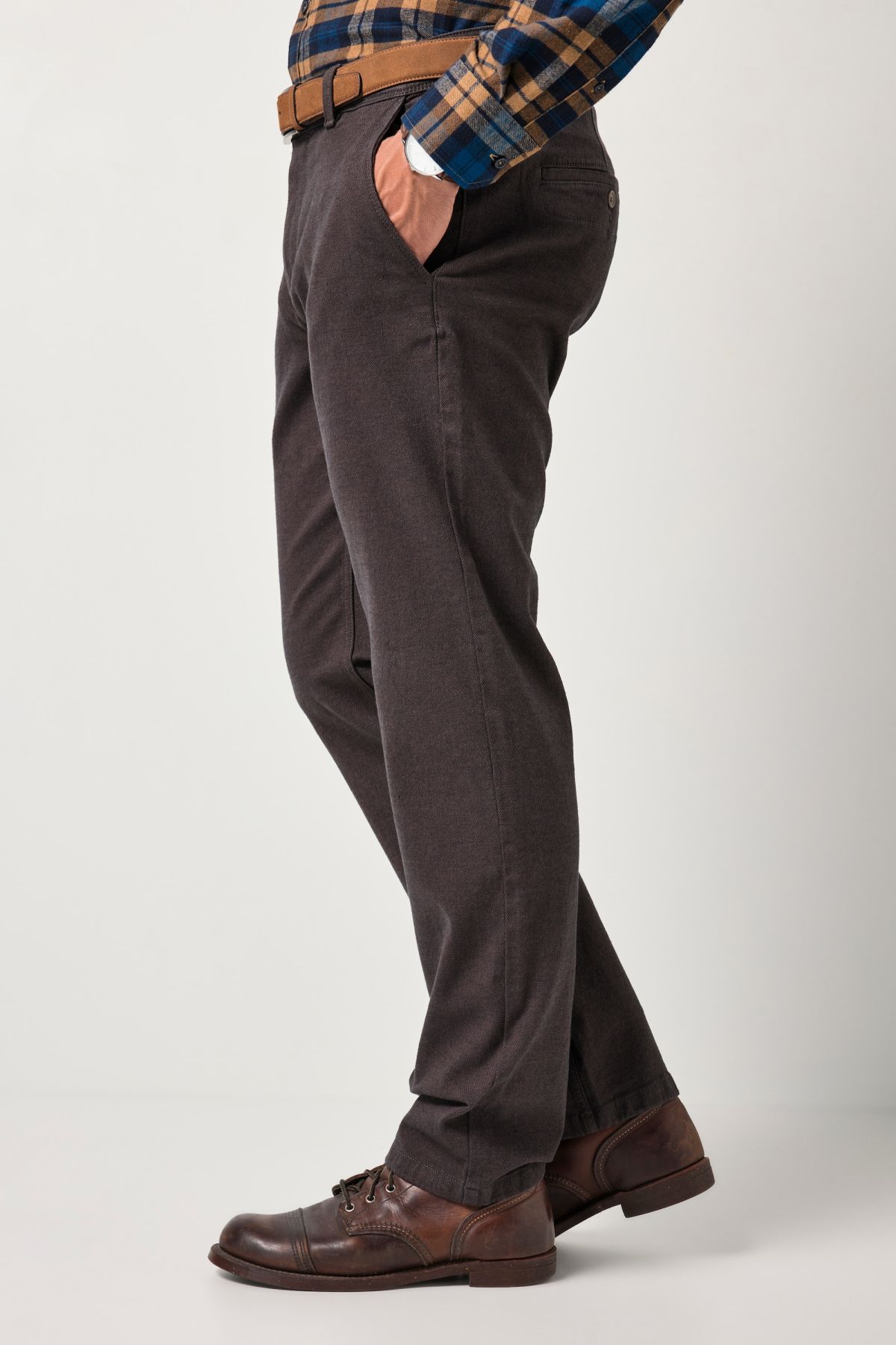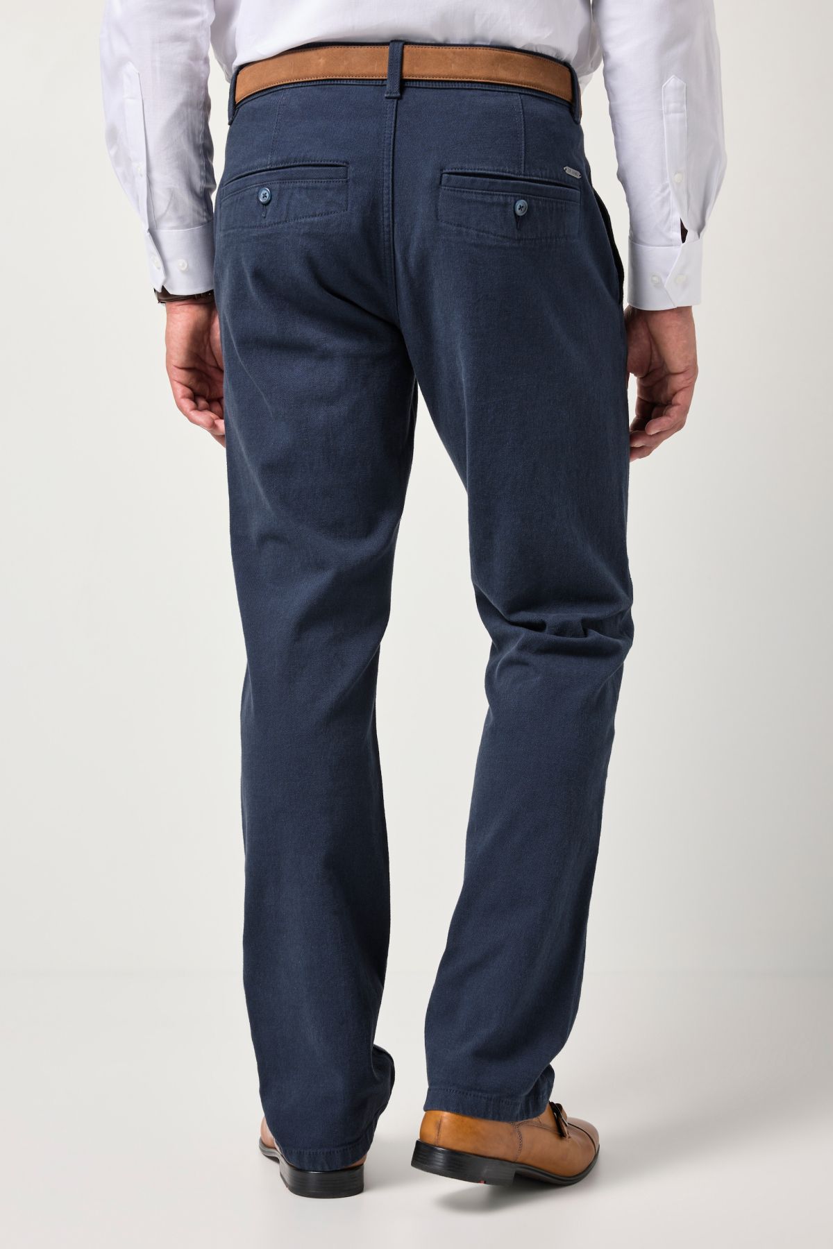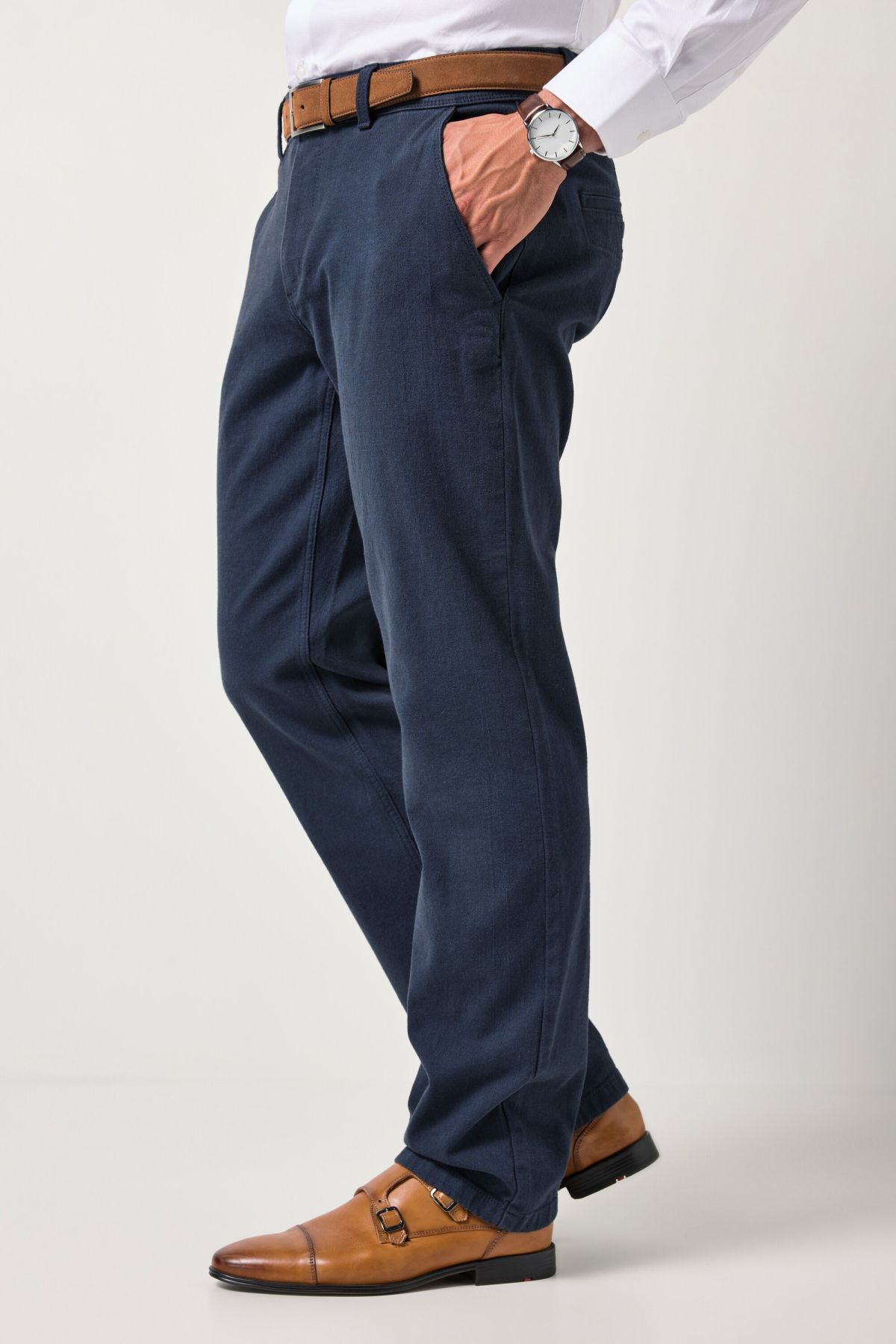 Панталони с удобна еластична талия, гайки за колан, закопчаване с копчета и цип, дизайн с 4 джоба и прав крачол. Нормалната кройка се отличава с нормално повдигане, удобна ширина на бедрата и крачола и нормална ширина на глезена.
