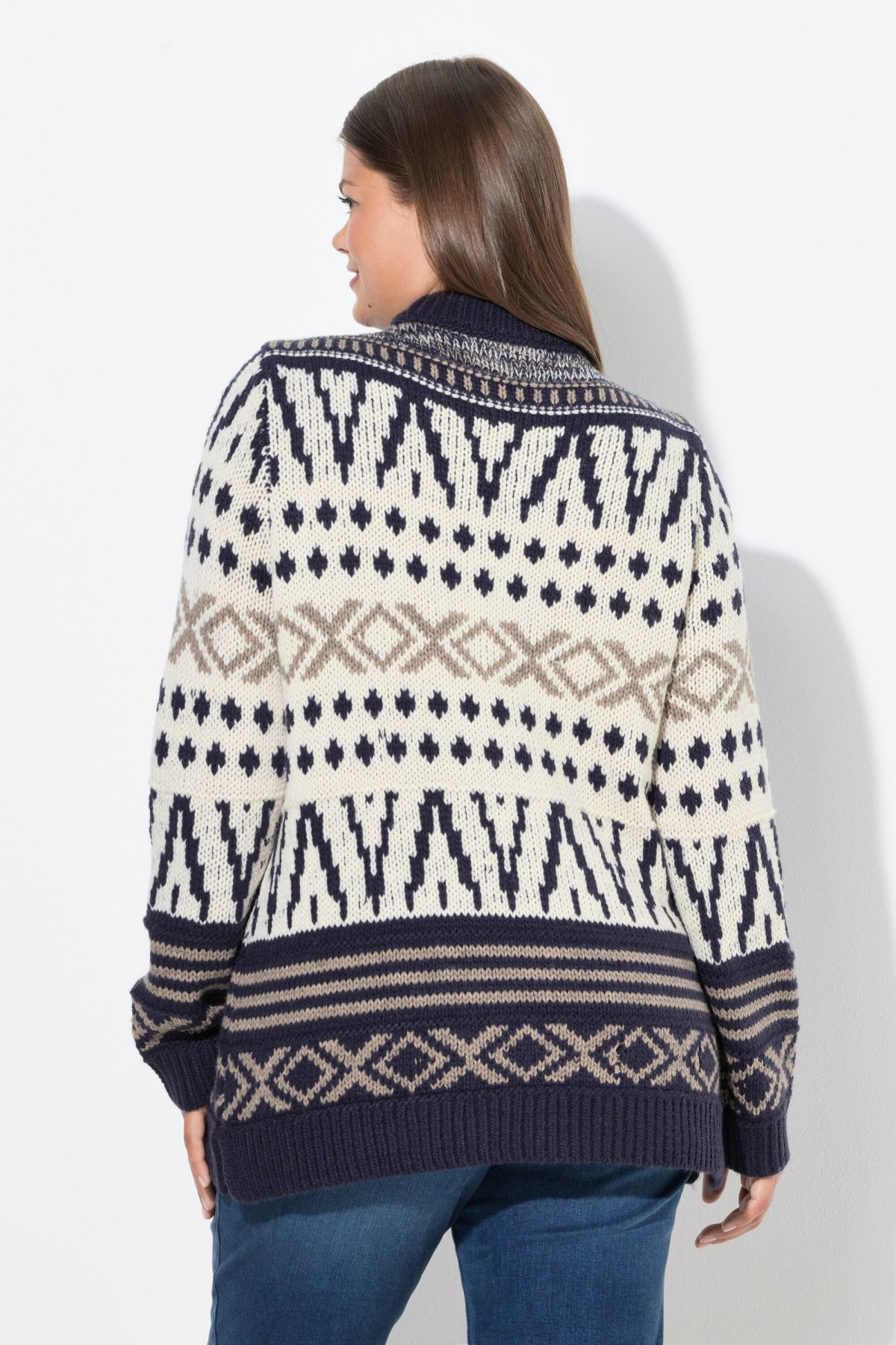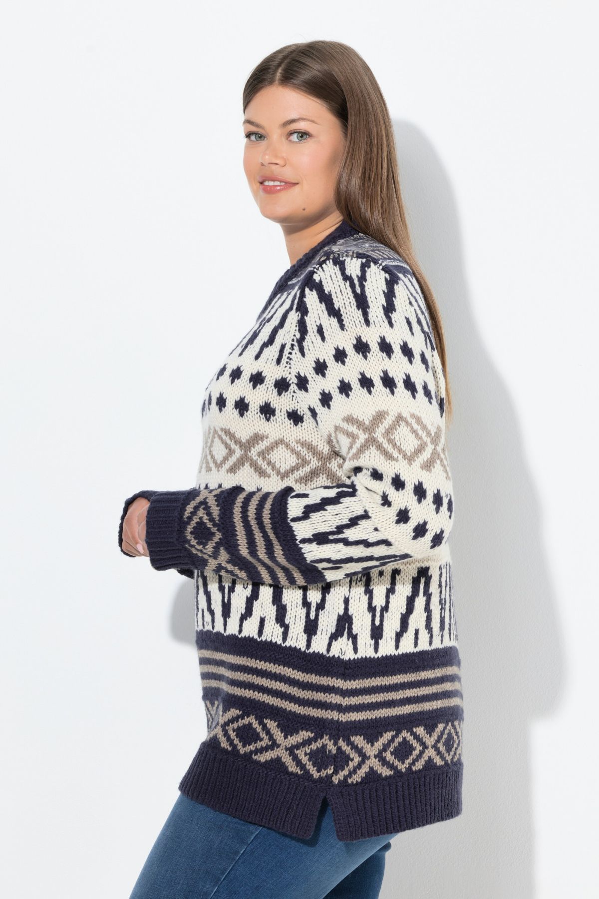Пуловер с принт на норвежки райета. Идеалният избор за студените, зимни дни. С кръгло деколте по врата и дълги ръкави. От мека, плетена материя.