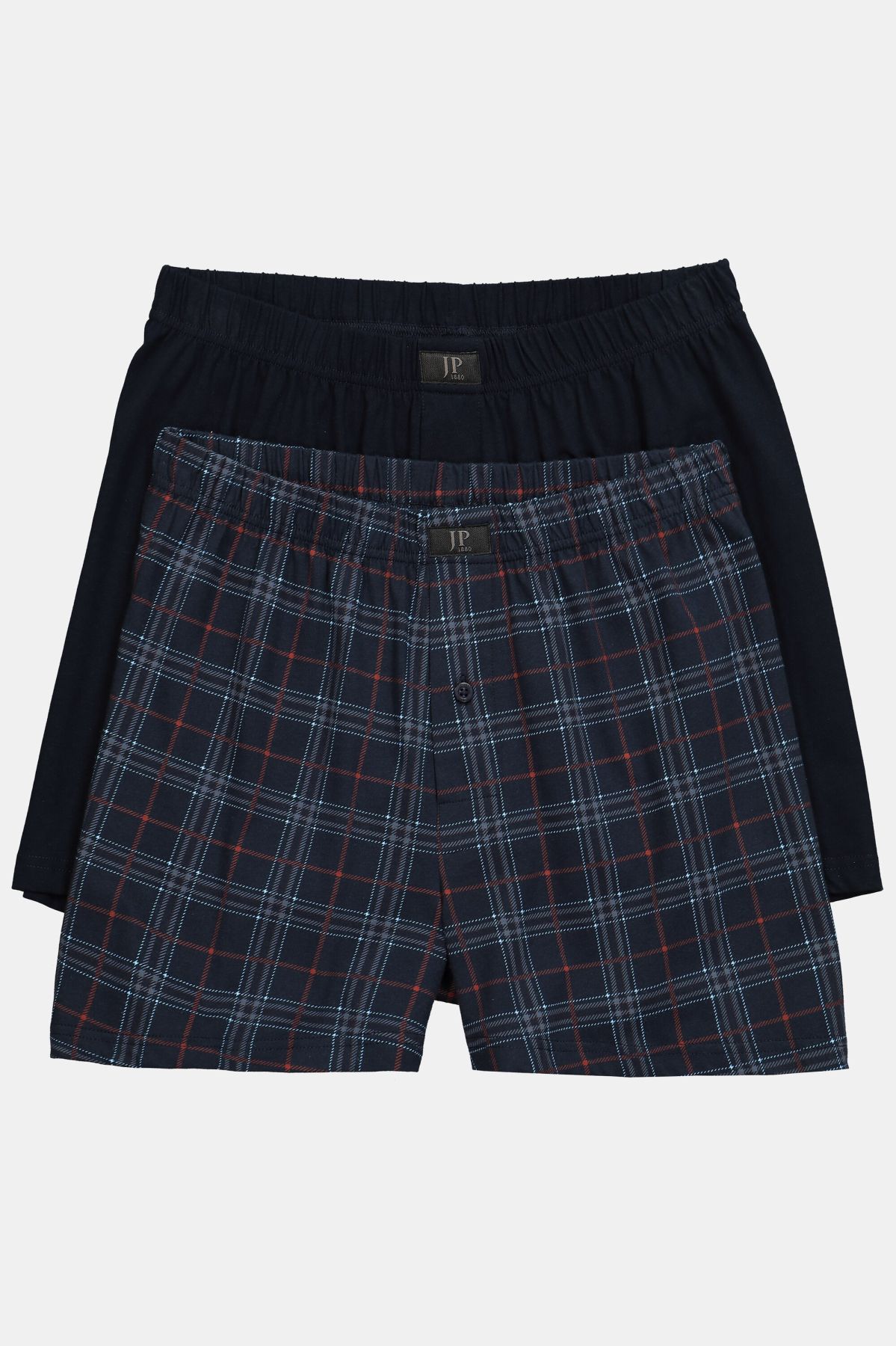 Боксерки комплект от 2 броя в широк стил - един кариран и един едноцветен . С еластична талия и мека, трикотажна материя. Открийте удобството в ежедневието си.
