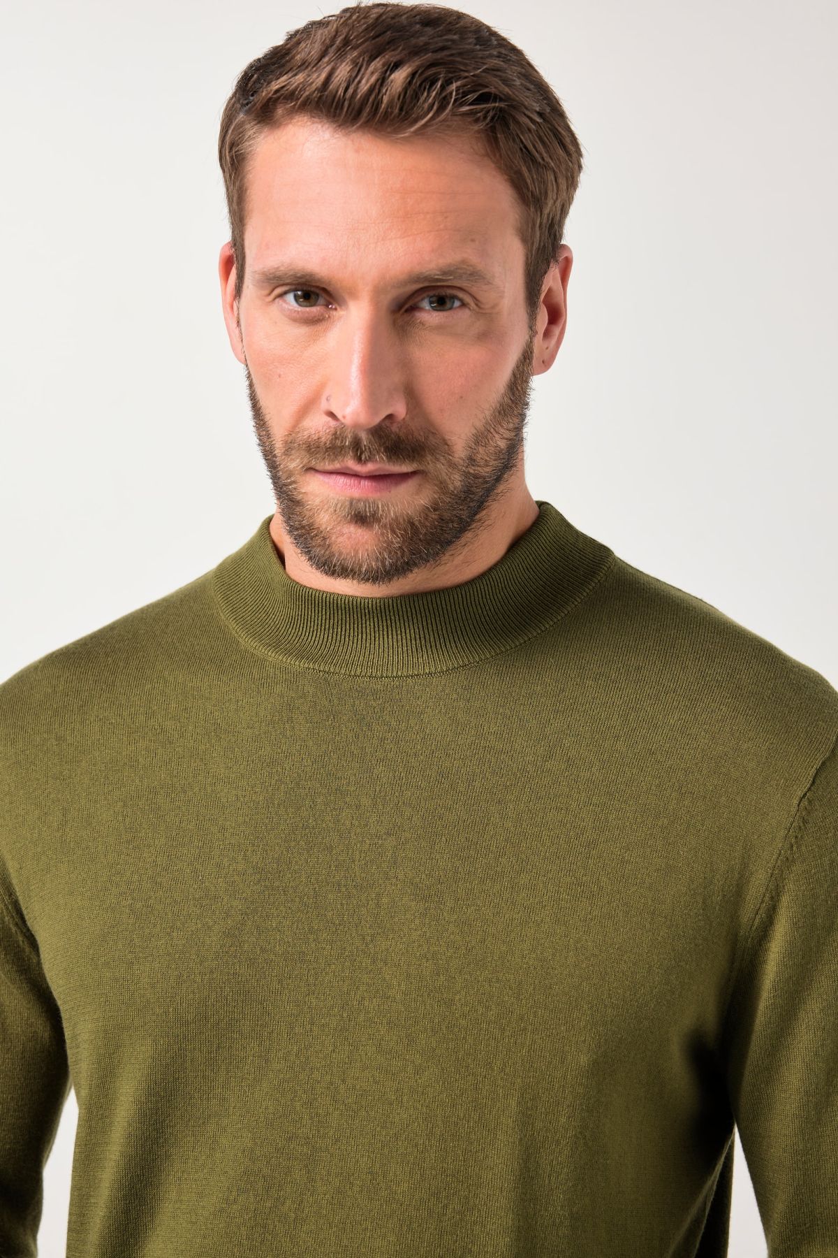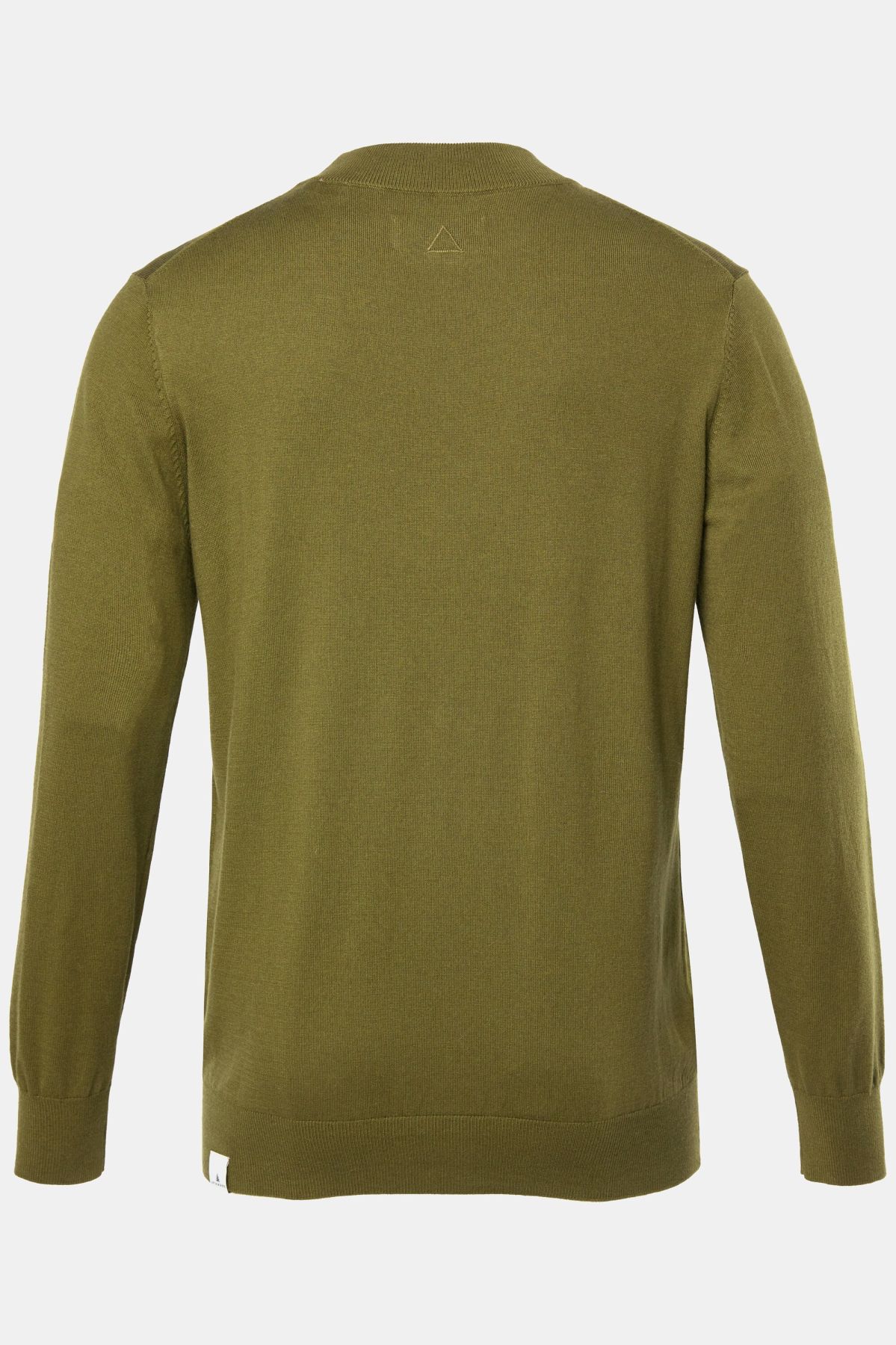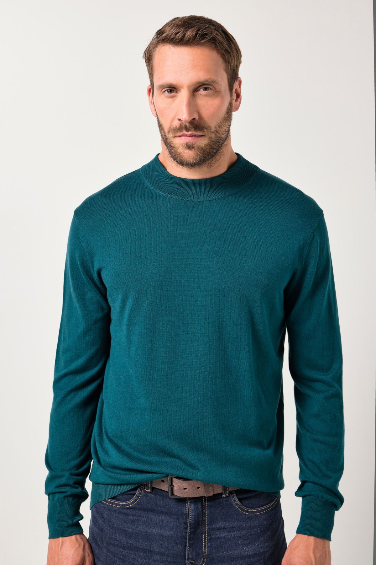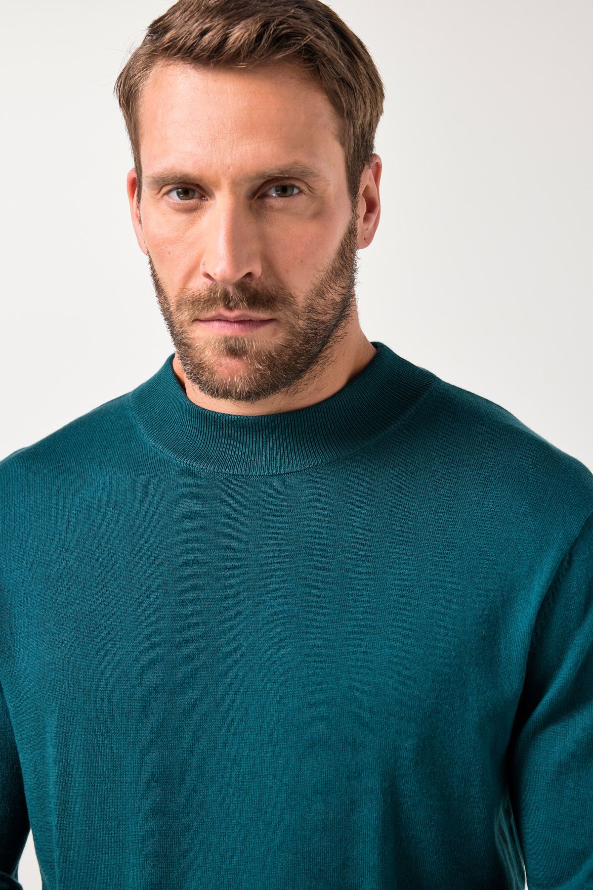 Пуловер от фина плетка. Изработен от рециклирани материали. С изправена яка и дълги ръкави. Изчистен дизайн, подходящ за ежедневието.