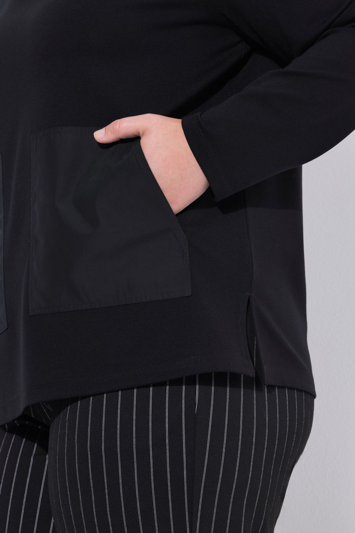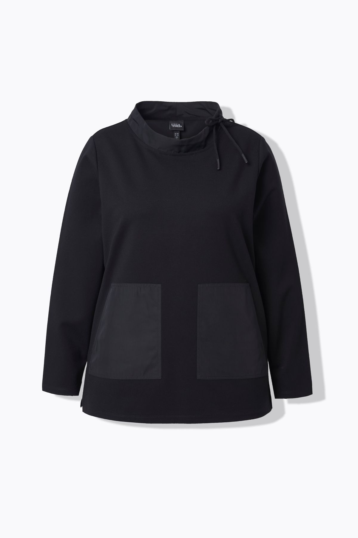 Суитчър с принт от материи с къдрава изправена яка и големи външни джобове. С дълги ръкави.