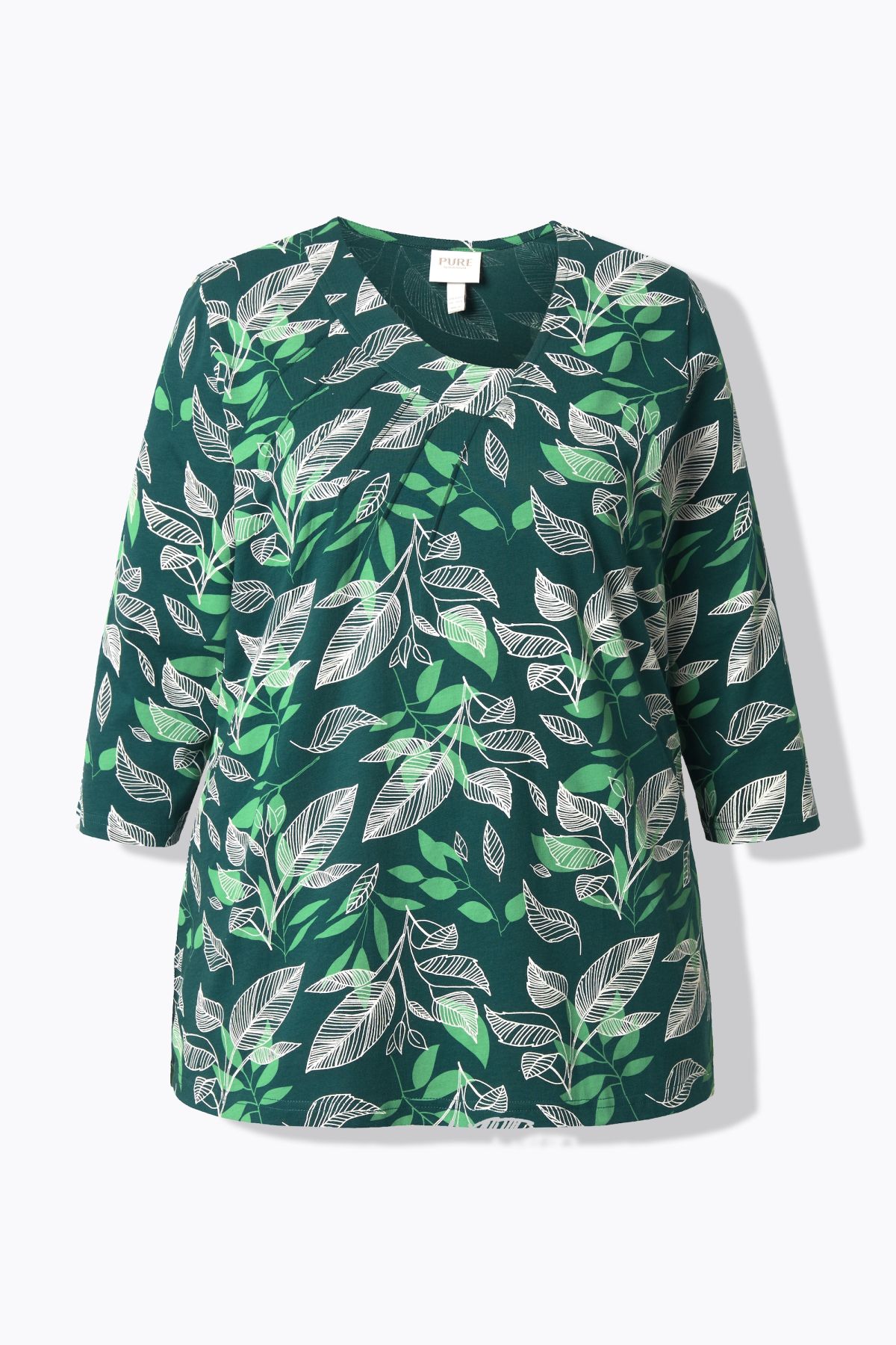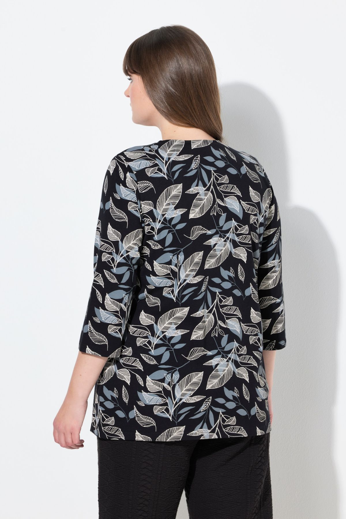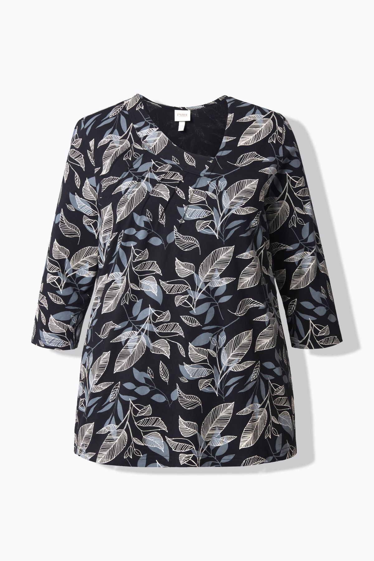 Блуза с принт на симетрични листа с декоративна визия. С модерно деколте и 3/4 ръкави