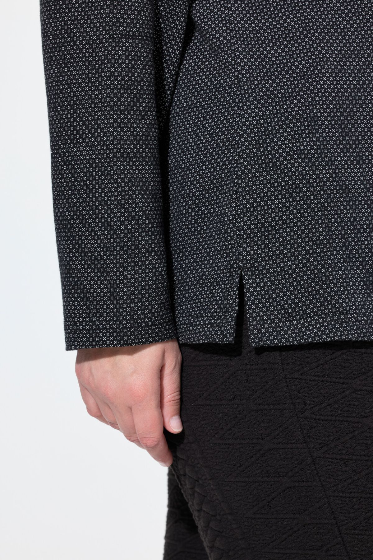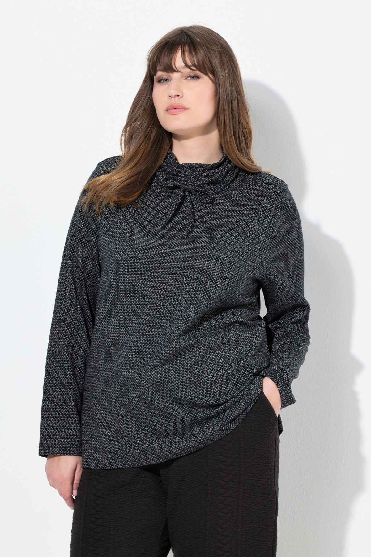 Суитчър с минималистичен принт с широка изправена яка с връзка, придаваща перфектен силует. С дълги ръкави и перфектен силует.