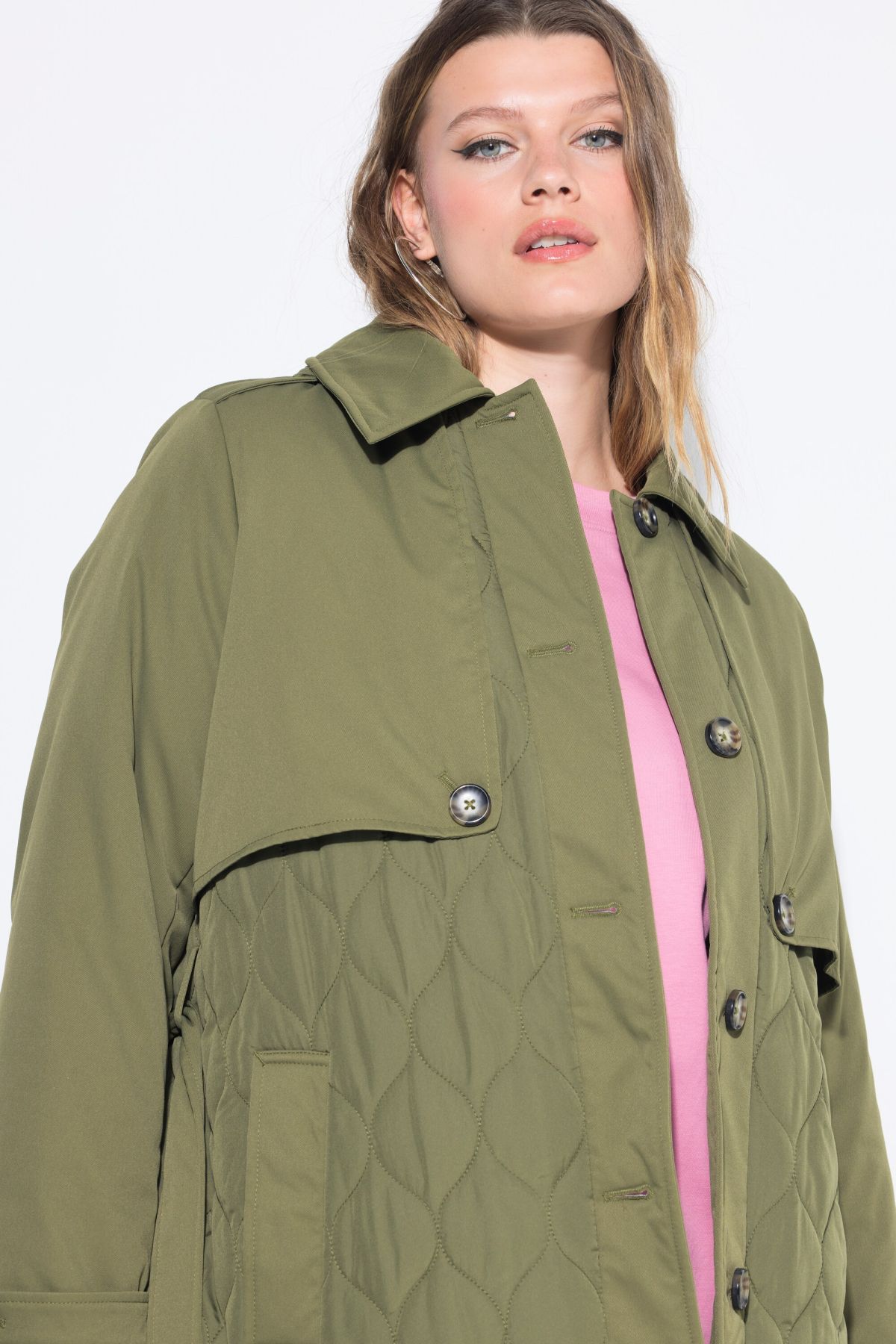 Ватирано палто тип тренчкот. Зимните разходки са по - приятни и топли. С шевови акценти, копчета отпред, колан на талията, странични джобове и дълги ръкави. С перфектна дължина подходяща за поли и рокли.