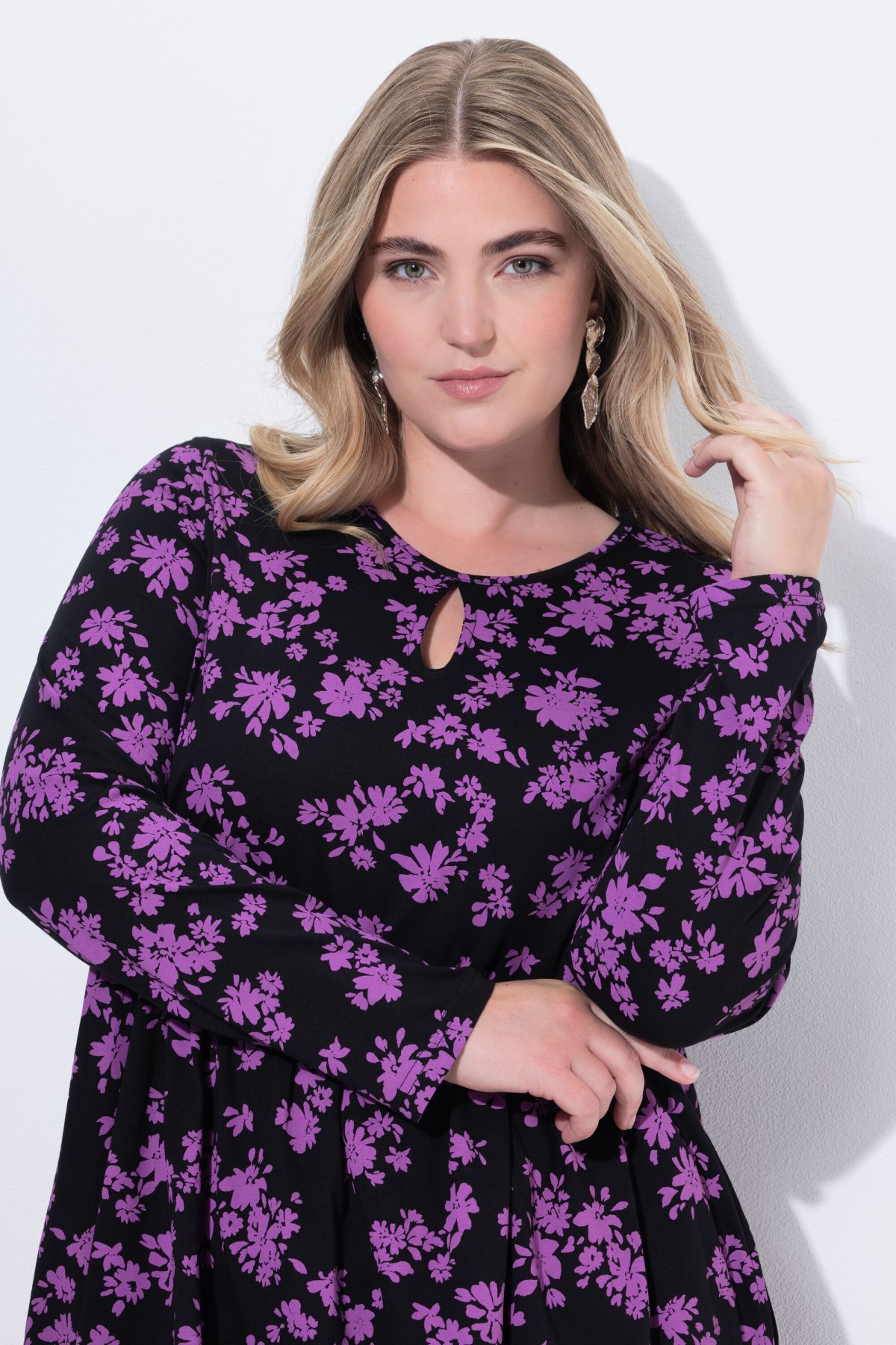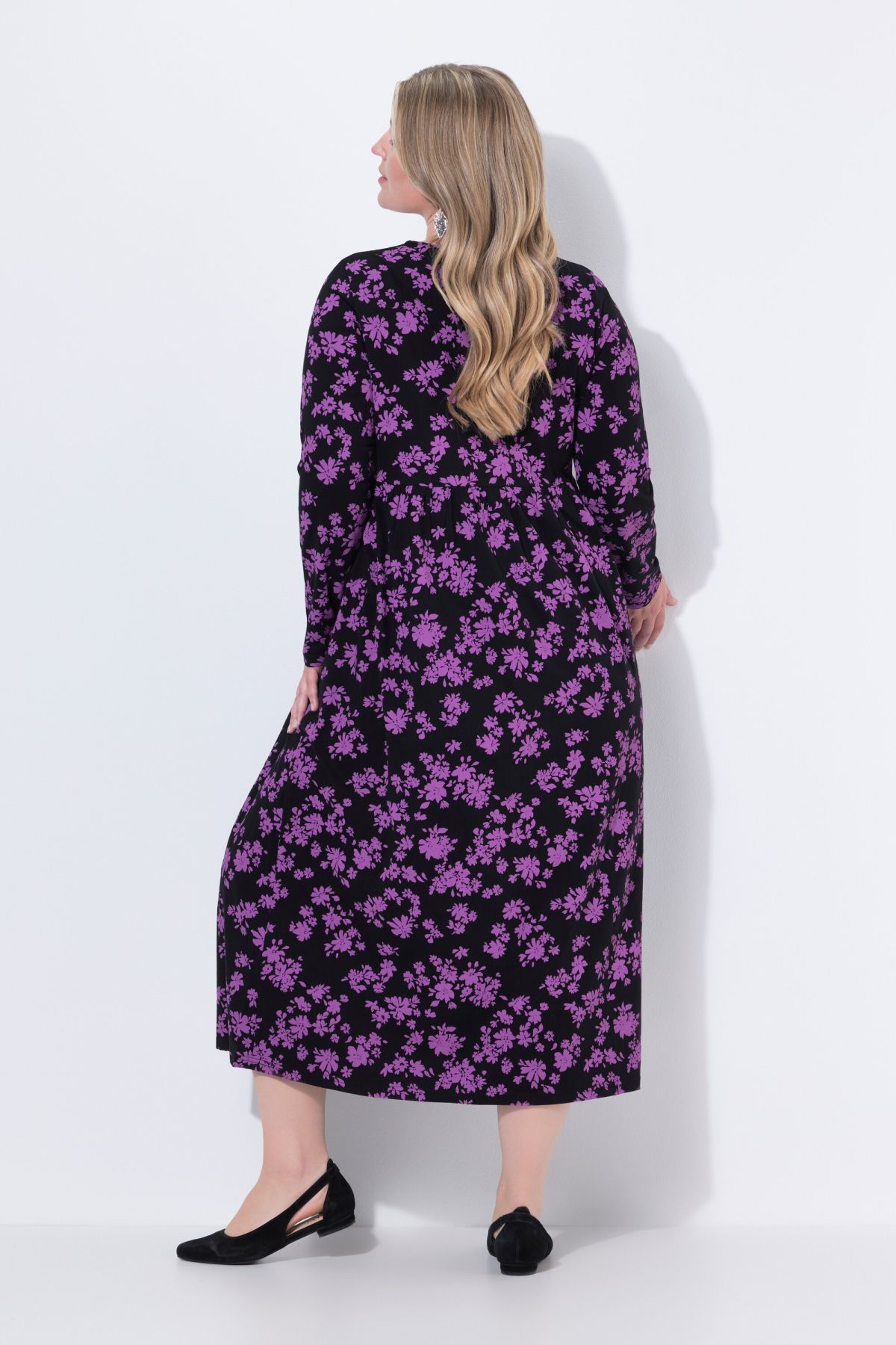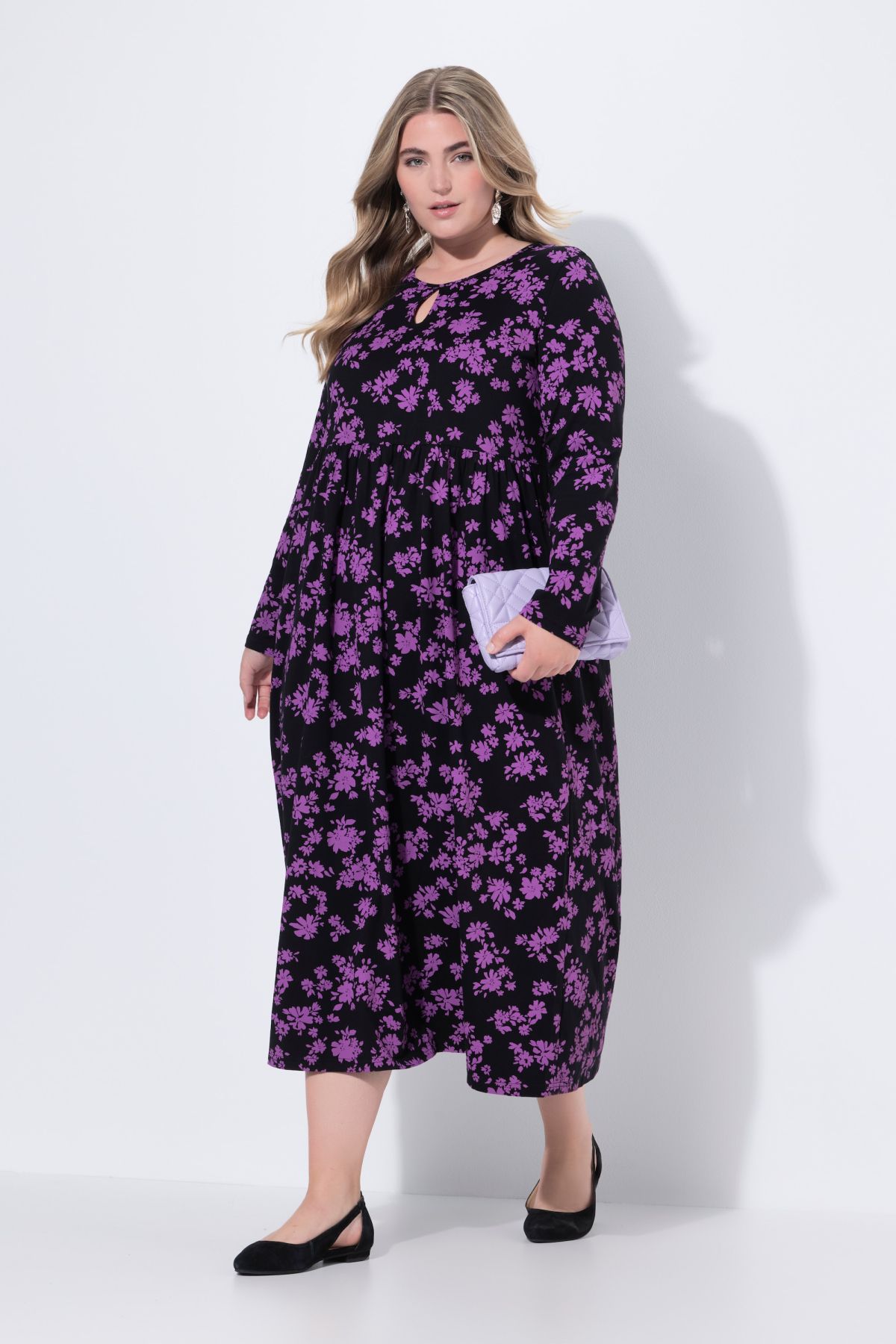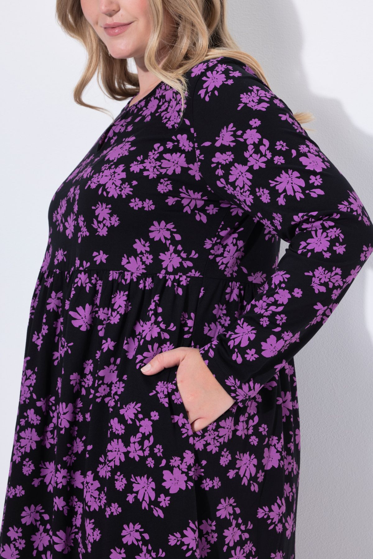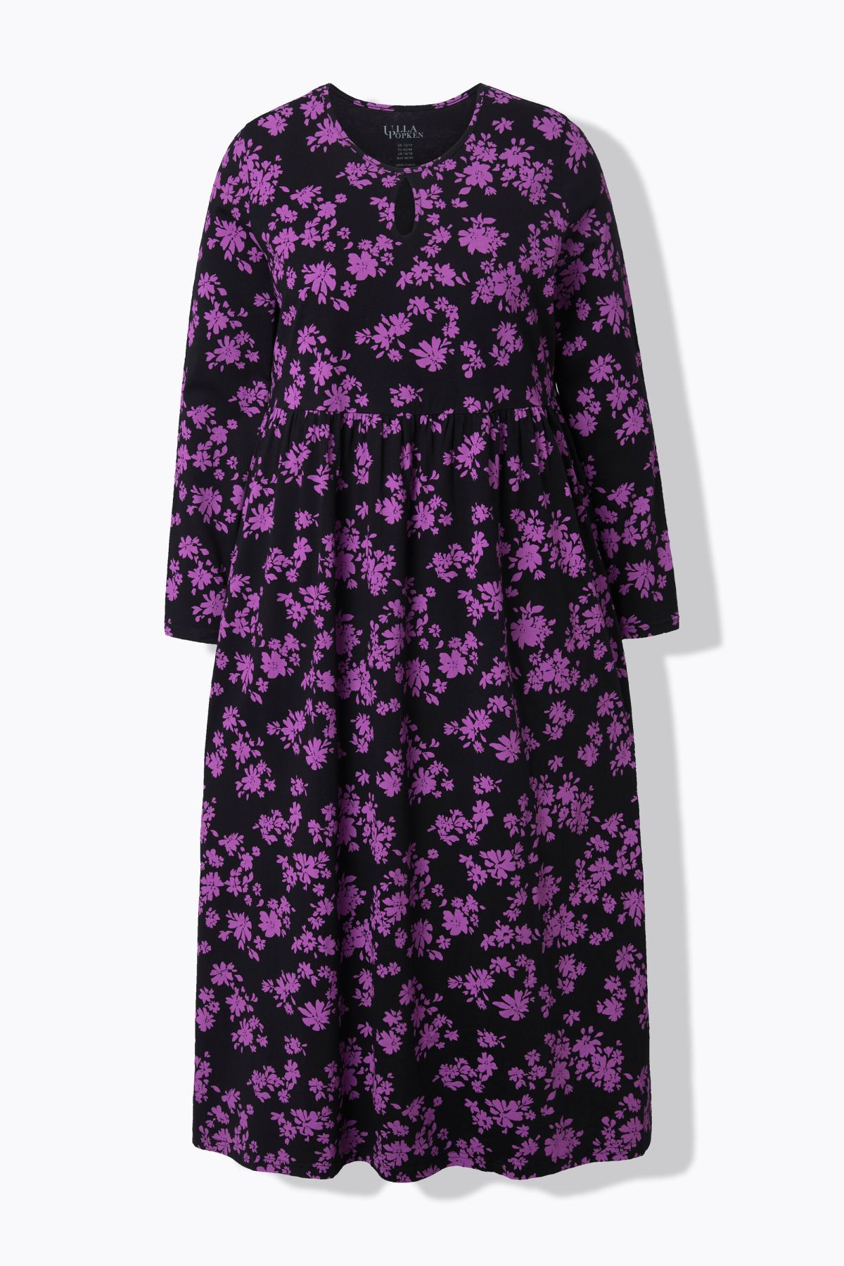 Рокля с флорален принт от мека, памучна материя. С А - линия на силуета, странични джобове и кръгло деколте. С дълги ръкави.