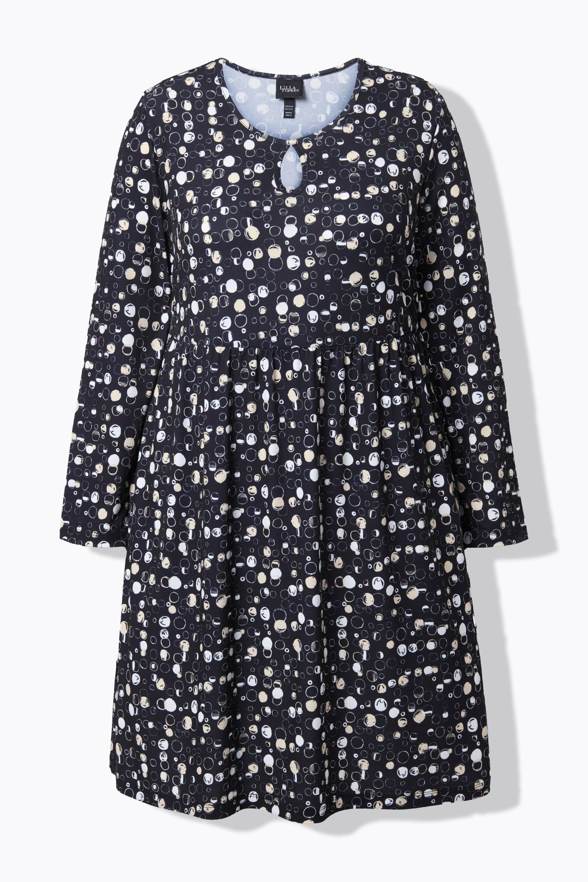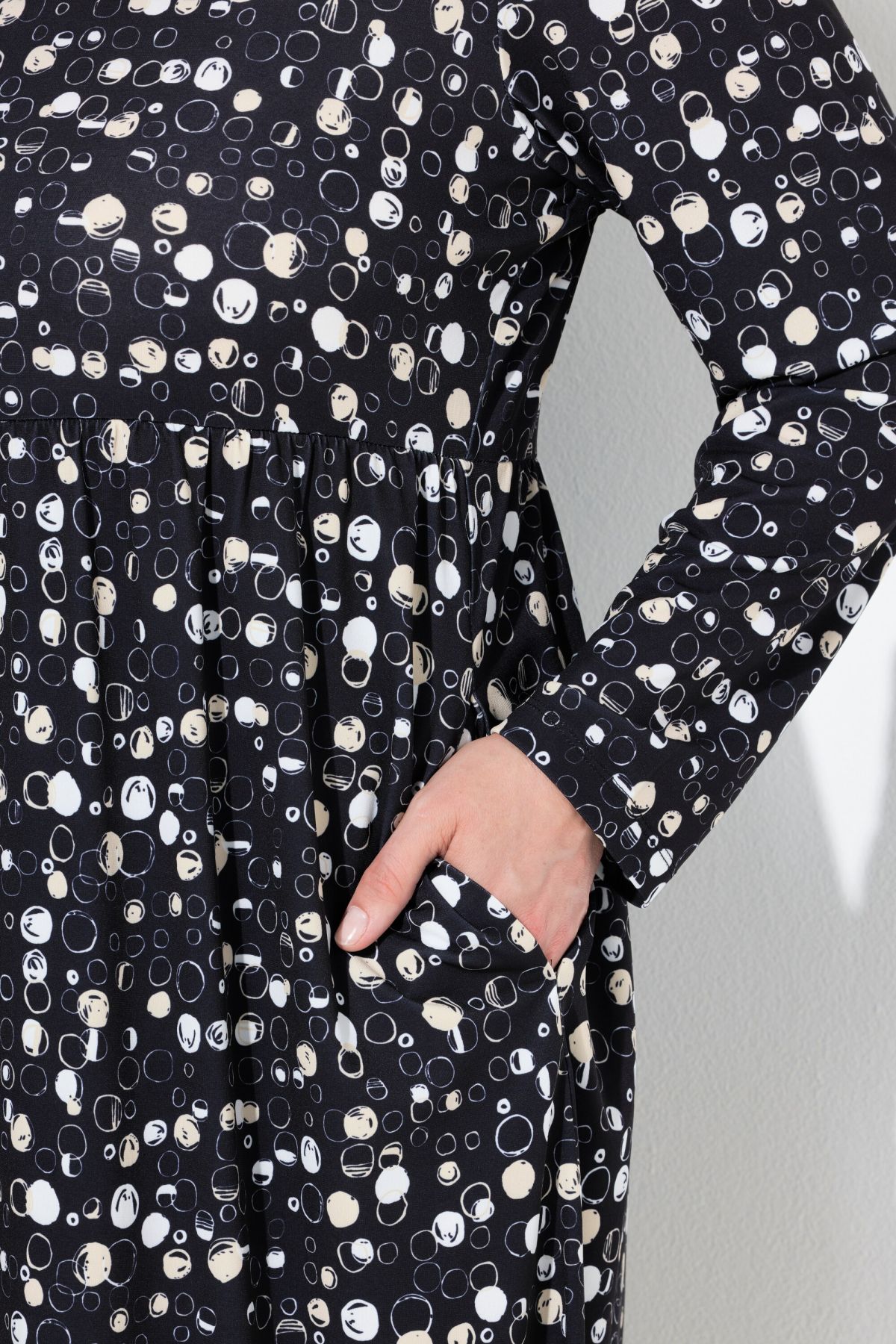 Рокля с принт на балончета с А - линия на силуета. Със странични джобове и перфектна дължина. От мека трикотажна материя.