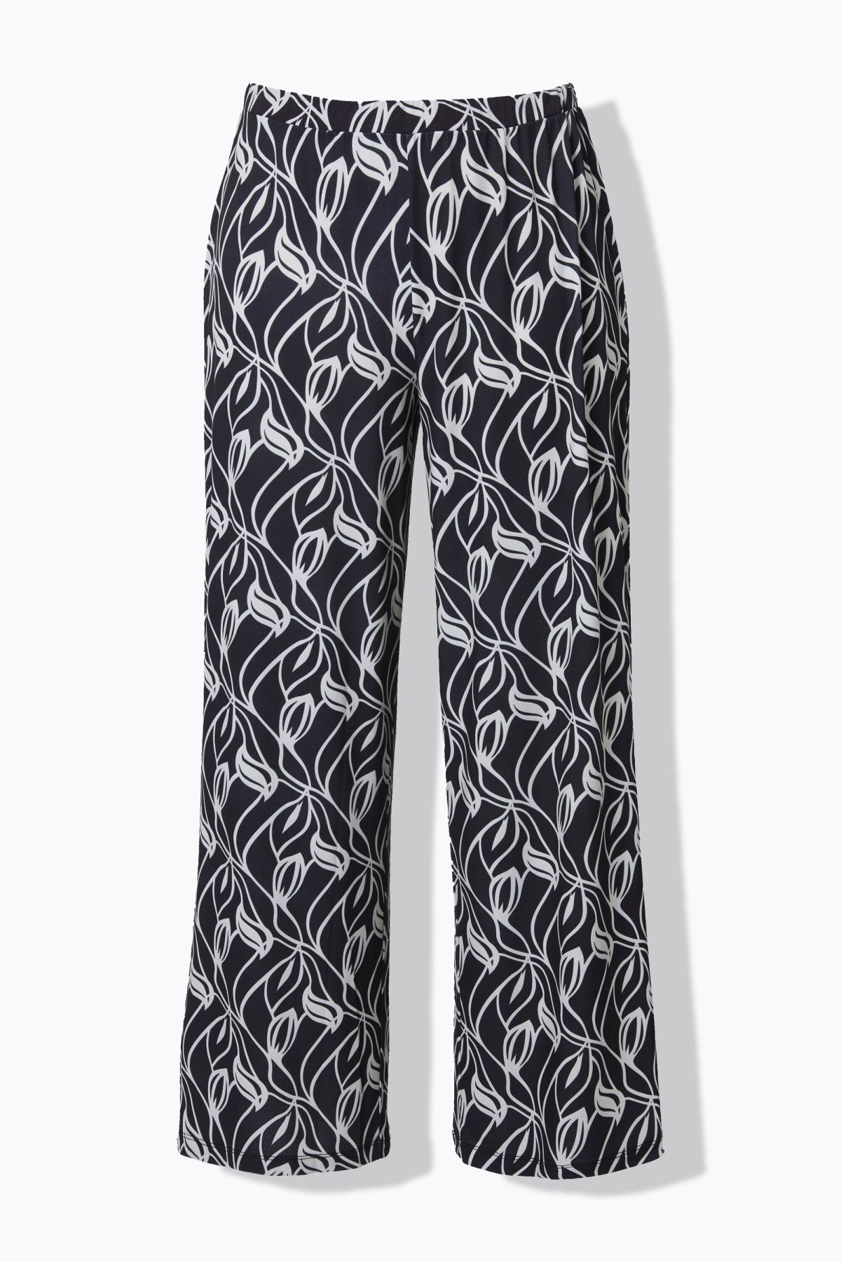 Панталон с принт на листа. Дизайн с широки крачоли и еластична талия. Стилен и комфортен за ежедневието.