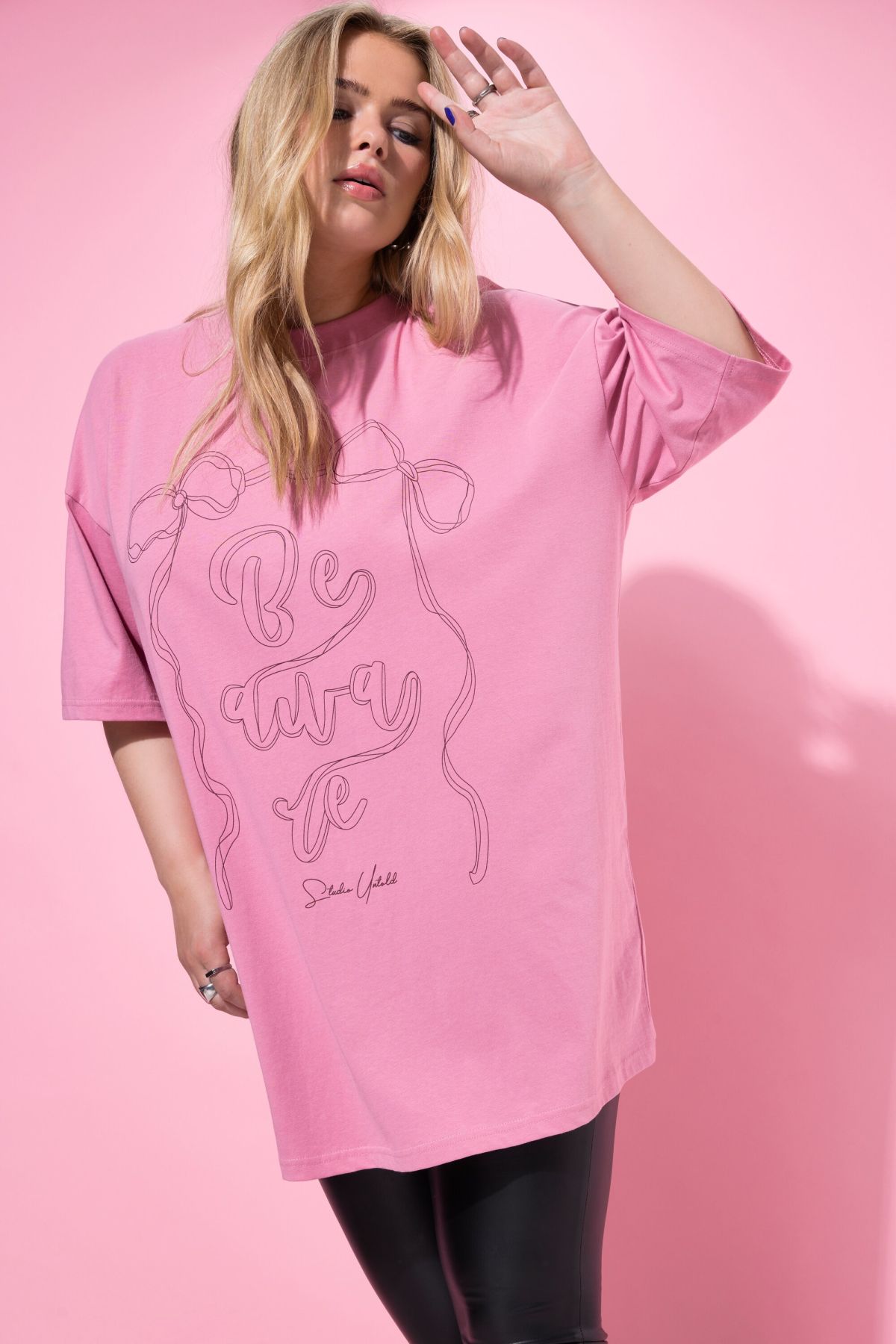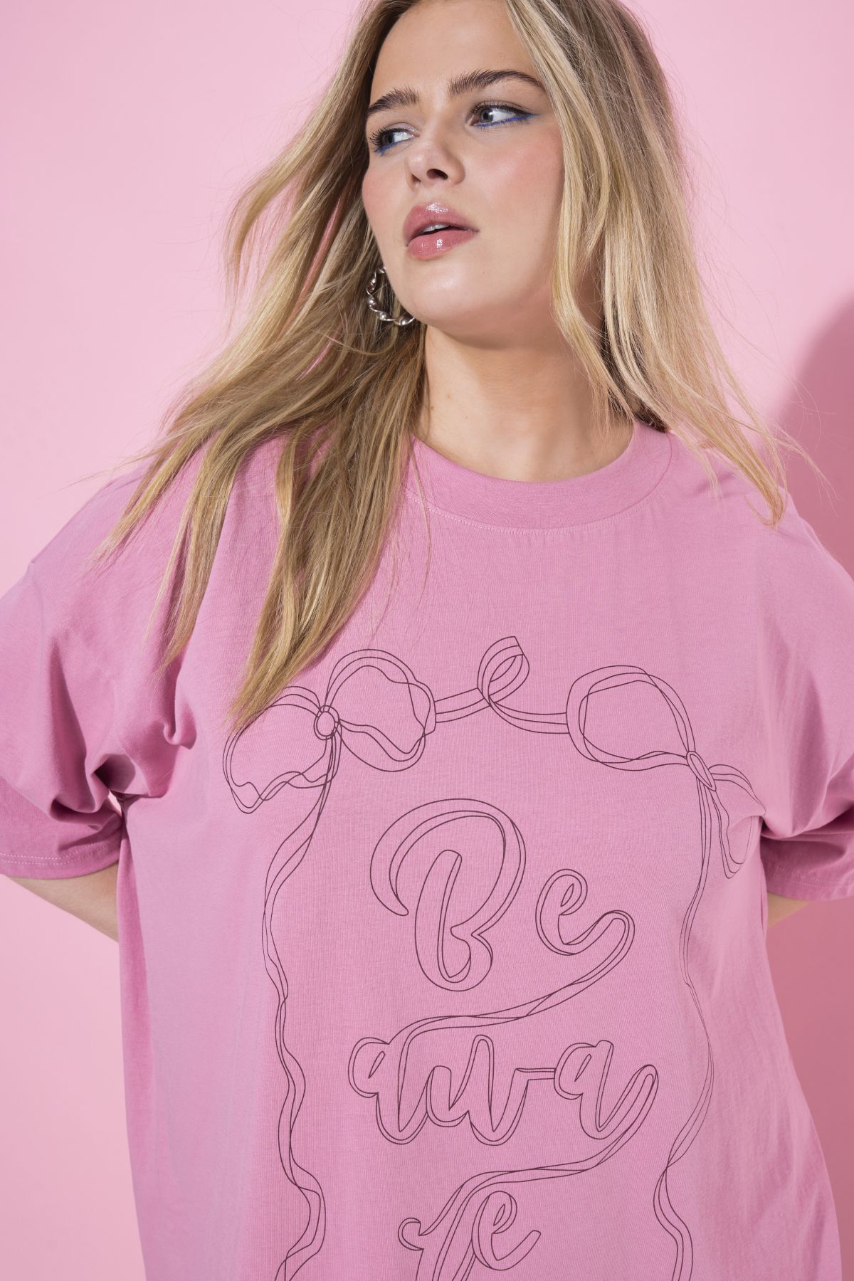 Тениска с надписи отпред с графични акценти. С кръгло деколте и къси ръкави. От мека, памучна материя.