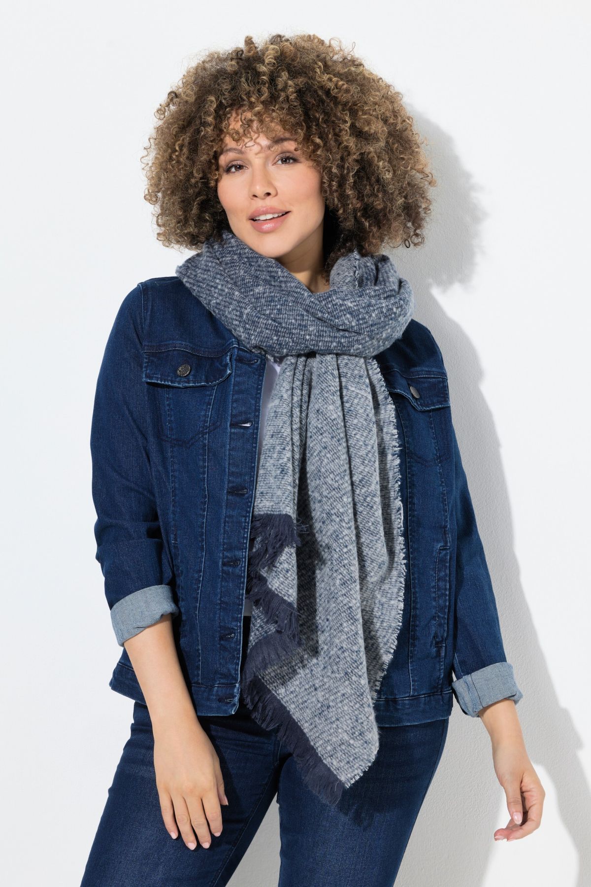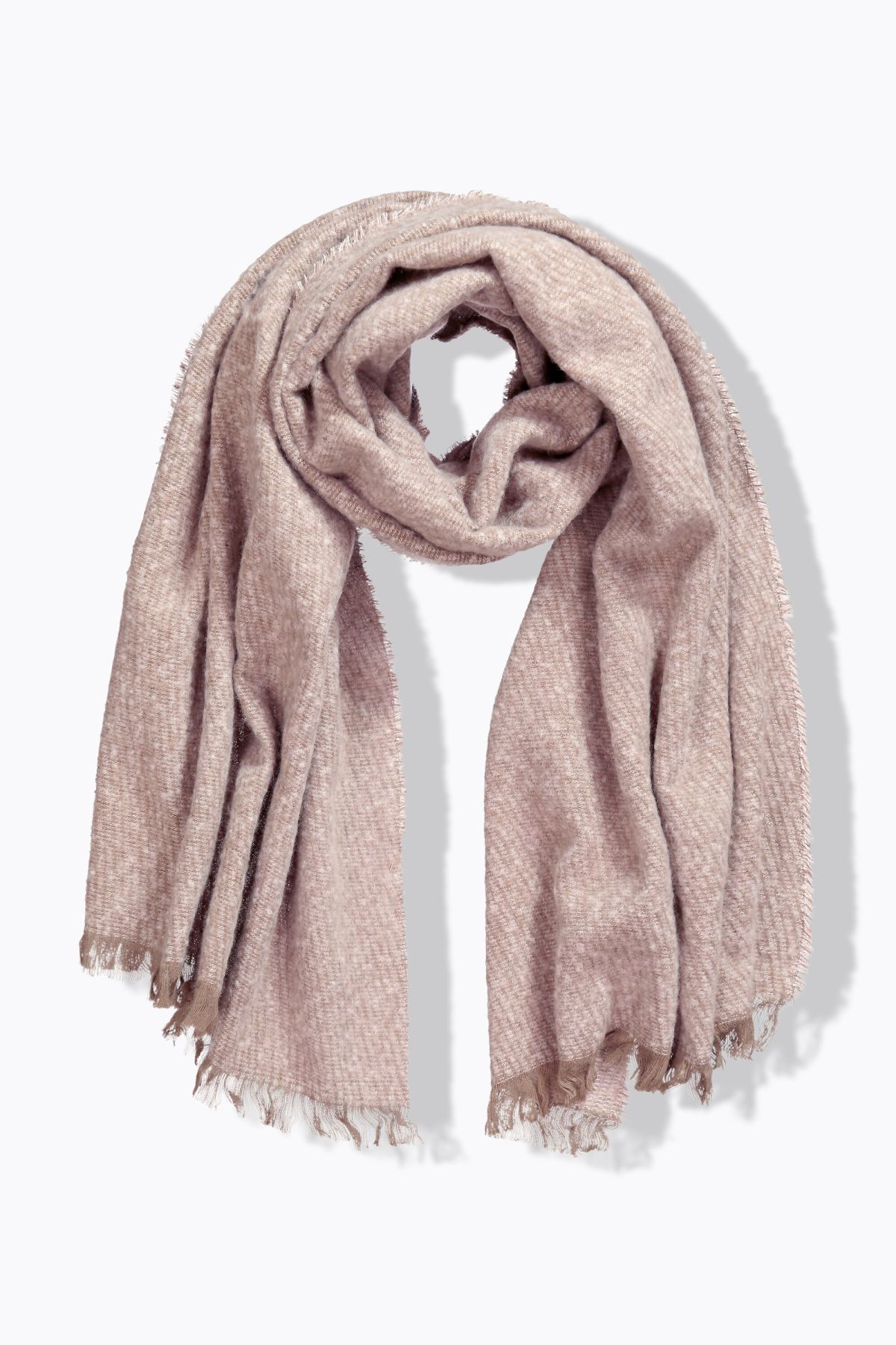 Плетен шал от мека, рипсена материя с ресни на подгъва.