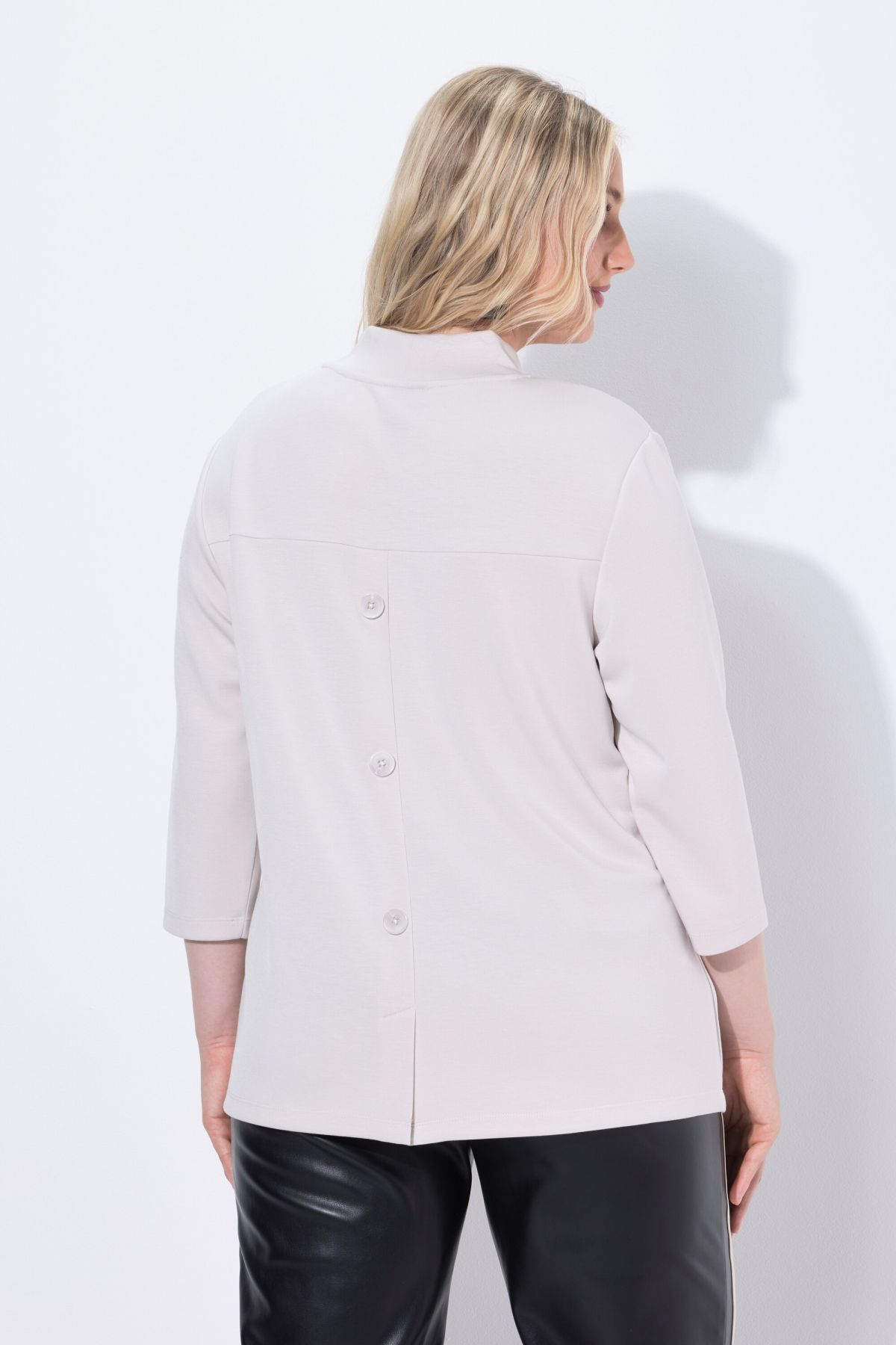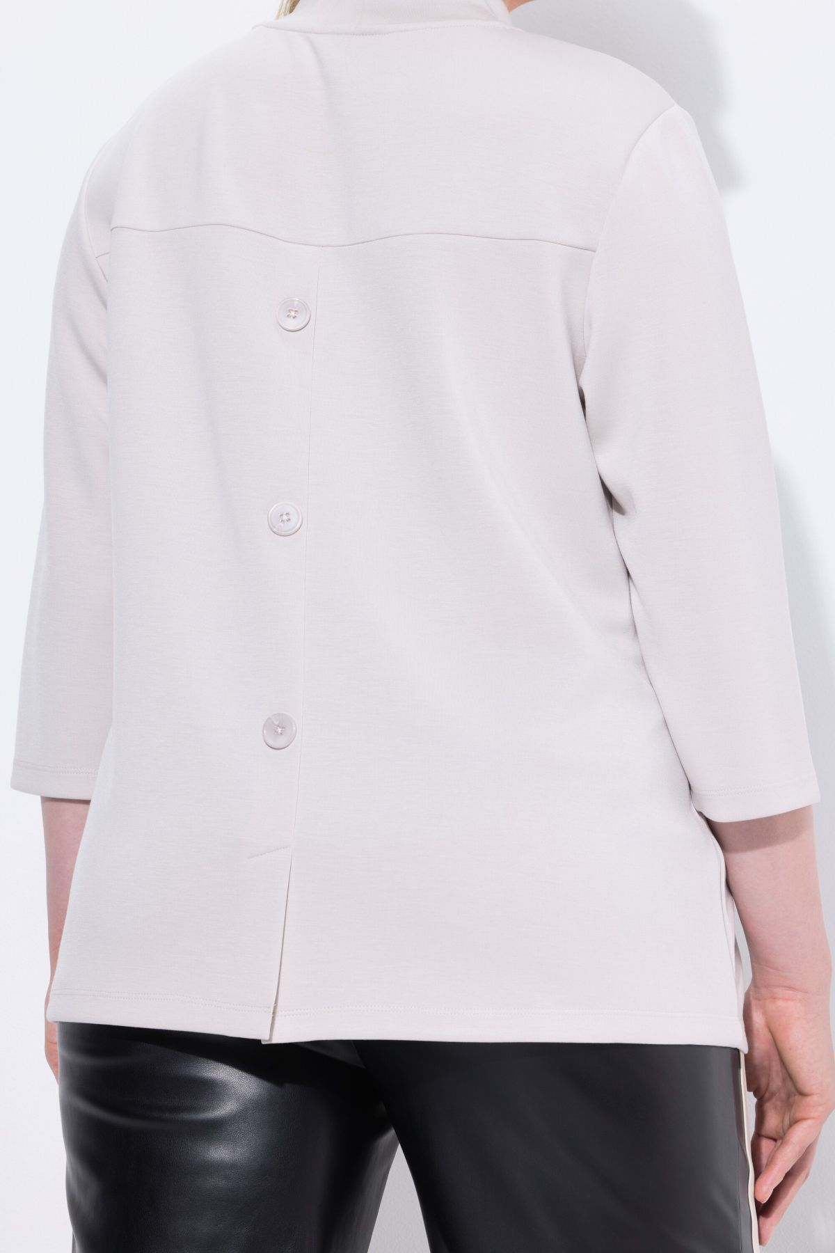 Суитчър с акцент от декоративни копчета на гърба завършващи идеално силуета. С кръгло деколте по врата и 3/4 ръкави.