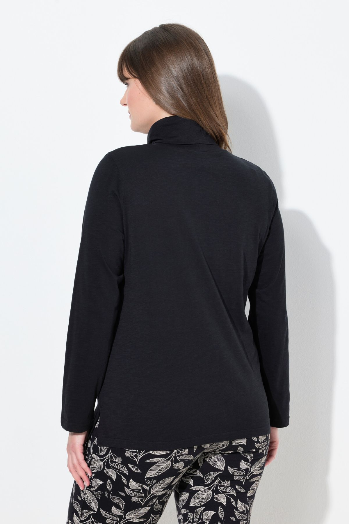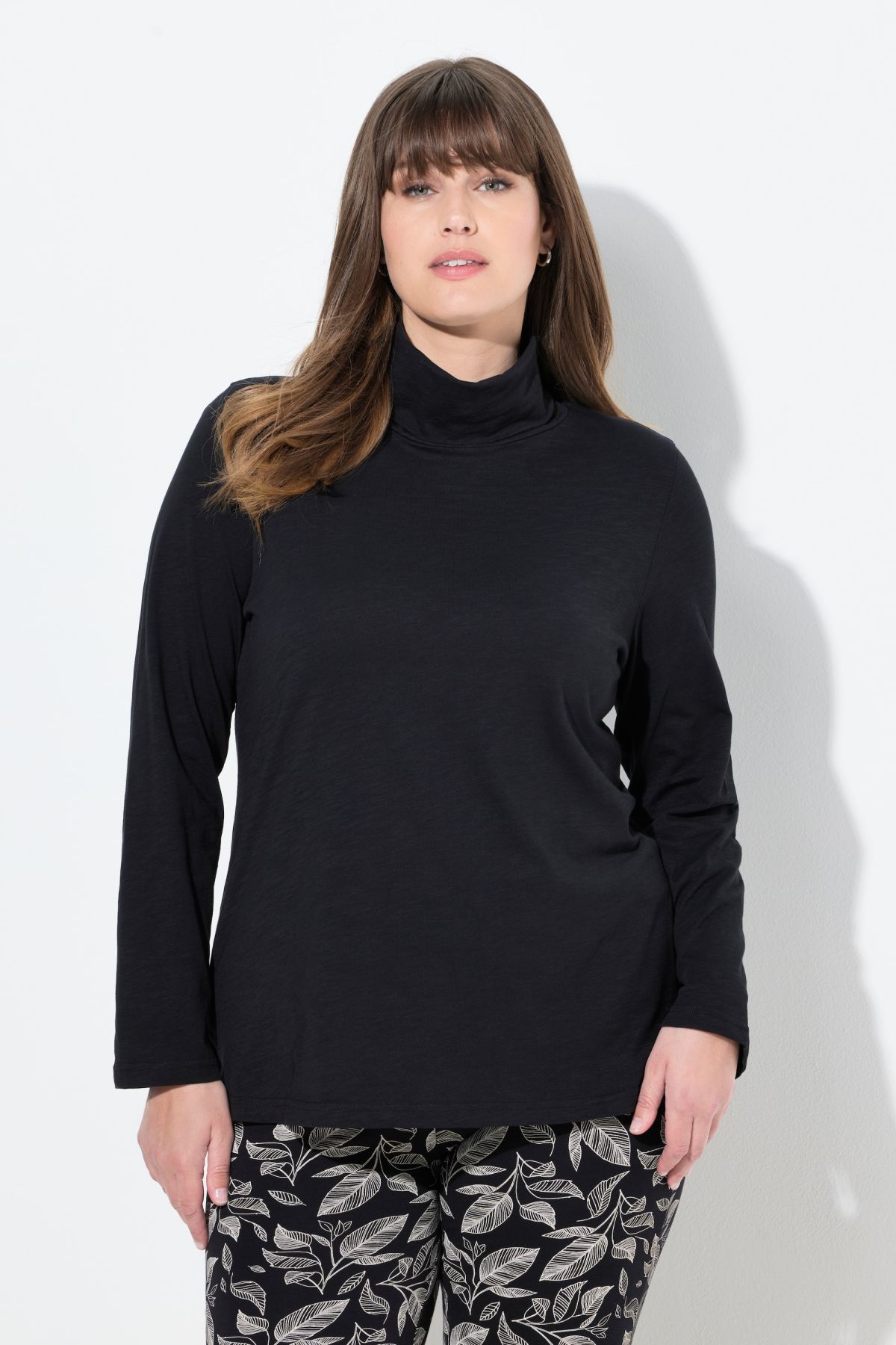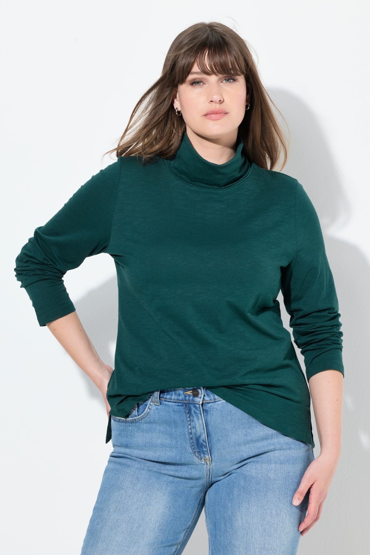 Блуза с поло яка от мека, перфектна материя. Подходяща за носене под пуловер и блуза. С класически силует и дълги ръкави. С тесен силует.