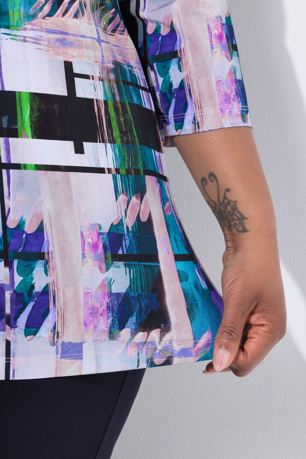 Блуза с кариран принт от мека, еластична материя с падащо деколте. С 3/4 ръкави. Стилна и комфортна както за ежедневието, така и за повод.