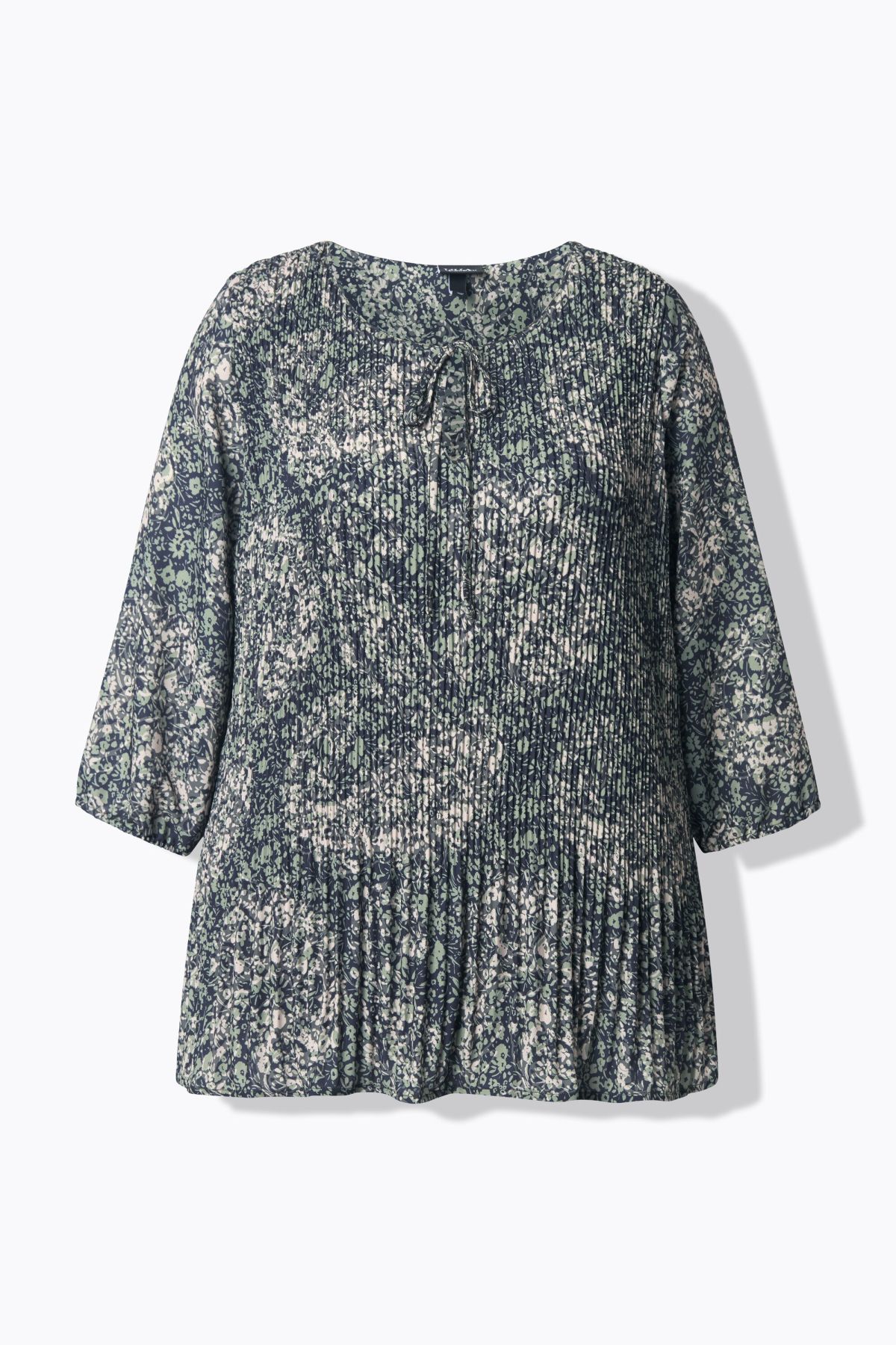 Блуза с плисета и флорален принт. Перфектна кройка с кръгло деколте с връзка и удобни 3/4 ръкави. Идеалният избор за ежедневието.