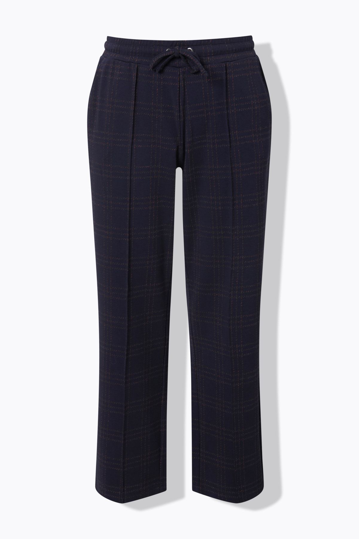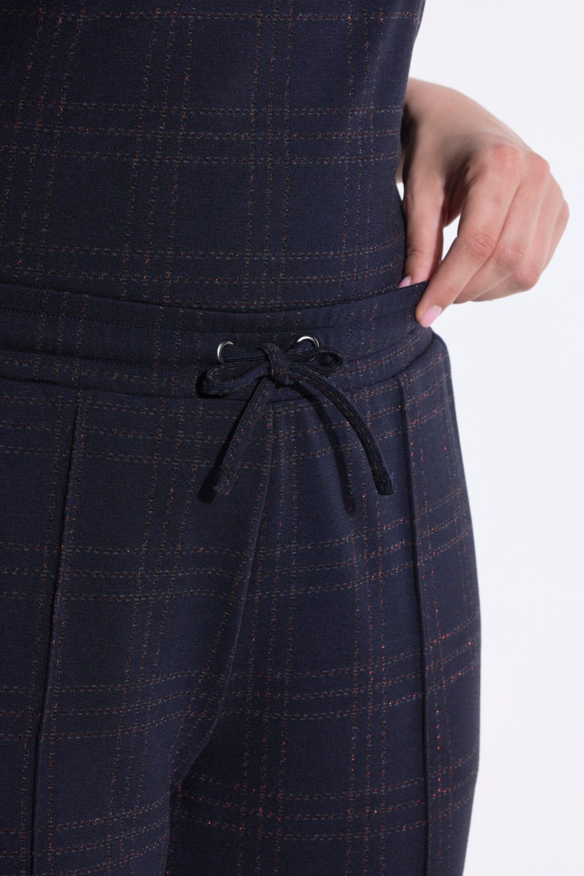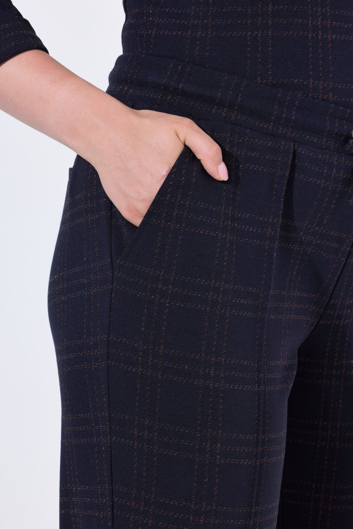 Панталон с бляскав кариран принт. От меко луксозно трико с еластична талия. С прави крачоли и странични джобове