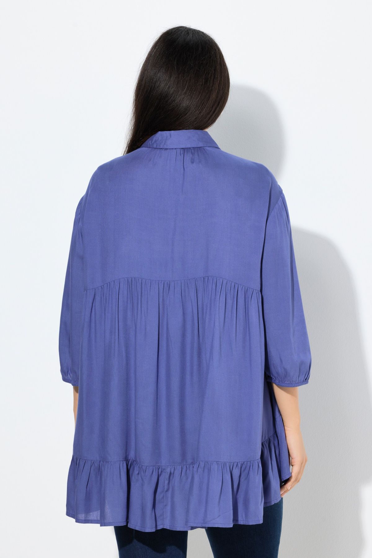 Туника тип риза с асиметричен, набран подгъв. С яка, копчета отпред и дълги ръкави с маншет с копче. От мека, памучна материя.