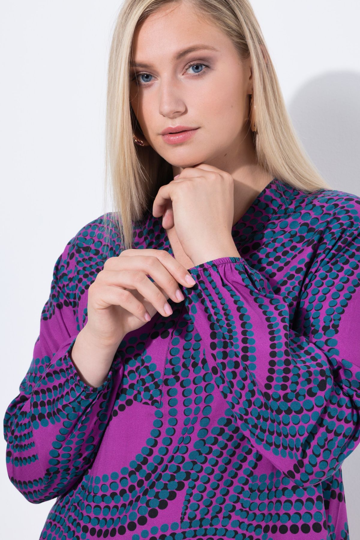Блуза с принт на вълни и точки. С елегантна яка и перфектен силует. С дълги ръкави с маншети и комфортна кройка.