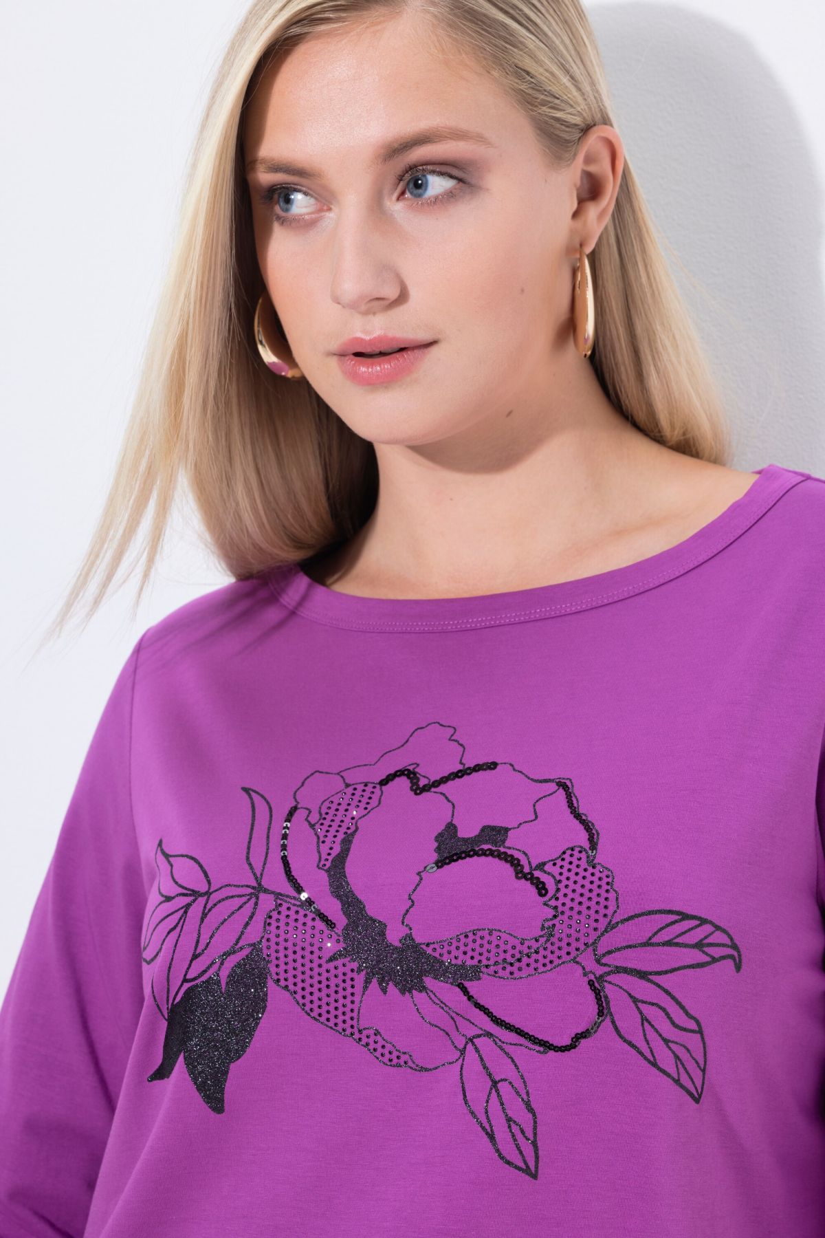 Блуза с принт на бляскави цветя. С кръгло деколте и 3/4 ръкави. От мека, памучна материя.