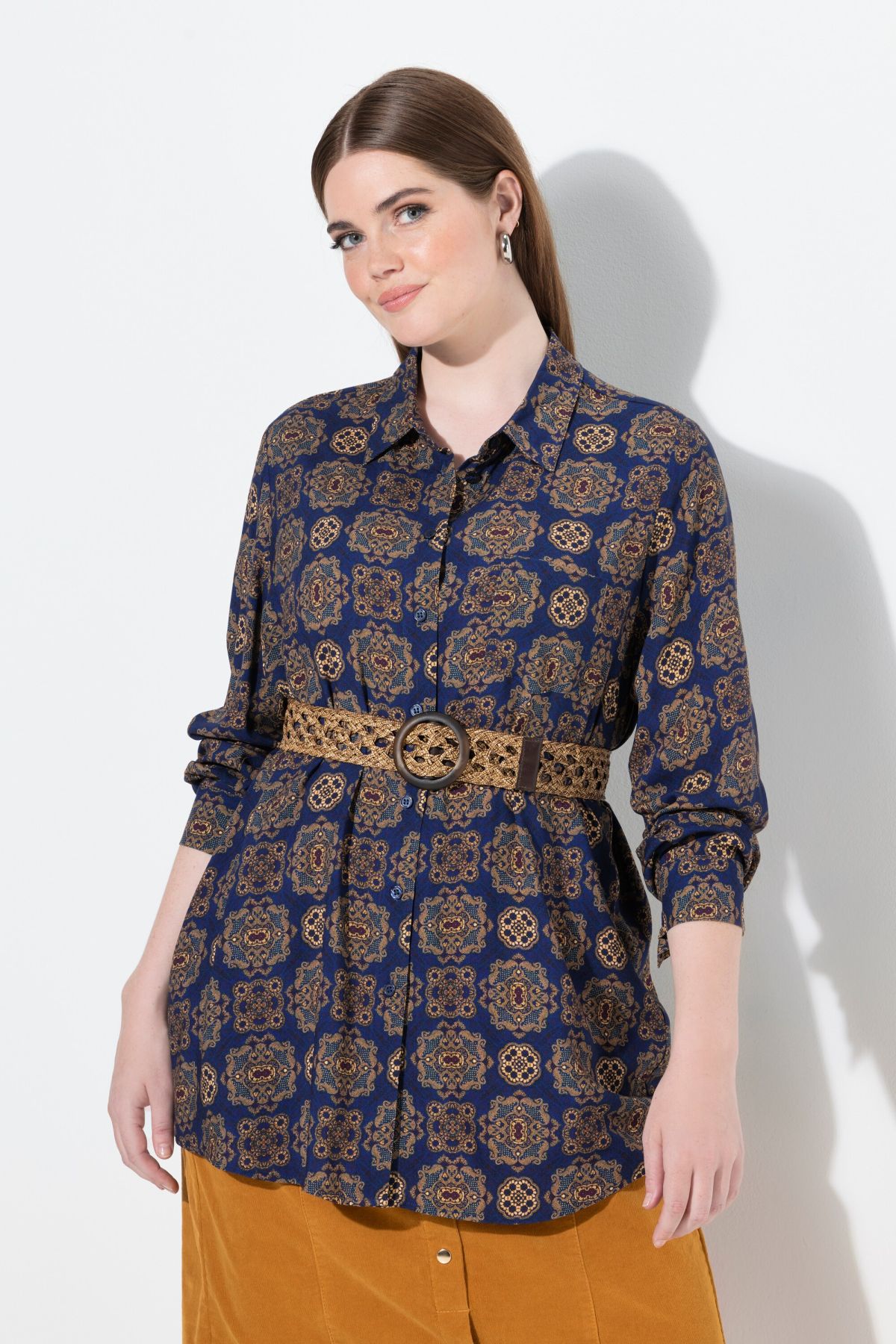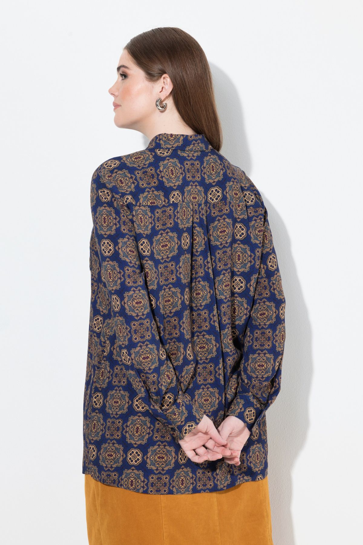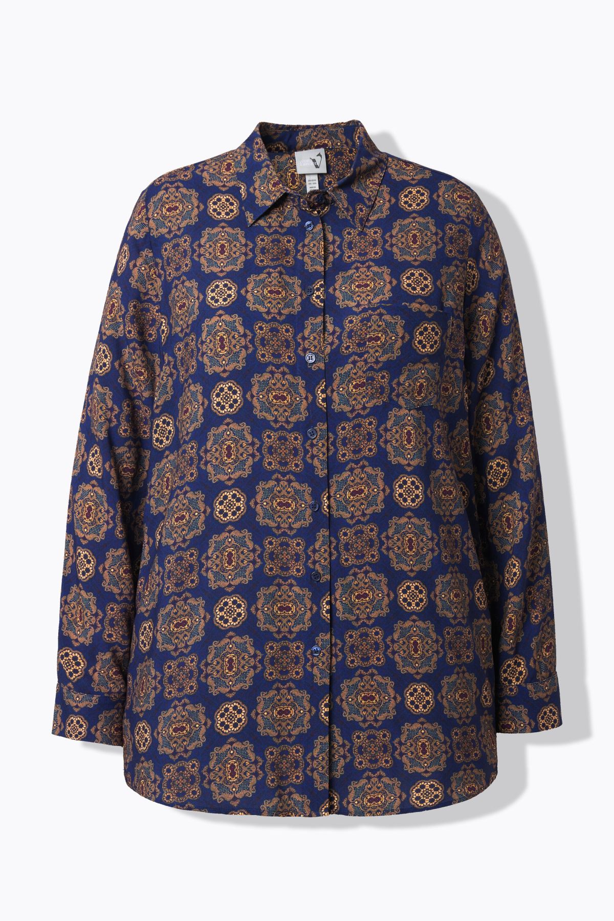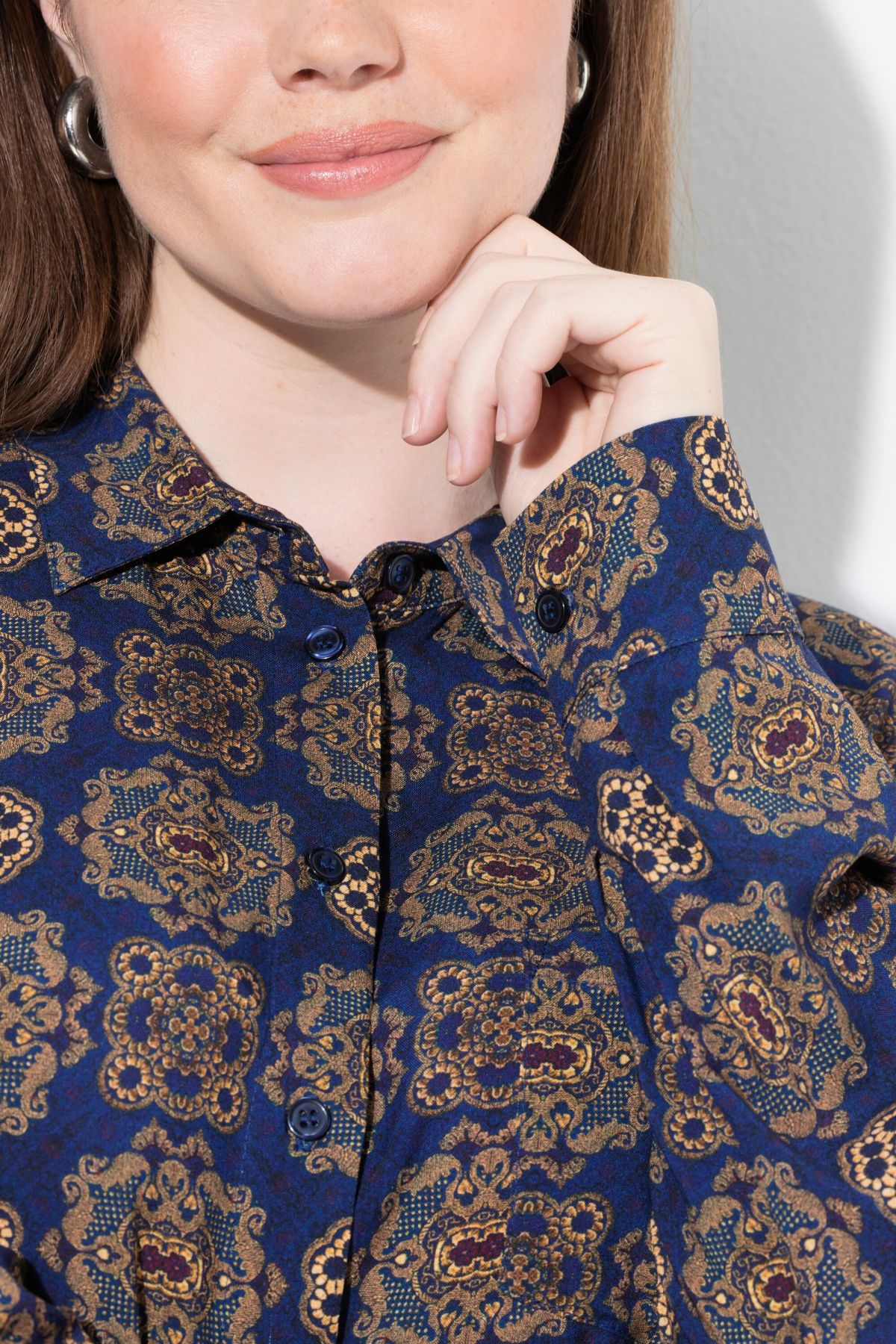 Риза с модерен принт на различни орнаменти. С класическа визия с яка, копчета отпред и дълги ръкави с маншет с копче. От мека, комфортна материя.