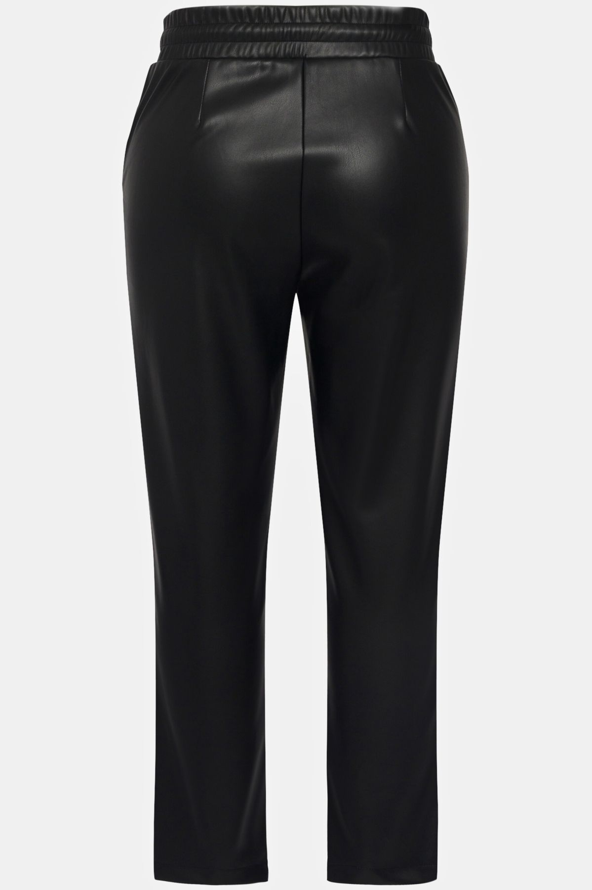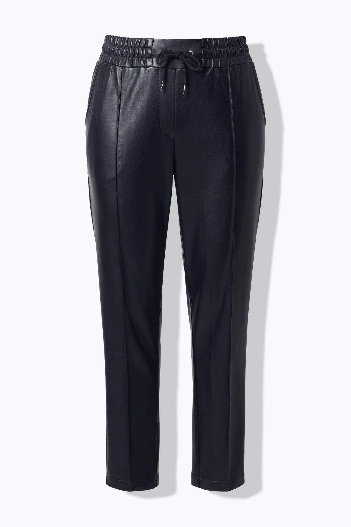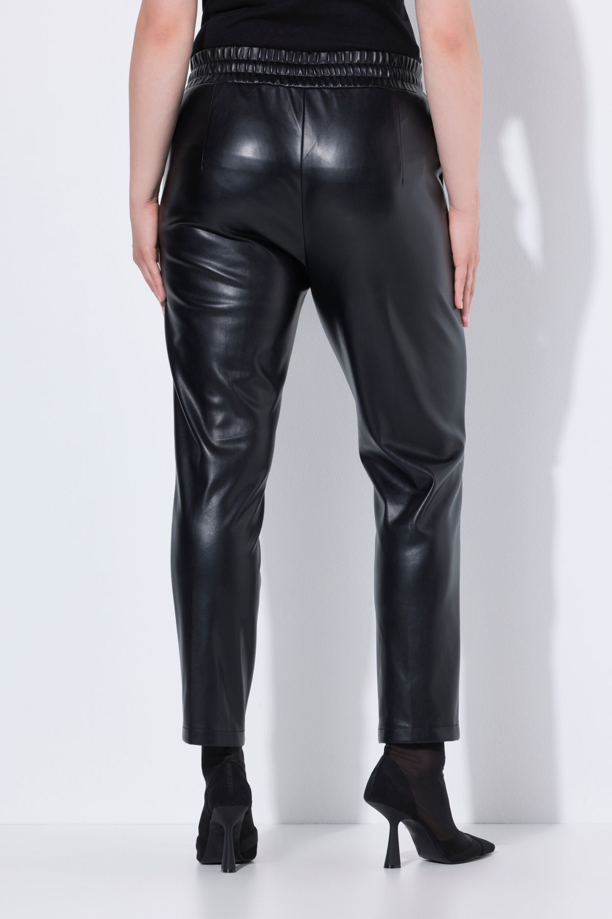 Елегантен панталон от изкуствена кожа - перфектен за всяко време. С плисе отпред с еластична талия допринасяща за комфорта.