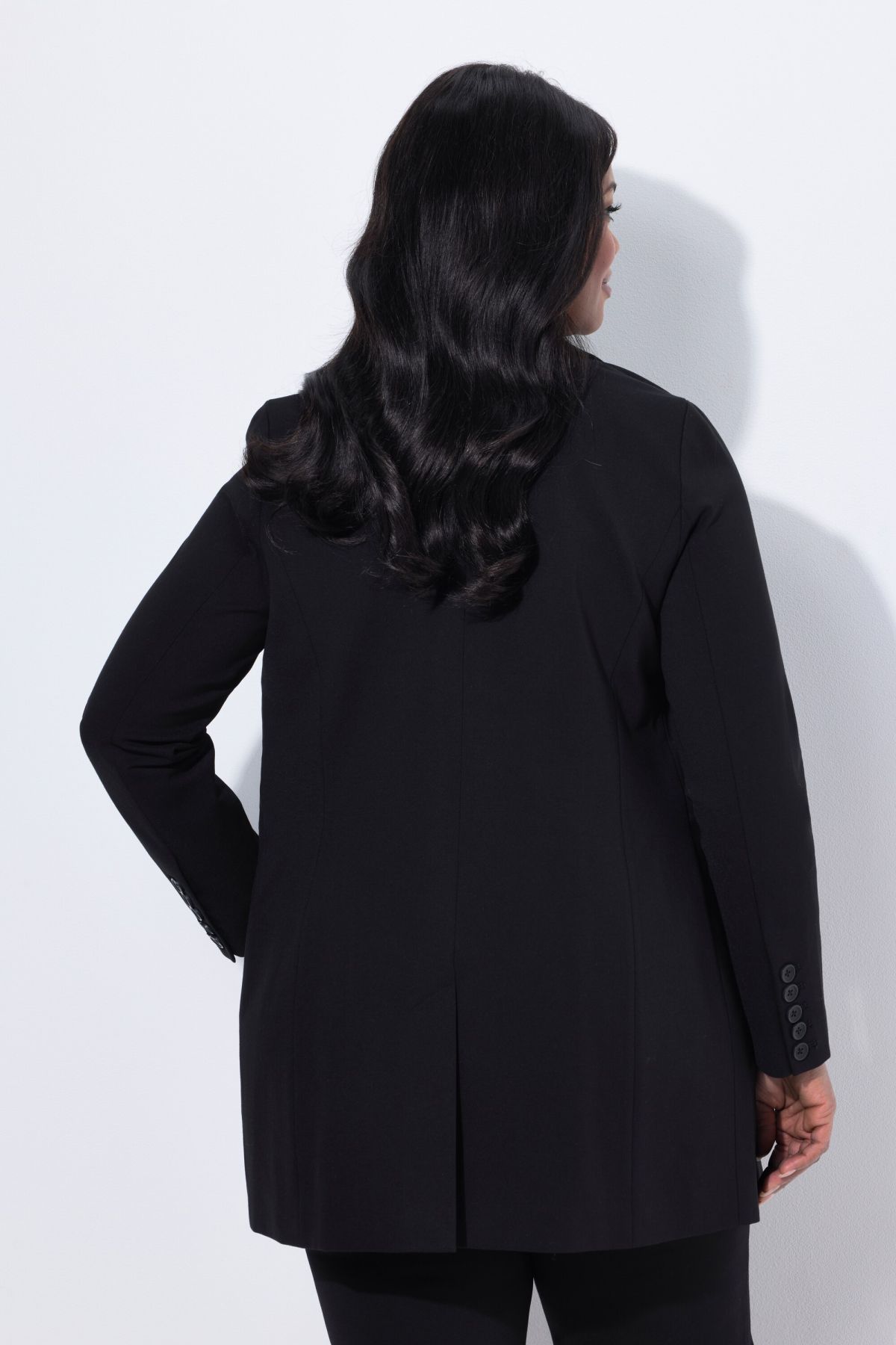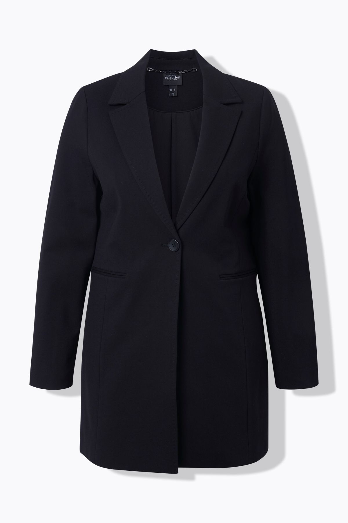 Блейзър от луксозна трикотажна материя - добавете комфорт в работните дни. С ревери на яката, копче отпред и издължен силует.