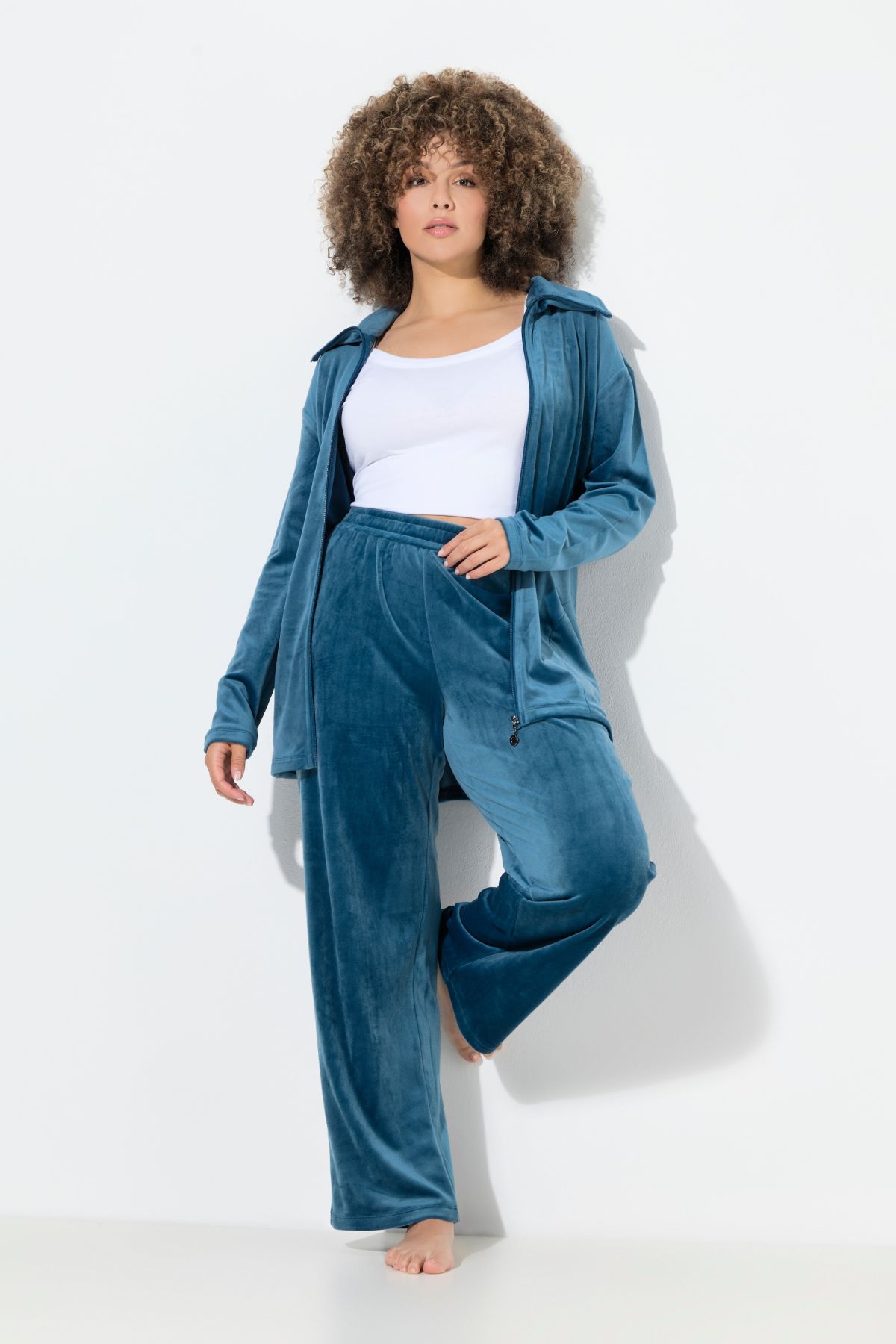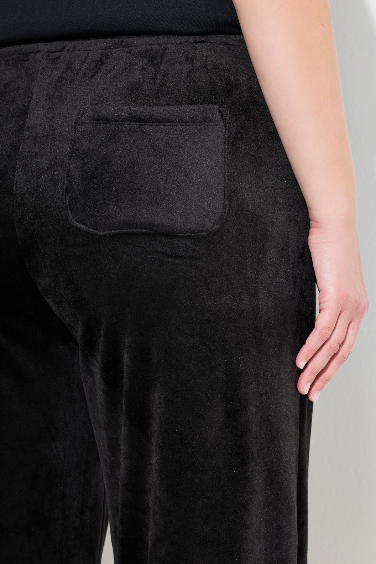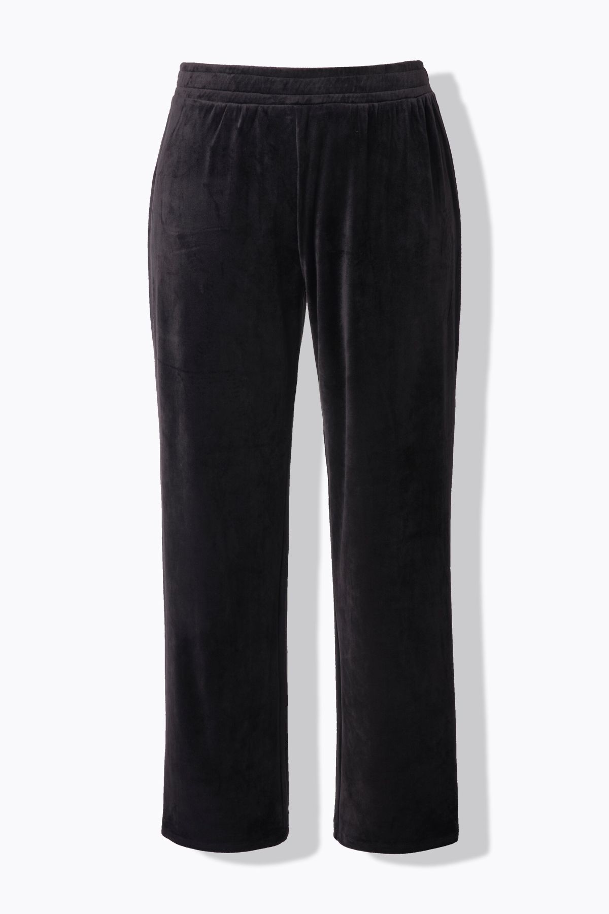 Велурен панталон с еластична талия - перфектен за носене вкъщи или за релакс. Със задни джобове и прави крачоли.